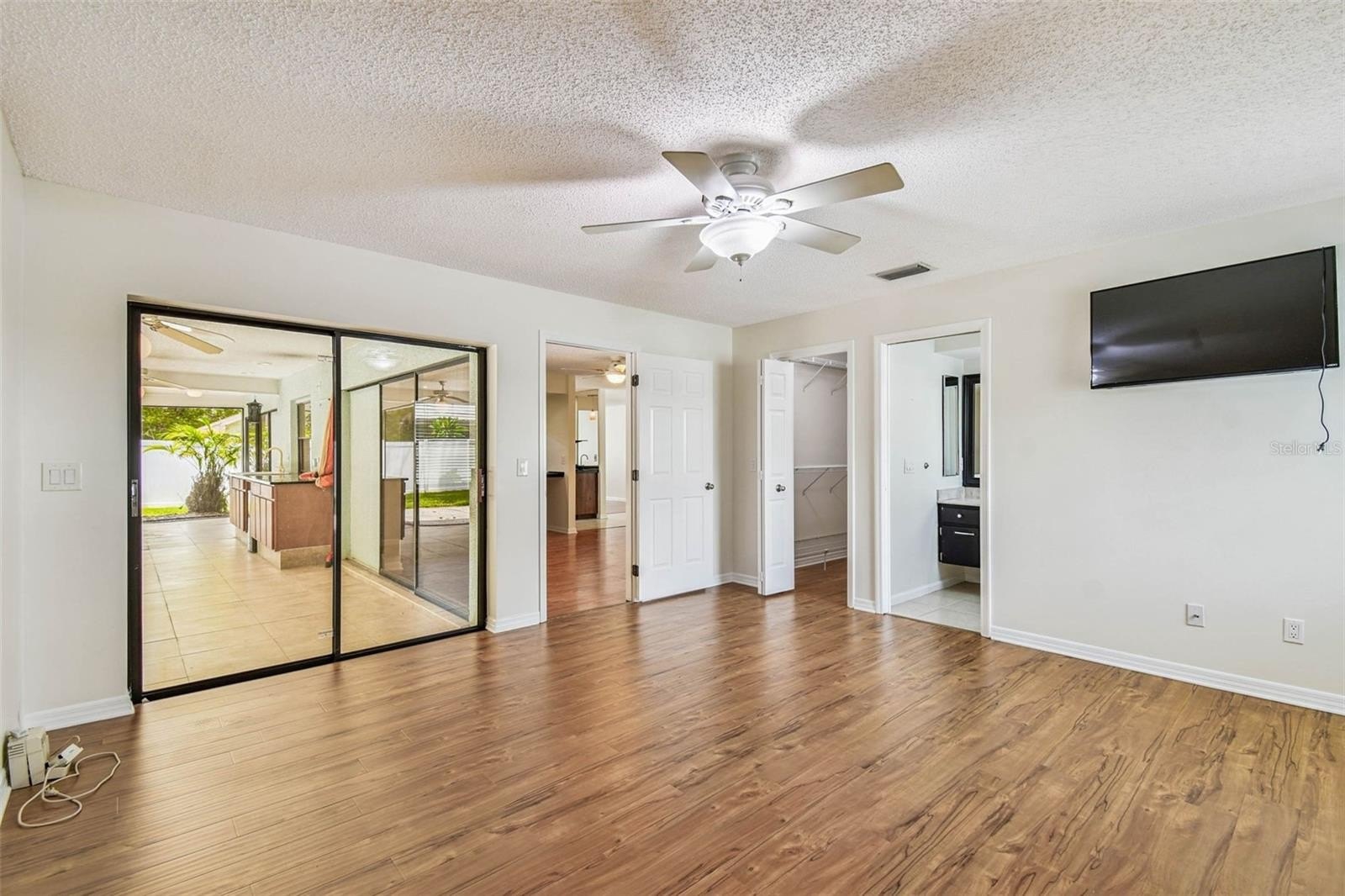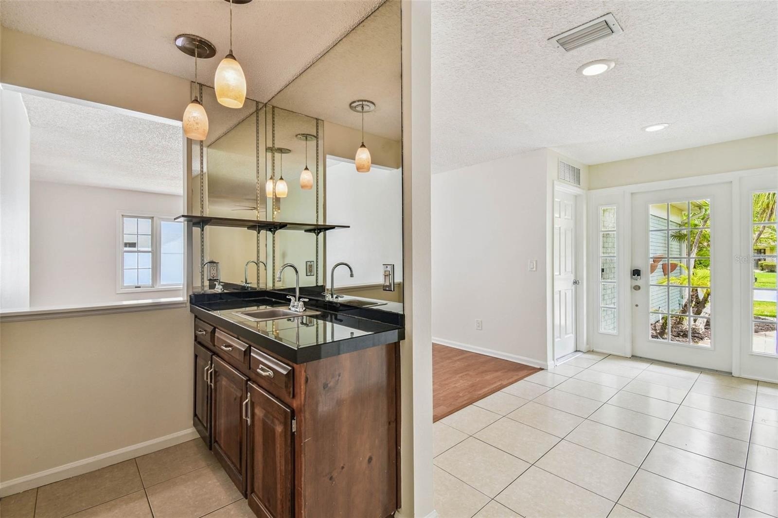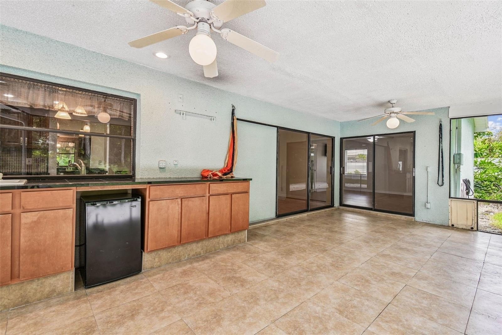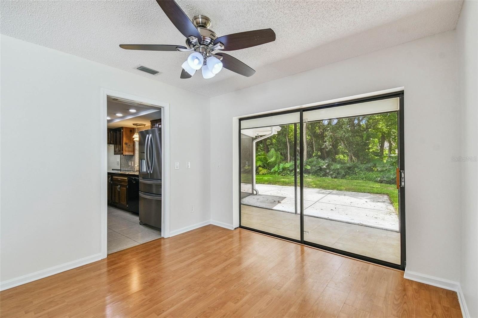 Located in the lovely community of Pebble Creek Village in New Tampa, this charming single story home offers 3 bedrooms, 2 bathrooms and generous living spaces throughout. The extra large living room is perfect for relaxing or entertaining and is conveniently connected to a stylish wet bar-ideal for hosting or enjoying an evening cocktail. A bright dining area with sliding glass doors leads to the over-sized screened lanai, featuring a built in sink and minifridge for outdoor entertaining. The expansive kitchen is equipped with a breakfast bar, newer appliances, window to the porch and open views into the separate family room, making it the true heart of the home. The spacious owner's suite is a private retreat, boasting an ensuite bath and walk in closet. Two additional bedrooms are separate with their own full bathroom, providing comfort and privacy for family or guests. Set on a fenced 86 x 112 lot, the back of the property provides mature trees for ambiance and privacy. Take advantage of the ample greenspace for outdoor living or family sports. The indoor laundry room includes washer, dryer, large sink basin and cabinets galore for all your storage needs. Enjoy all the conveniences of Pebble Creek living-just minutes to schools, shopping, restaurants and major interstates for easy commutes.