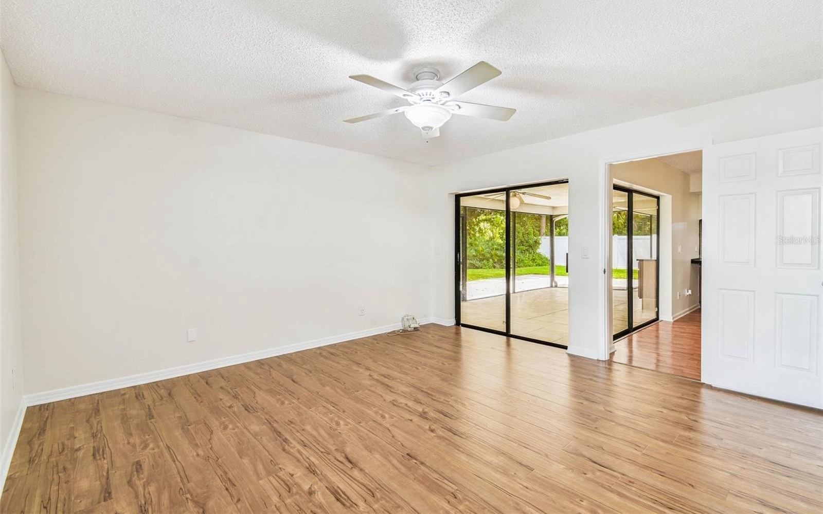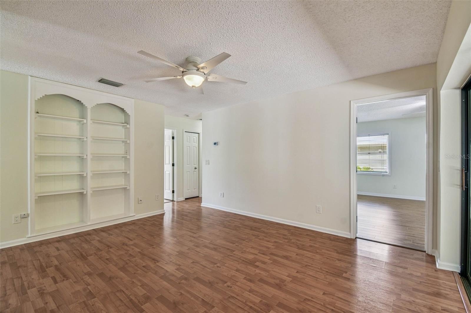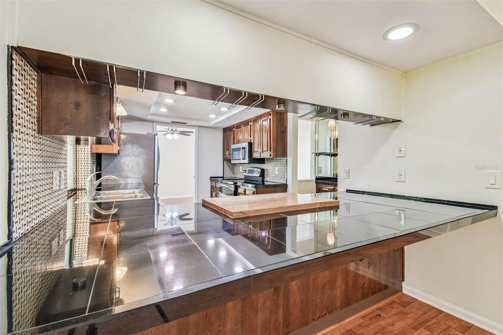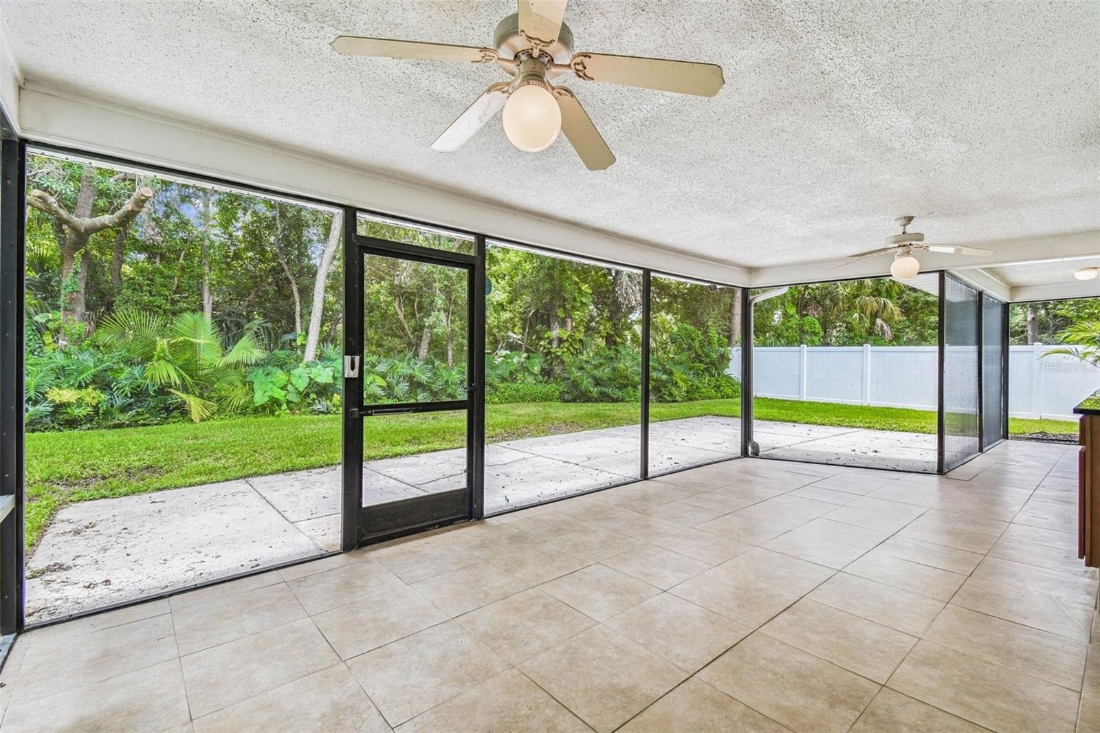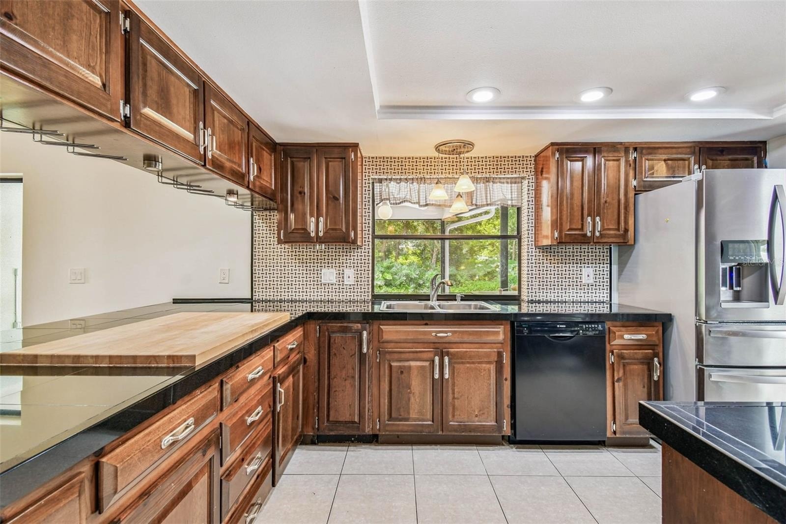 Located in the lovely community of Pebble Creek Village in New Tampa, this charming single story home offers 3 bedrooms, 2 bathrooms and generous living spaces throughout. The extra large living room is perfect for relaxing or entertaining and is conveniently connected to a stylish wet bar-ideal for hosting or enjoying an evening cocktail. A bright dining area with sliding glass doors leads to the over-sized screened lanai, featuring a built in sink and minifridge for outdoor entertaining. The expansive kitchen is equipped with a breakfast bar, newer appliances, window to the porch and open views into the separate family room, making it the true heart of the home. The spacious owner's suite is a private retreat, boasting an ensuite bath and walk in closet. Two additional bedrooms are separate with their own full bathroom, providing comfort and privacy for family or guests. Set on a fenced 86 x 112 lot, the back of the property provides mature trees for ambiance and privacy. Take advantage of the ample greenspace for outdoor living or family sports. The indoor laundry room includes washer, dryer, large sink basin and cabinets galore for all your storage needs. Enjoy all the conveniences of Pebble Creek living-just minutes to schools, shopping, restaurants and major interstates for easy commutes.