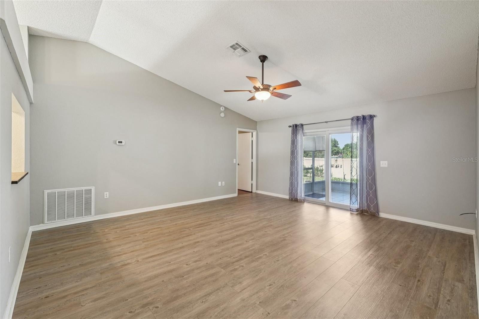 Step inside to find easy-to-maintain tile and laminate flooring throughout—no carpet anywhere. The spacious kitchen opens to the dining and living areas, making it perfect for entertaining or simply enjoying day-to-day life. An enclosed lanai extends your living space, providing the perfect spot to relax with morning coffee or unwind in the evening.