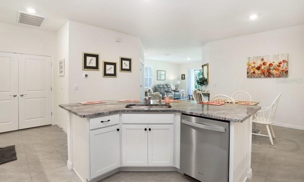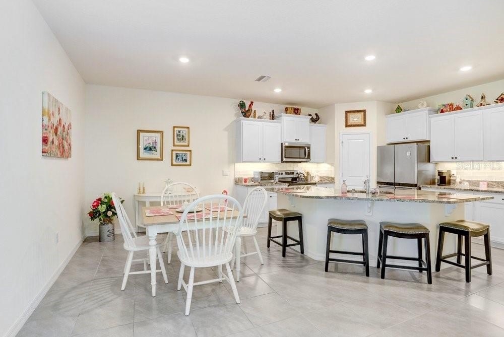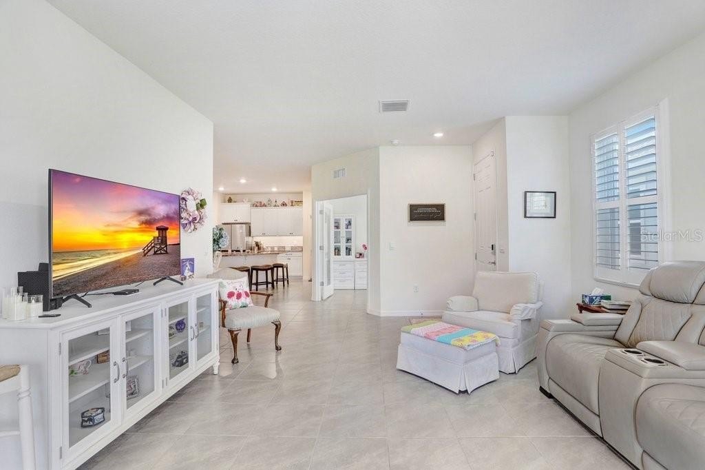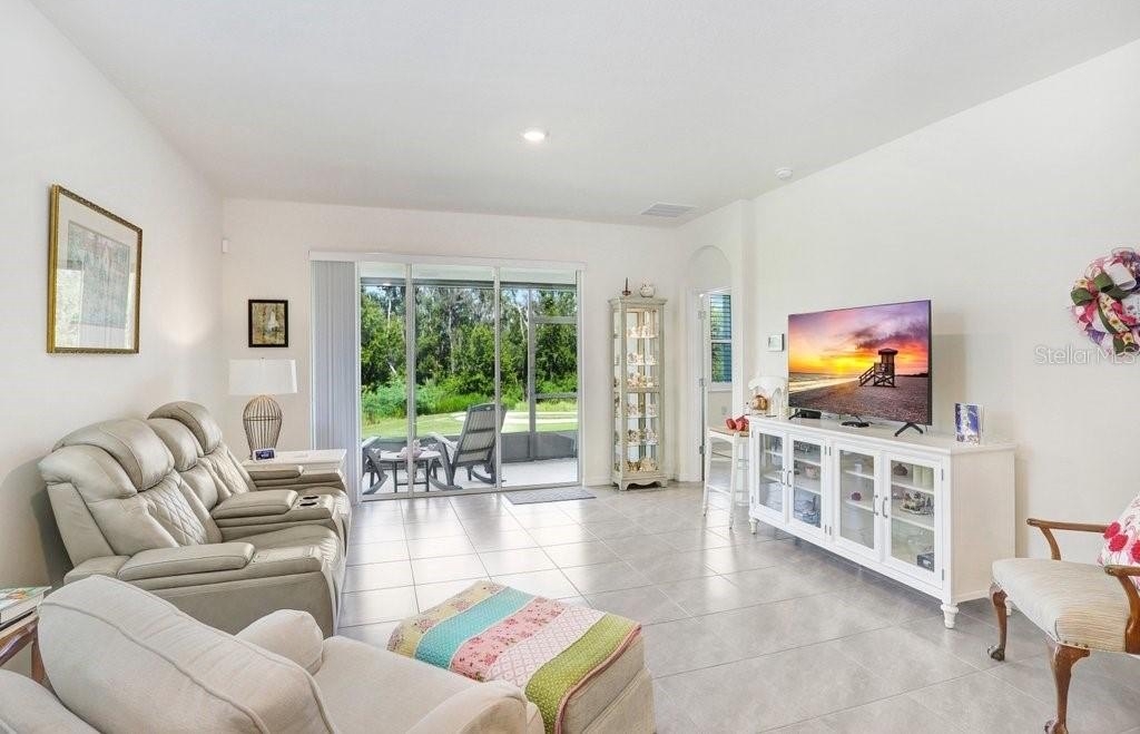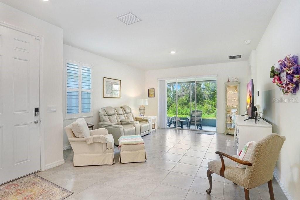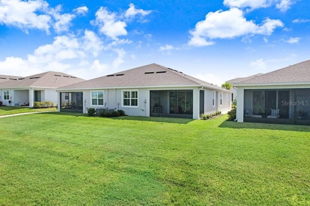 SO MANY UPGRADES! This beautiful 3 bedroom/2 bath Villa is located in the new and upcoming community of Farm at Varrea. The upgrades include, but not limited to, Plantation Shutters; Light Gray Tile throughout; White Cabinets; Granite Countertops throughout; Under Cabinet Lighting; Beautiful Subway Tile Backsplash; Epoxy Flooring in Garage, Back Patio, and Front Door Landing; Screened Back Patio with Sun Shades; Extra insulation blown in Attic; Insulation in the Garage Door; Water Filtration System installed; All Large Kitchen Appliances are included; Washer and Dryer is also included. The Community offers two pools; a Park; a Playground; a Workout Center; a Dog Park; an Area that you can sit by pond that is covered and has rocking chairs; and plenty of Walking Trails throughout. Golf carts are allowed. You have to see this home to truly see the beauty of it. The home has a split bedroom plan. The colors make the home look very crisp, fresh and clean. Your backyard has a beautiful view of a conservation area with trees and the walking trails.
