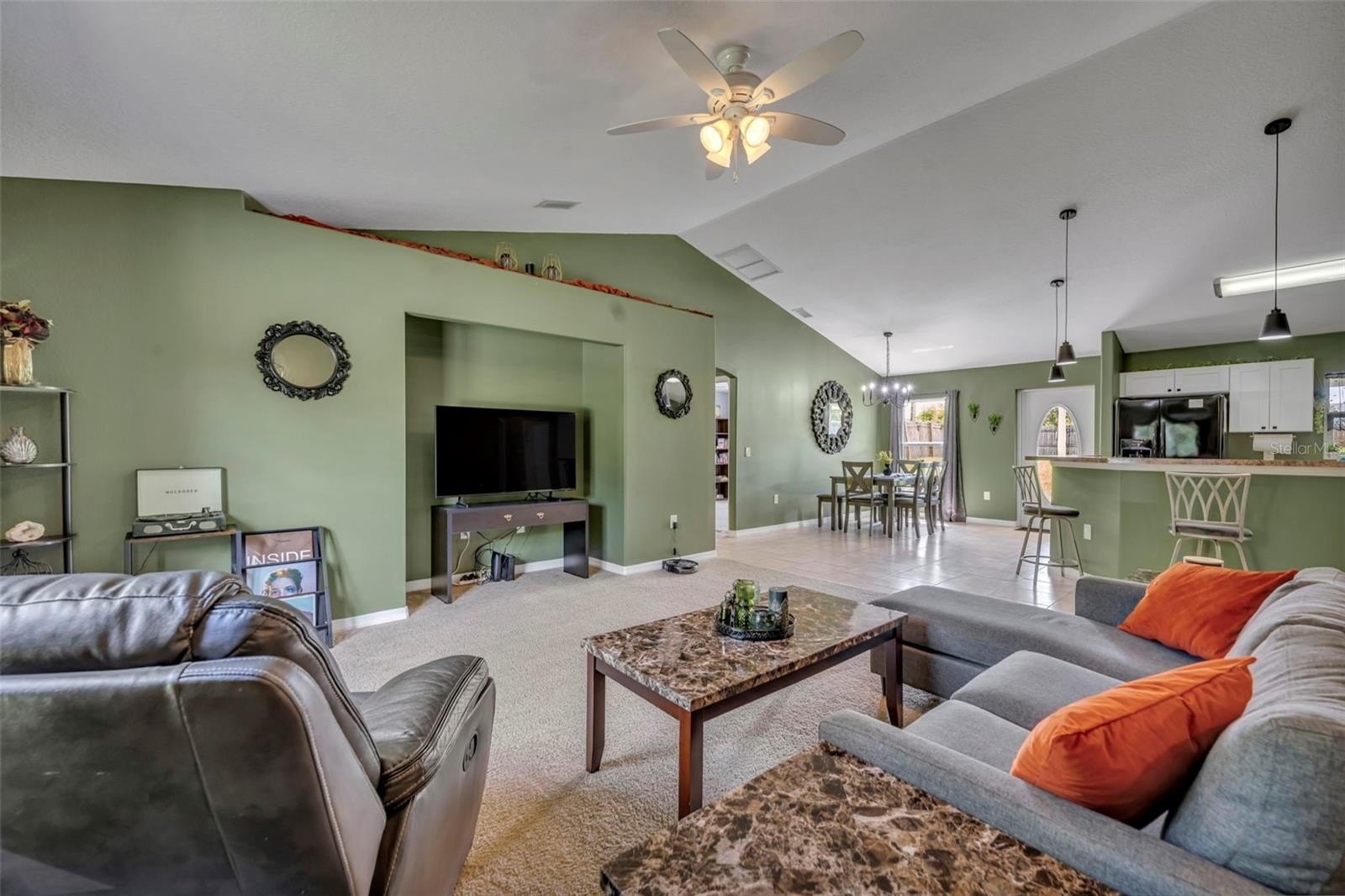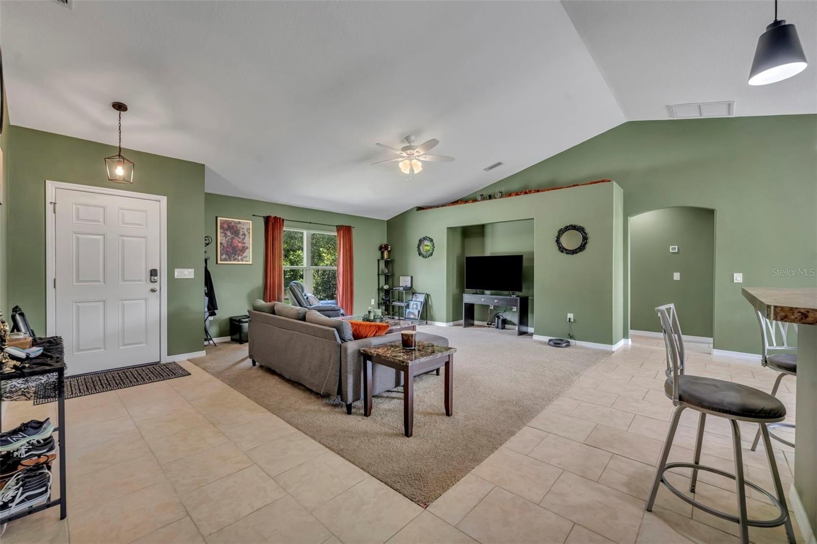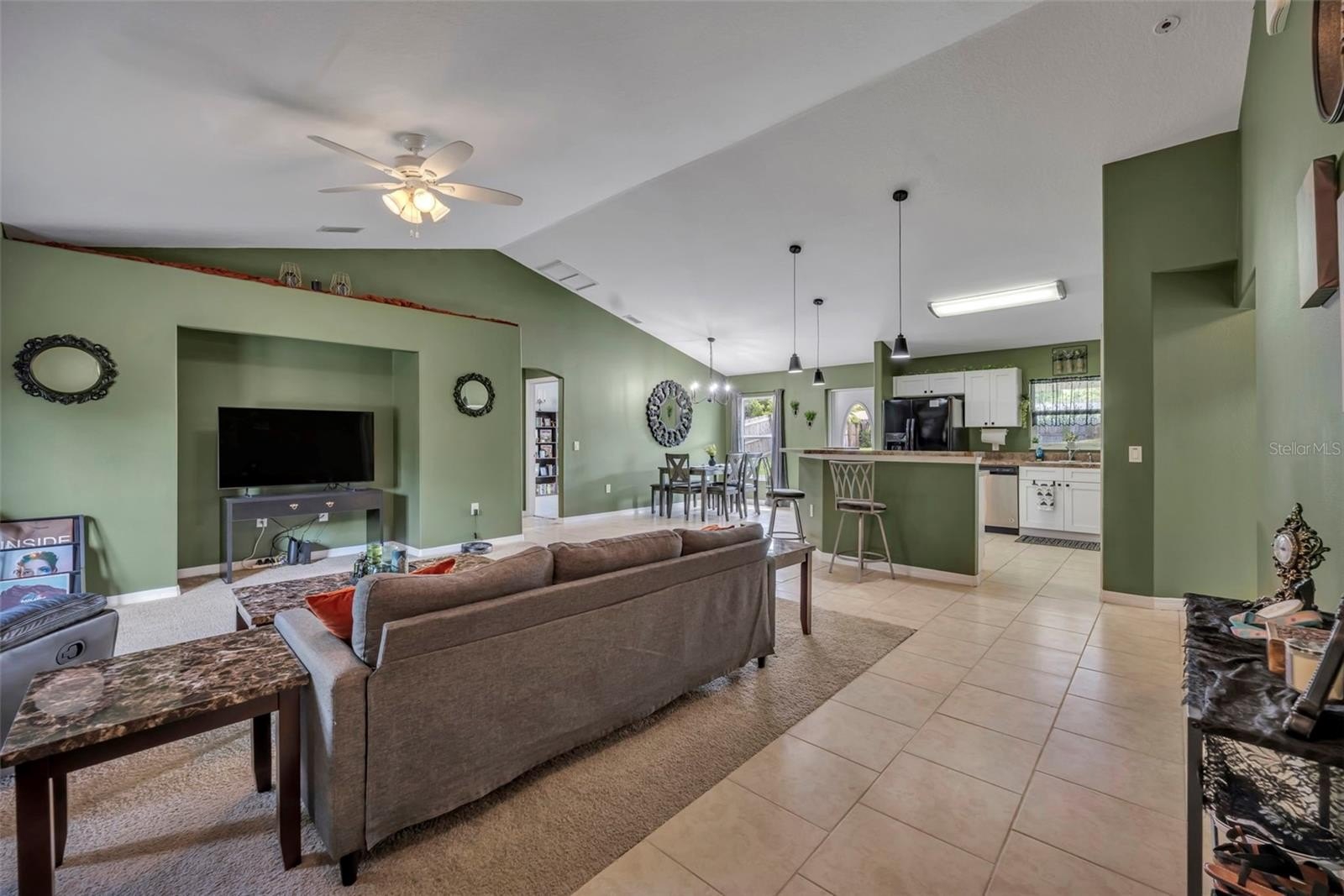 Step inside to an open-concept floor plan that connects the living, dining, and kitchen areas—perfect for both entertaining and everyday living. You’ll love the beautiful tile flooring throughout the main living spaces, while all bedrooms feature soft, plush carpeting for added comfort.