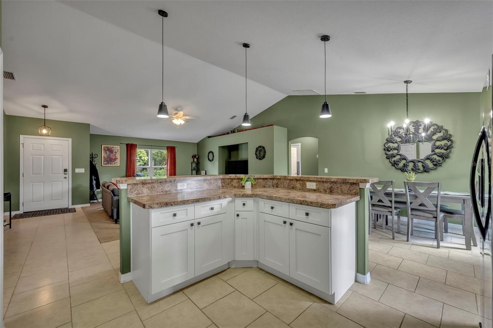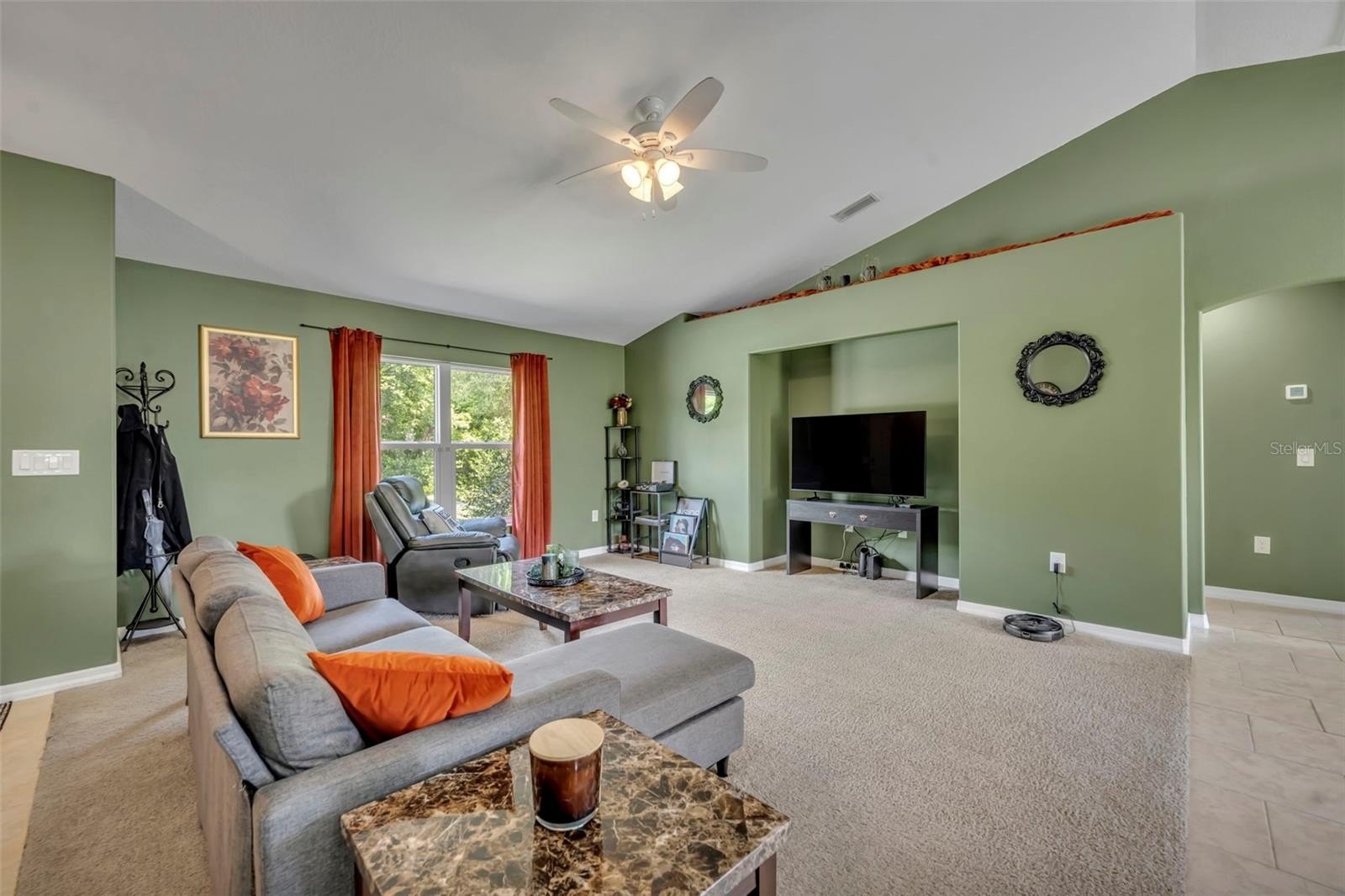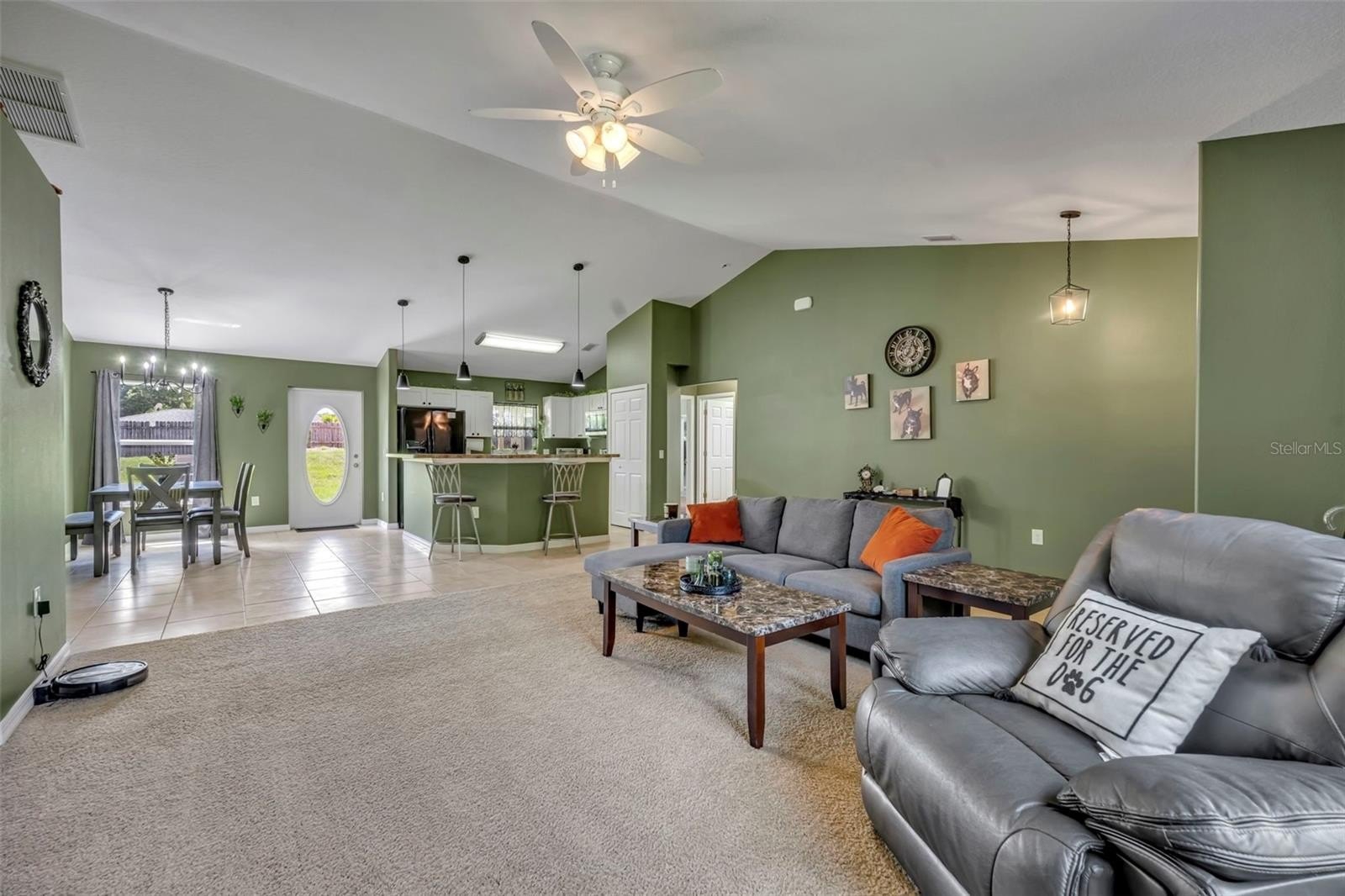 Step inside to an open-concept floor plan that connects the living, dining, and kitchen areas—perfect for both entertaining and everyday living. You’ll love the beautiful tile flooring throughout the main living spaces, while all bedrooms feature soft, plush carpeting for added comfort.
