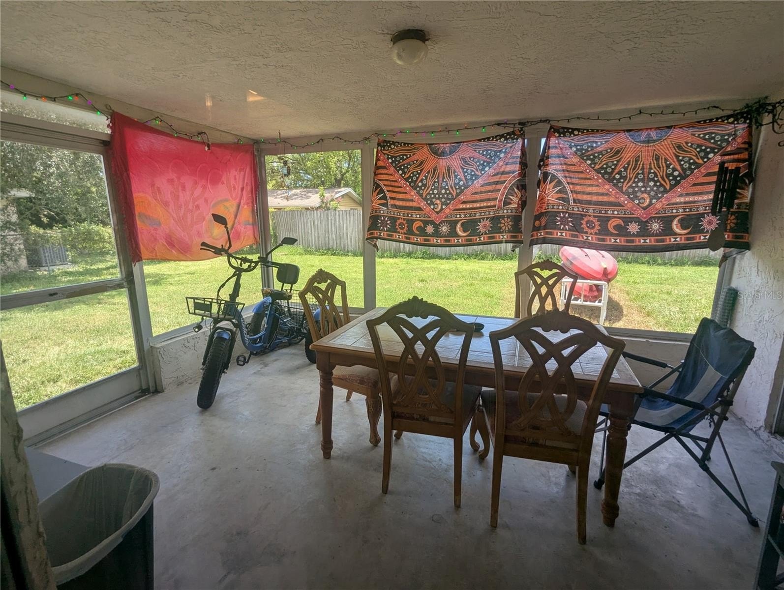 Inside, you’ll find a bright and spacious floor plan. The kitchen features room for a cozy eat-in area, while the large den is filled with natural light from expansive windows and a sliding glass door. Step outside to the screened-in porch, the perfect spot to relax and enjoy views of the backyard.