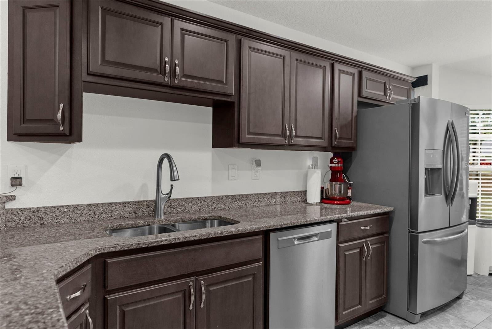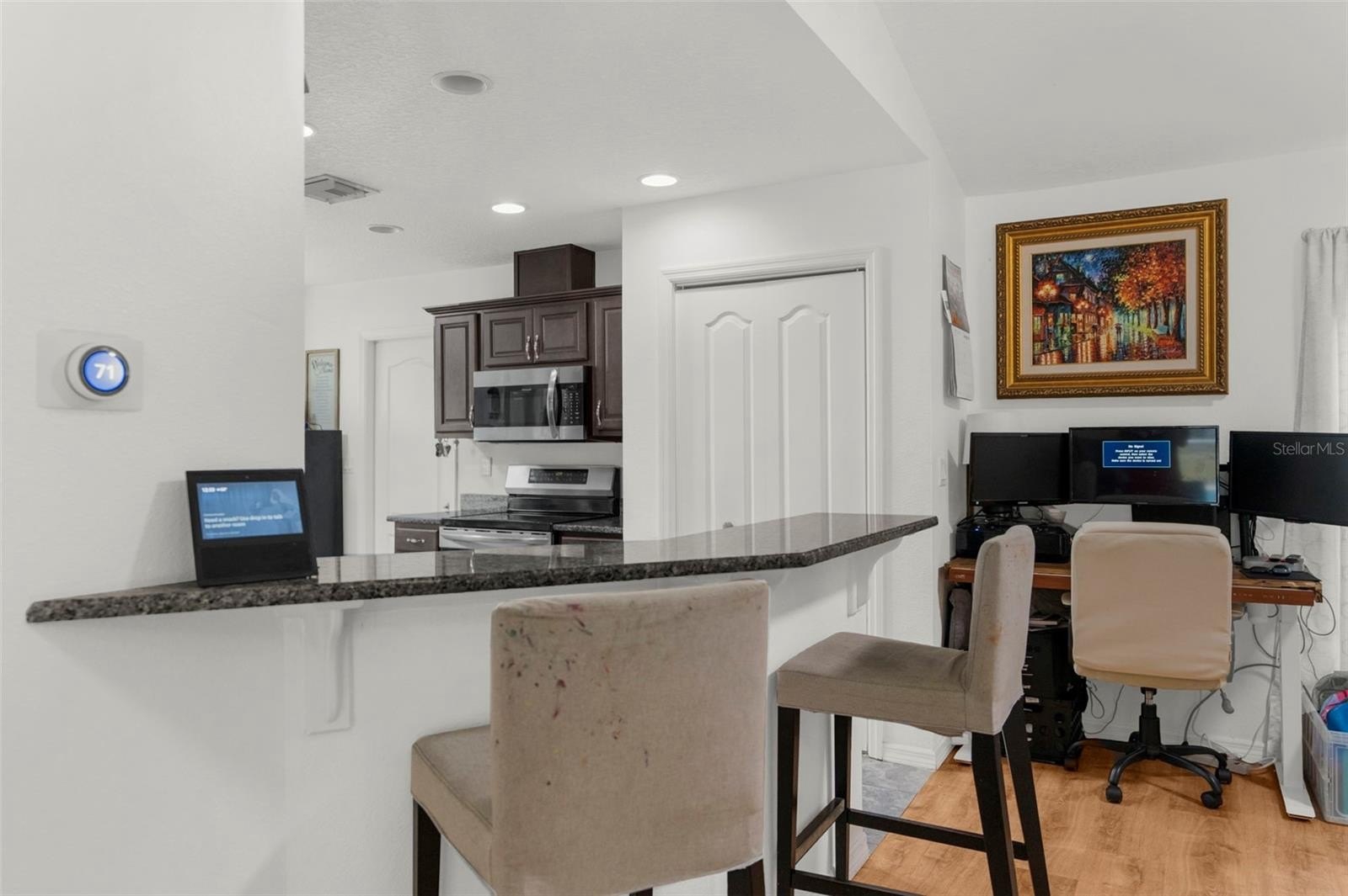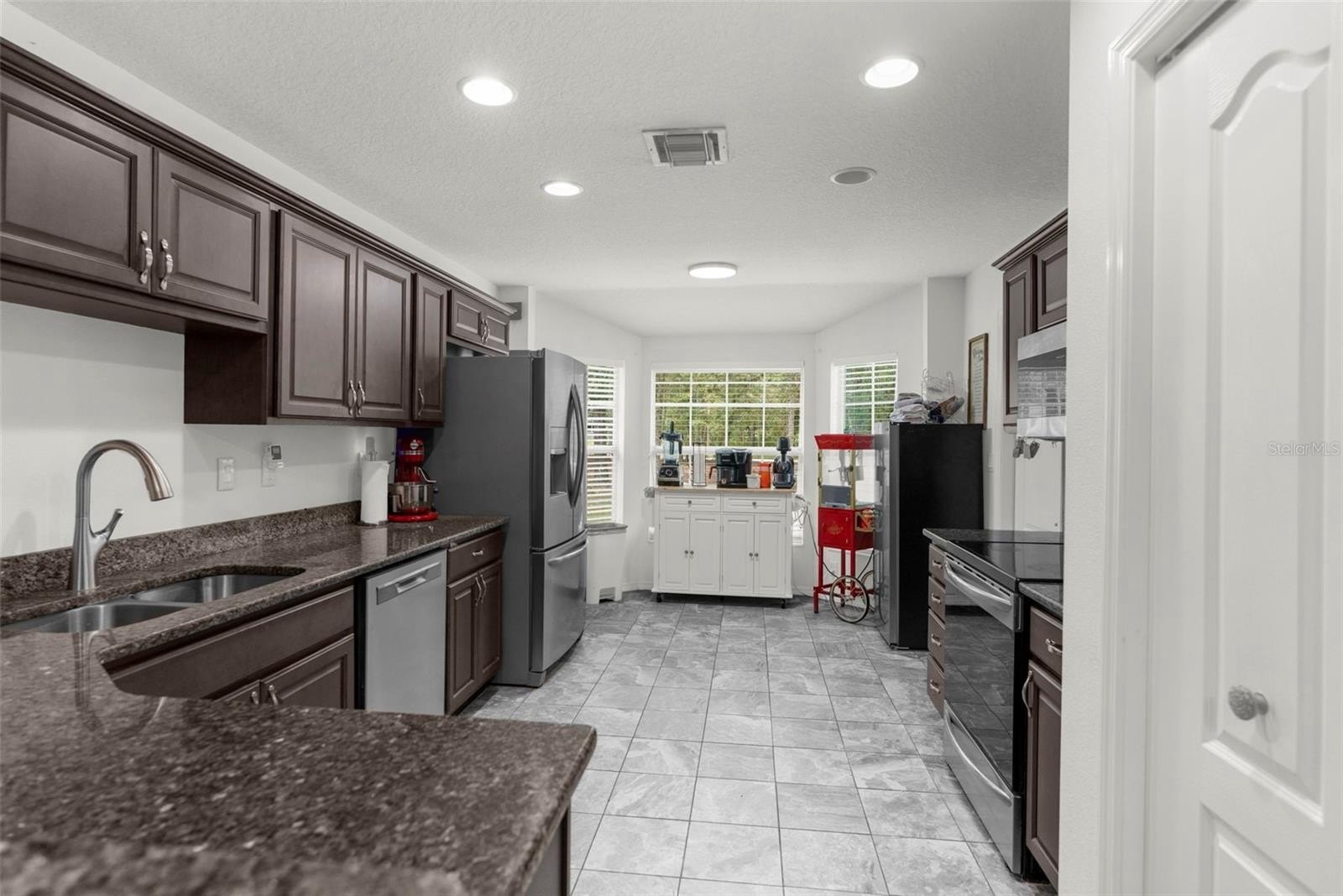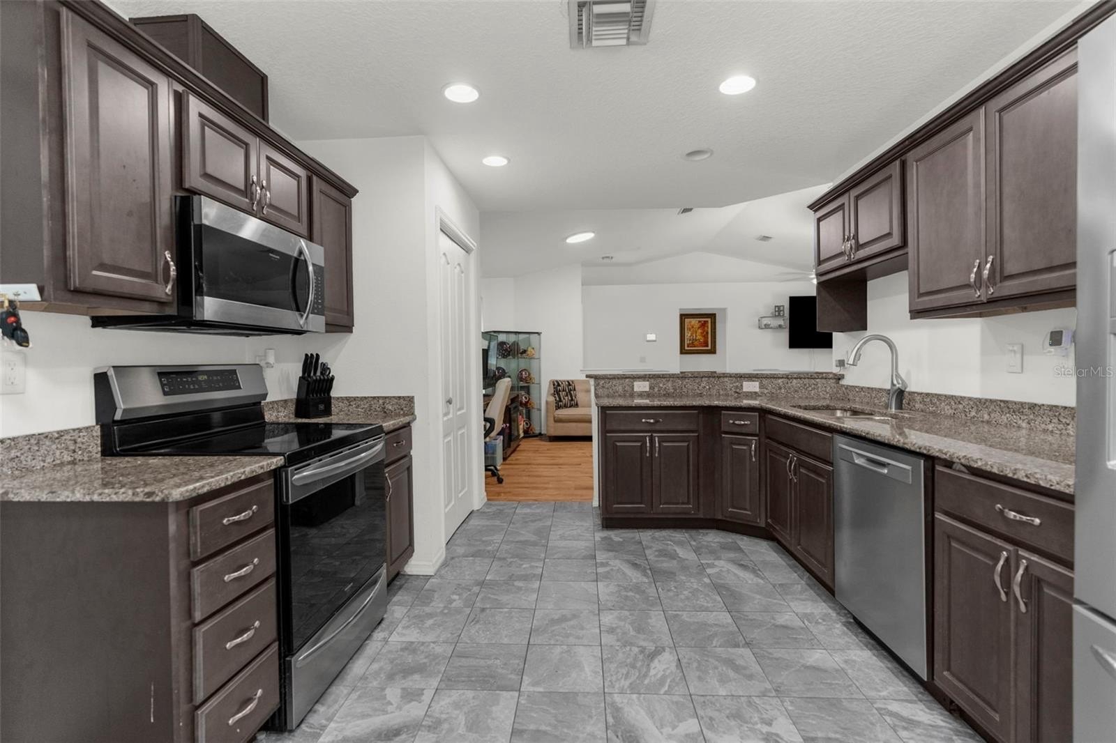 The kitchen offers granite counter tops, real wood cabinets, stainless steel appliances, granite breakfast bar and a breakfast nook!! The bathrooms offer matching granite and real wood cabinets for that modern upgraded design and feel! The kitchen is open to he dining room and great room!!