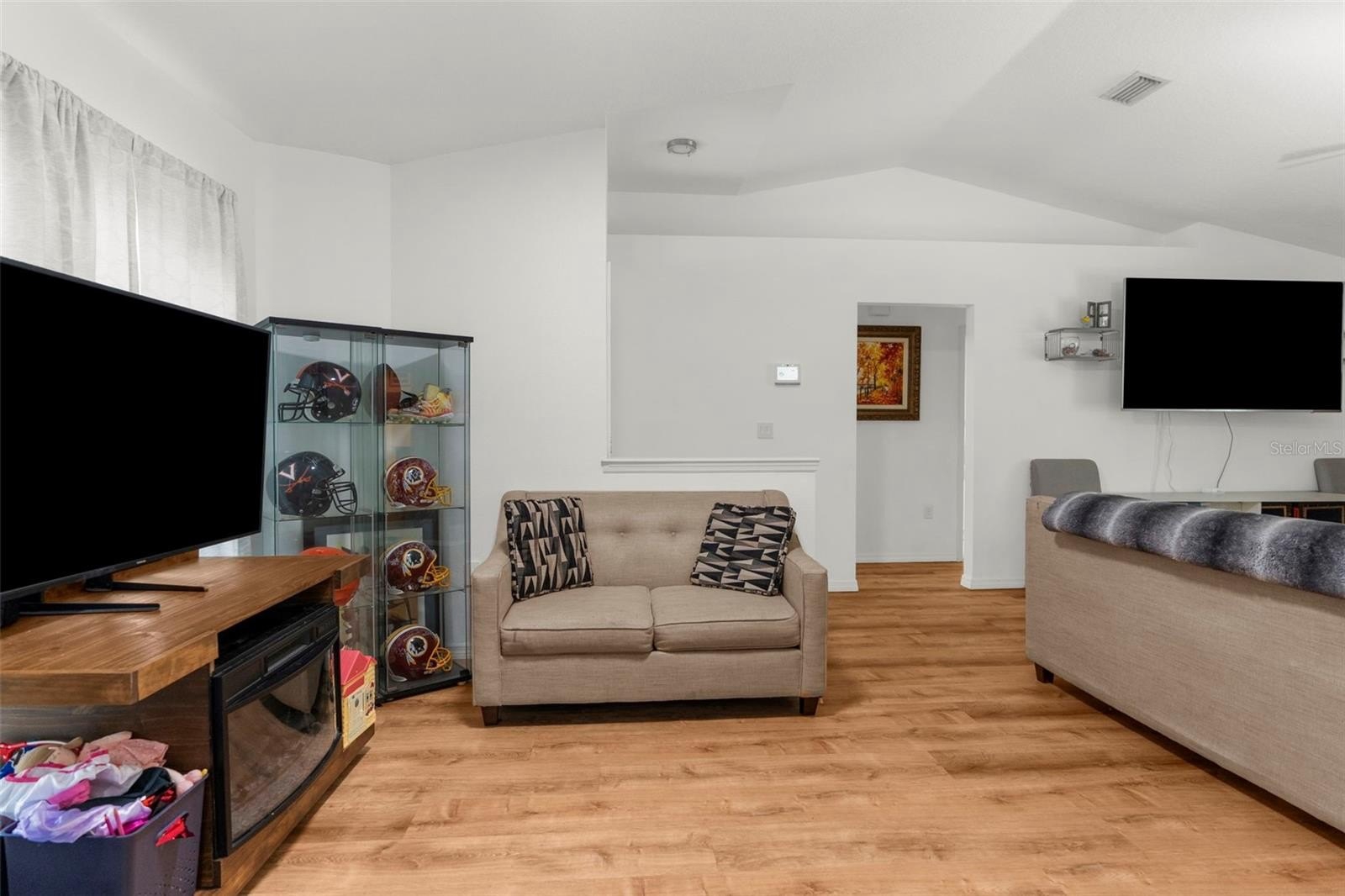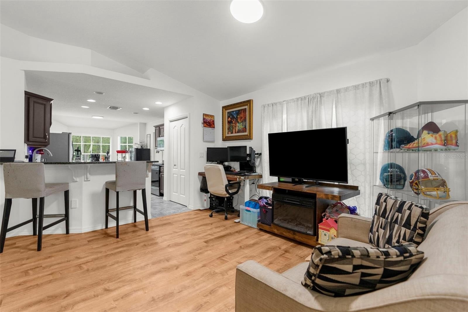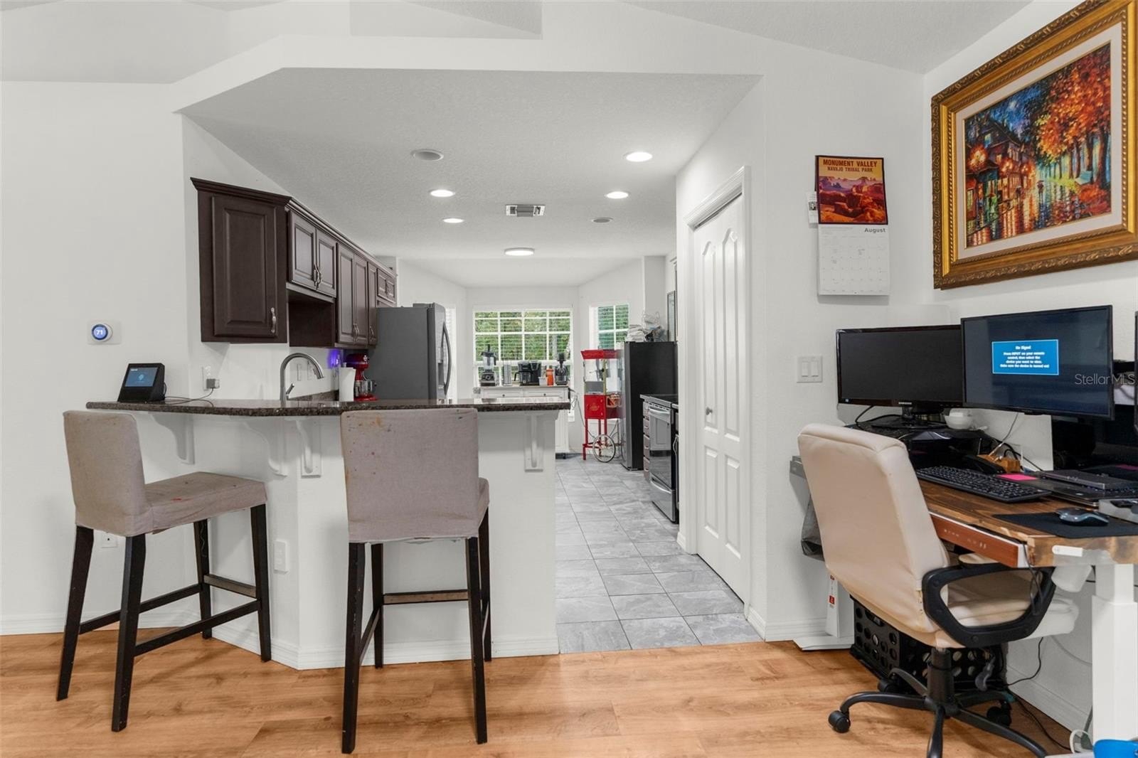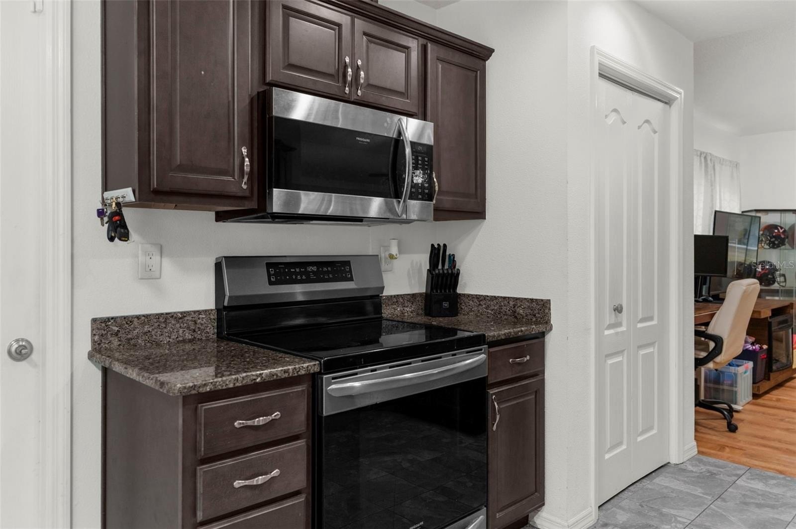 The kitchen offers granite counter tops, real wood cabinets, stainless steel appliances, granite breakfast bar and a breakfast nook!! The bathrooms offer matching granite and real wood cabinets for that modern upgraded design and feel! The kitchen is open to he dining room and great room!!