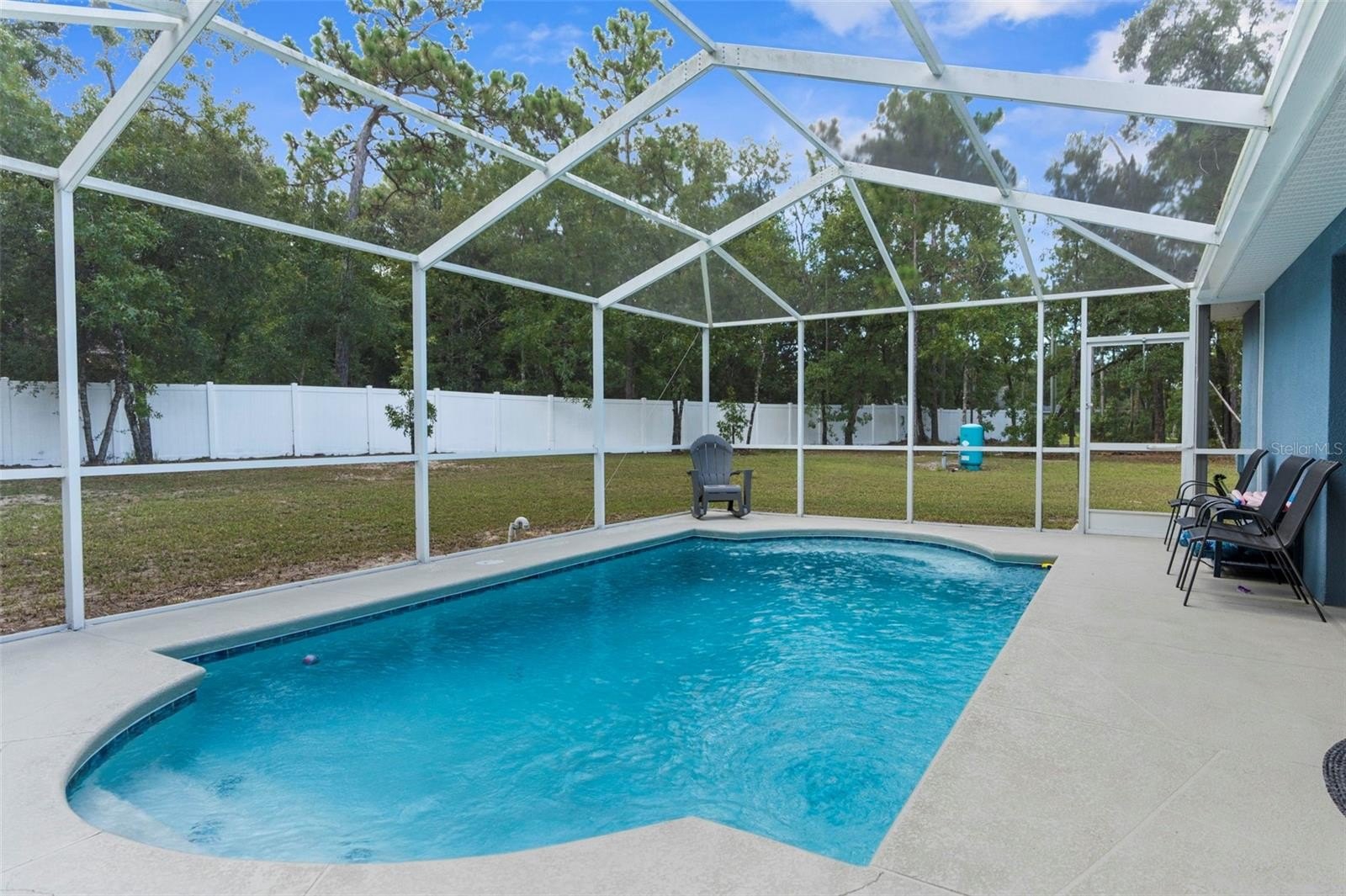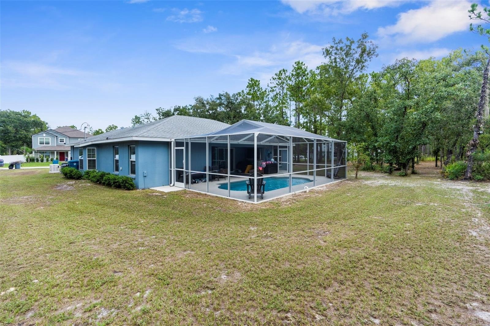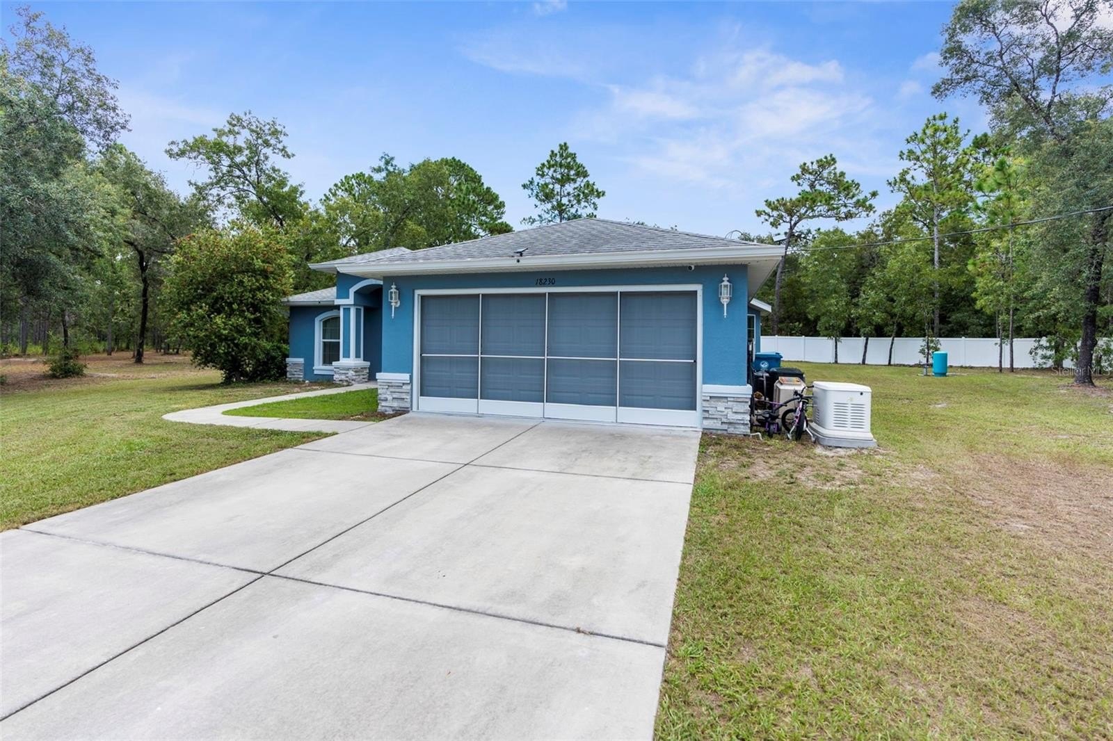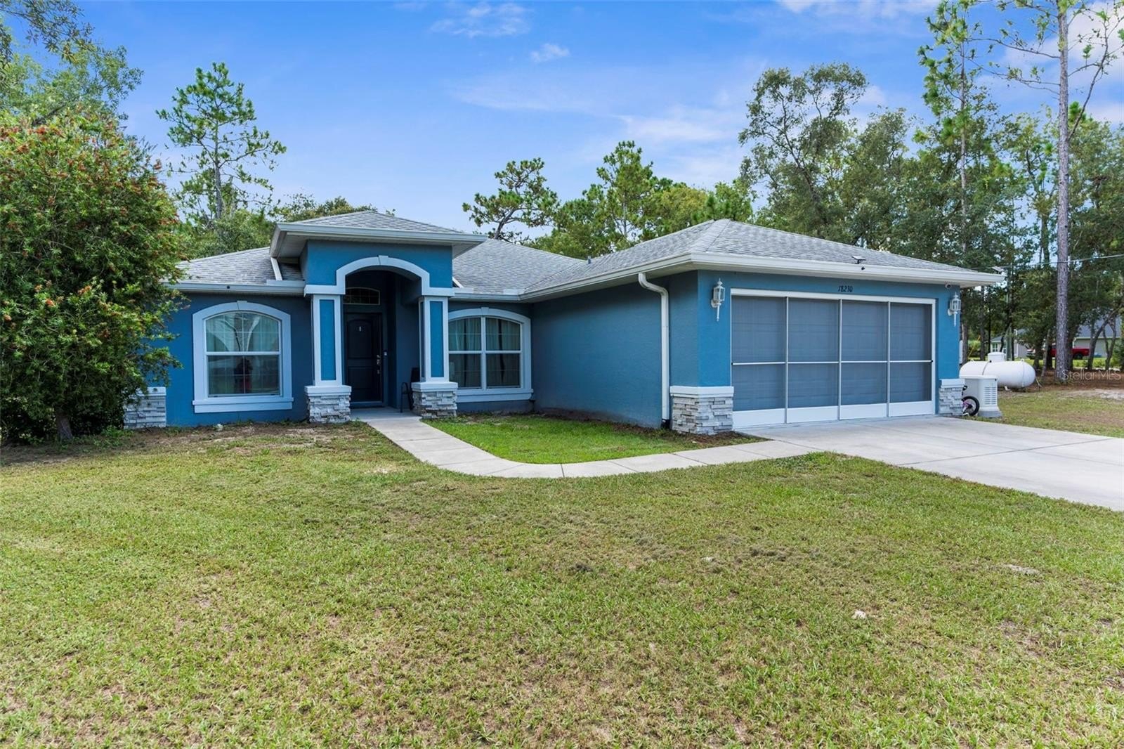 THIS ONE HAS SO MUCH!! 3 Bedrooms + 2 Bathrooms + 2-car garage + private saltwater pool + whole house generator + all nestled in the trees on 1.20 acres on a large corner lot!! Built in 2020...this home is fairly new with ROOF 2020, AC 2020! NO HOA!! NO FLOOD!! OPEN FLOOR PLAN makes the home feel spacious! High ceilings, triple glass slider and large windows makes this home feel light, bright, cheery, and spacious!! Views of the pool and not seeing any neighbors...sure makes you feel secluded and private!! Enjoy the Florida days in your own private pool! Large covered lanai is great for entertaining family and friends! Never be without power if the power goes out...as you have a whole house generator with your own large propane tank! Sellers cleared the lot out so you can use the whole lot, but left a lot of large, beautiful trees for shade and privacy - the perfect balance!