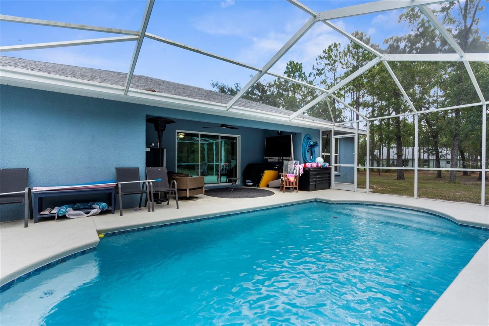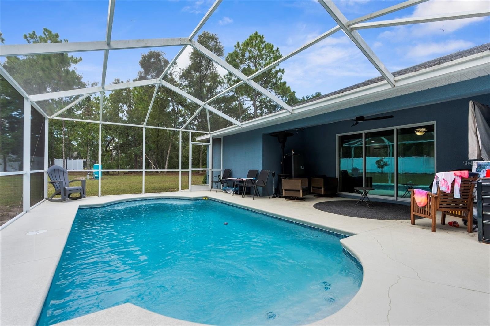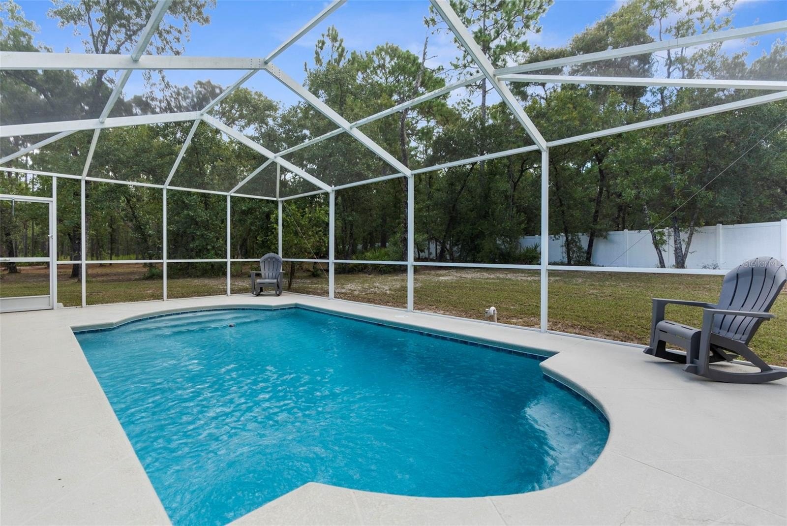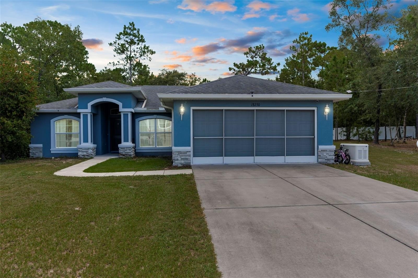 THIS ONE HAS SO MUCH!! 3 Bedrooms + 2 Bathrooms + 2-car garage + private saltwater pool + whole house generator + all nestled in the trees on 1.20 acres on a large corner lot!! Built in 2020...this home is fairly new with ROOF 2020, AC 2020! NO HOA!! NO FLOOD!! OPEN FLOOR PLAN makes the home feel spacious! High ceilings, triple glass slider and large windows makes this home feel light, bright, cheery, and spacious!! Views of the pool and not seeing any neighbors...sure makes you feel secluded and private!! Enjoy the Florida days in your own private pool! Large covered lanai is great for entertaining family and friends! Never be without power if the power goes out...as you have a whole house generator with your own large propane tank! Sellers cleared the lot out so you can use the whole lot, but left a lot of large, beautiful trees for shade and privacy - the perfect balance!