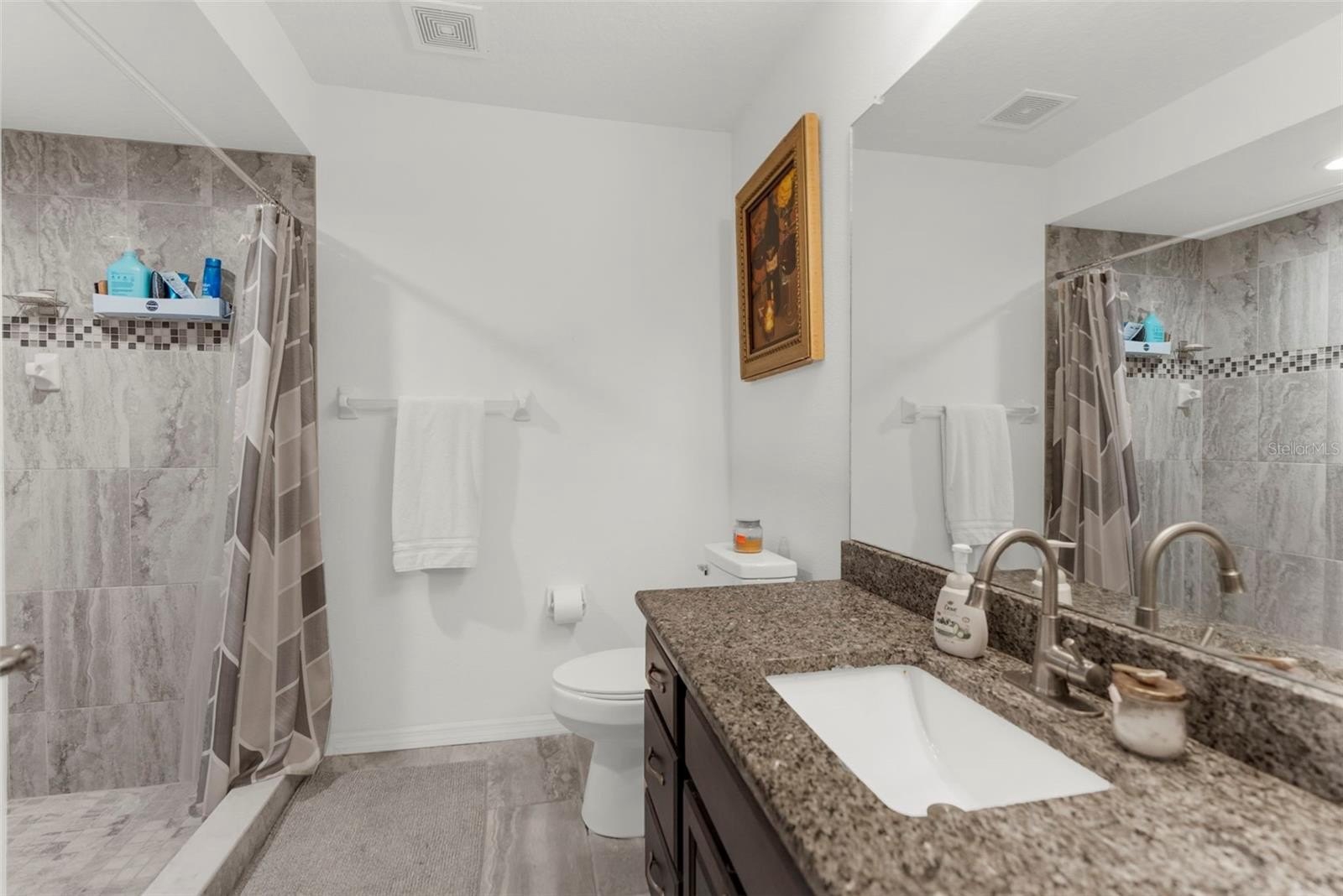 GORGEOUS BATHROOMS with ceramic-tiled shower walls (no pop-in tubs and showers here!) The master bedroom has an ensuite bathroom with LARGE walk-in ceramic-tiled shower, granite counter tops, real wood cabinets, ceramic tile floors, and a LARGE walk-in closet! The split floor plan give privacy to the master suite!! The second and third bedrooms are a good size and the second bathroom has a tub/shower combo with granite countertops, real wood cabinets, and ceramic tiled shower walls and floors! New luxury vinyl floors were recently added to give that clean and upgraded feeling!! NO CARPET!!