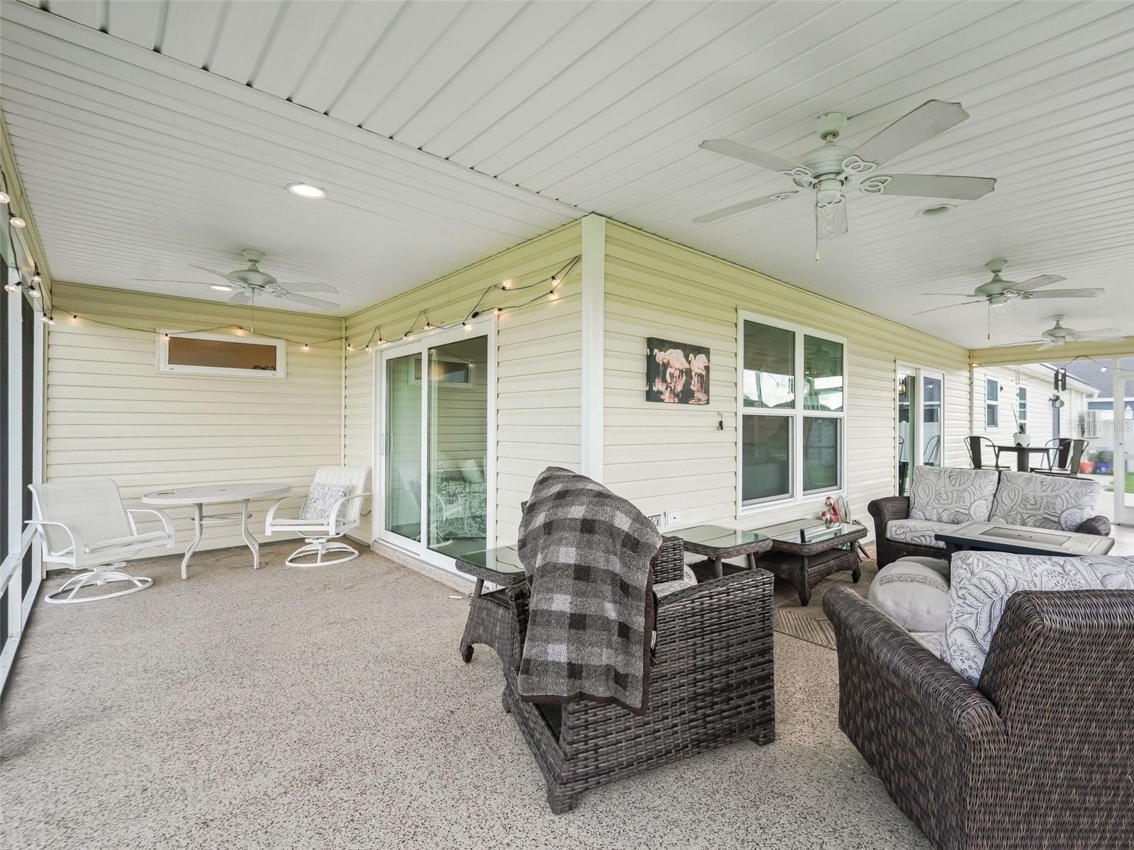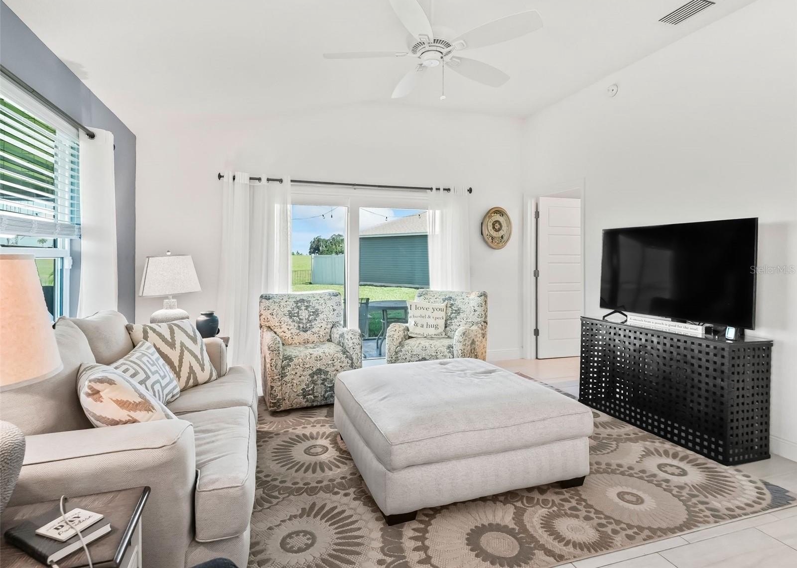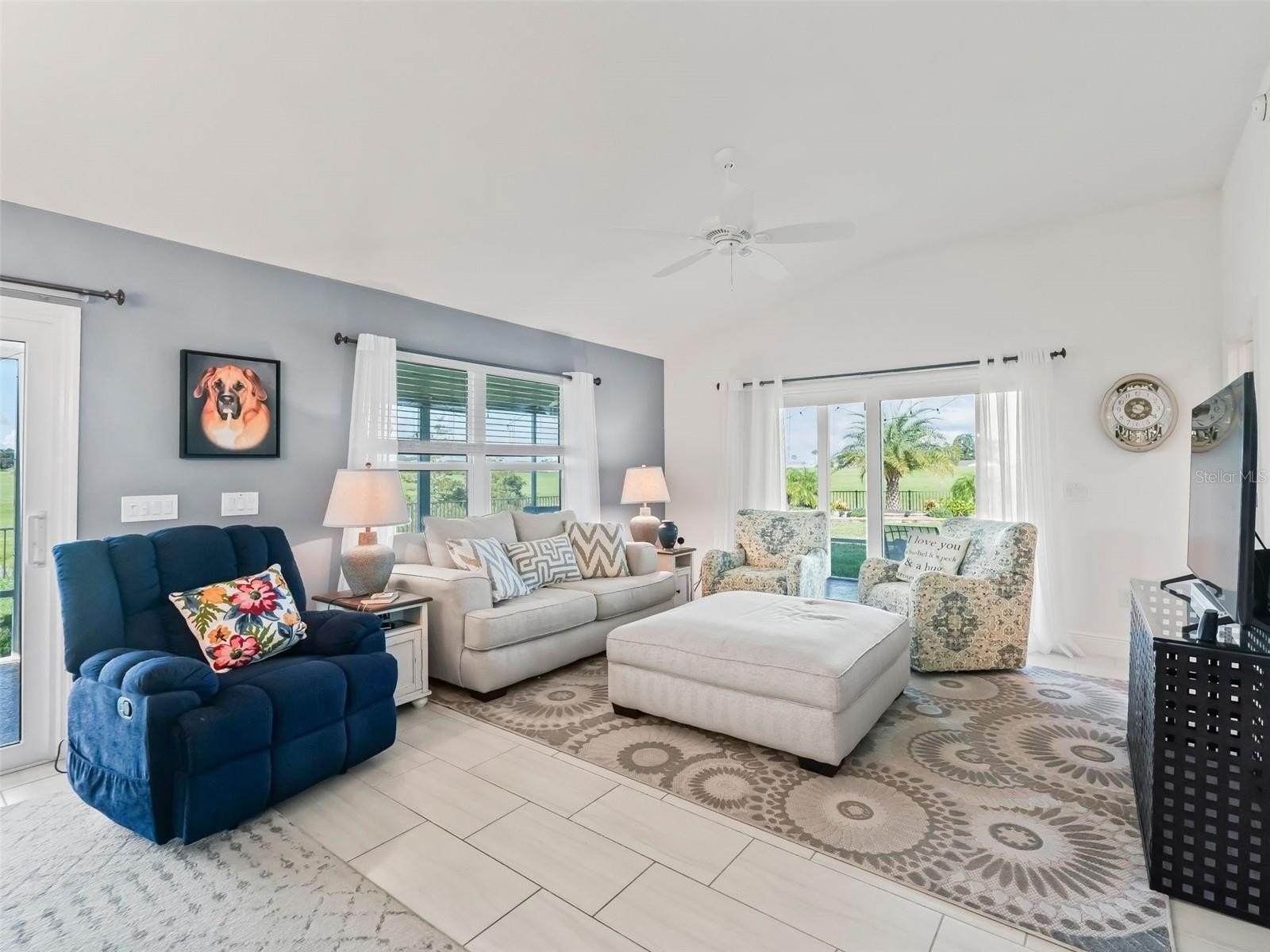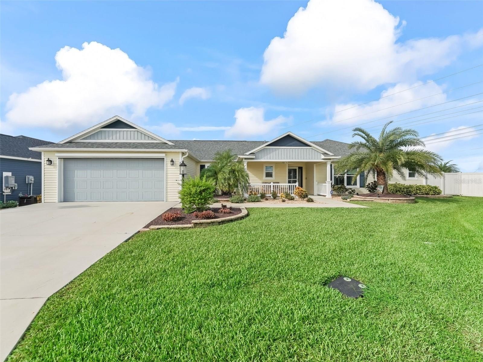 Welcome to this light-filled 3-Bedroom, 2-Bath Bonifay Courtyard Villa (built in 2021) featuring a desirable split floor plan and vaulted ceilings. This rare gem offers an oversized 4 CAR TANDEM GARAGE with epoxy floors and a Mitsubishi split system—perfect for vehicles, golf carts, or a hobby/man/woman cave.