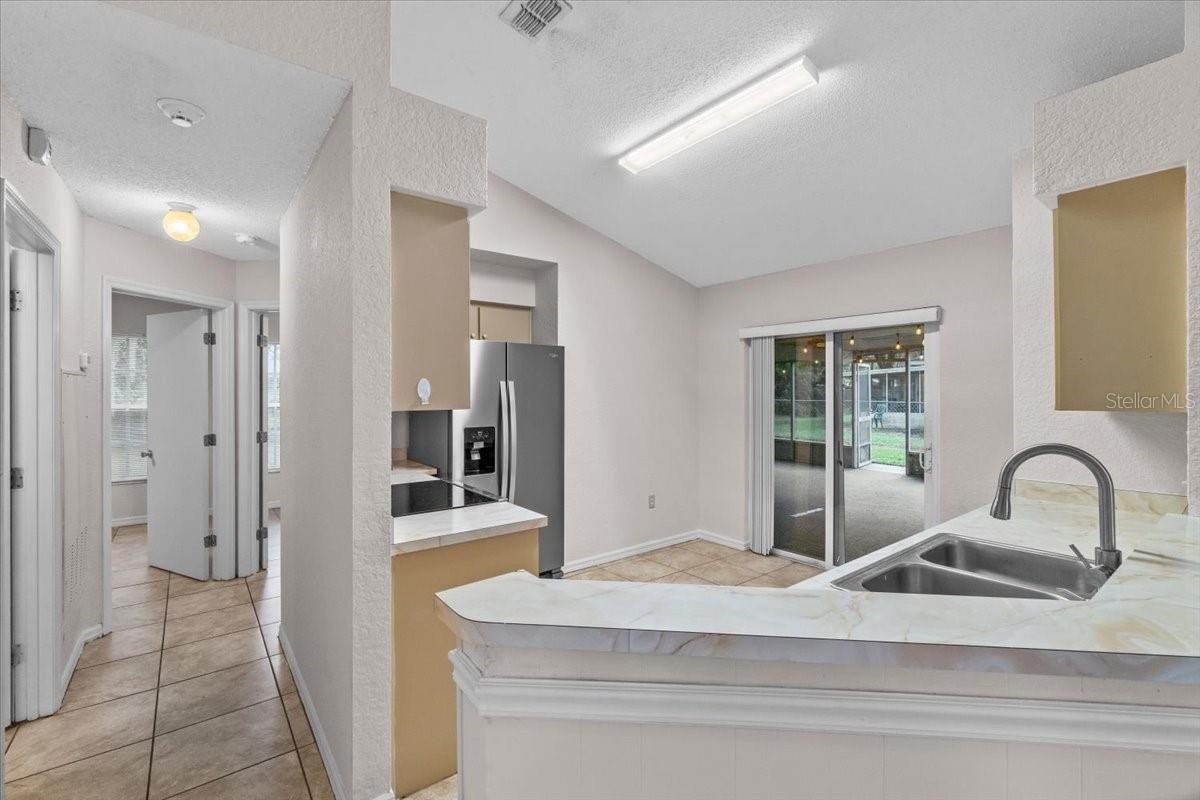 The heart of this home features modern stainless steel appliances that will make any cooking enthusiast smile, whether you're preparing a quick breakfast or hosting a dinner party. Step outside to discover your own private oasis – a large screened-in back porch perfect for morning coffee, evening relaxation, or entertaining guests while staying comfortable in Florida's beautiful weather.