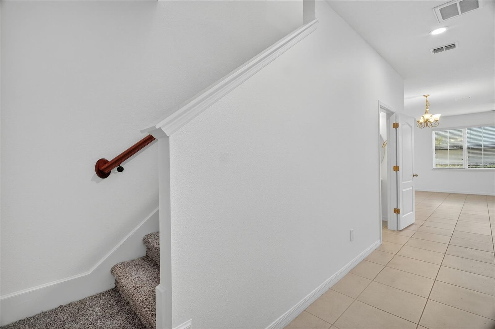 The first floor welcomes you with a spacious foyer and an open kitchen overlooking the living and dining areas. Sliding doors lead to a private back patio with no rear neighbors, perfect for relaxing or entertaining. A convenient half bath and under-the-stairs storage complete the main level.