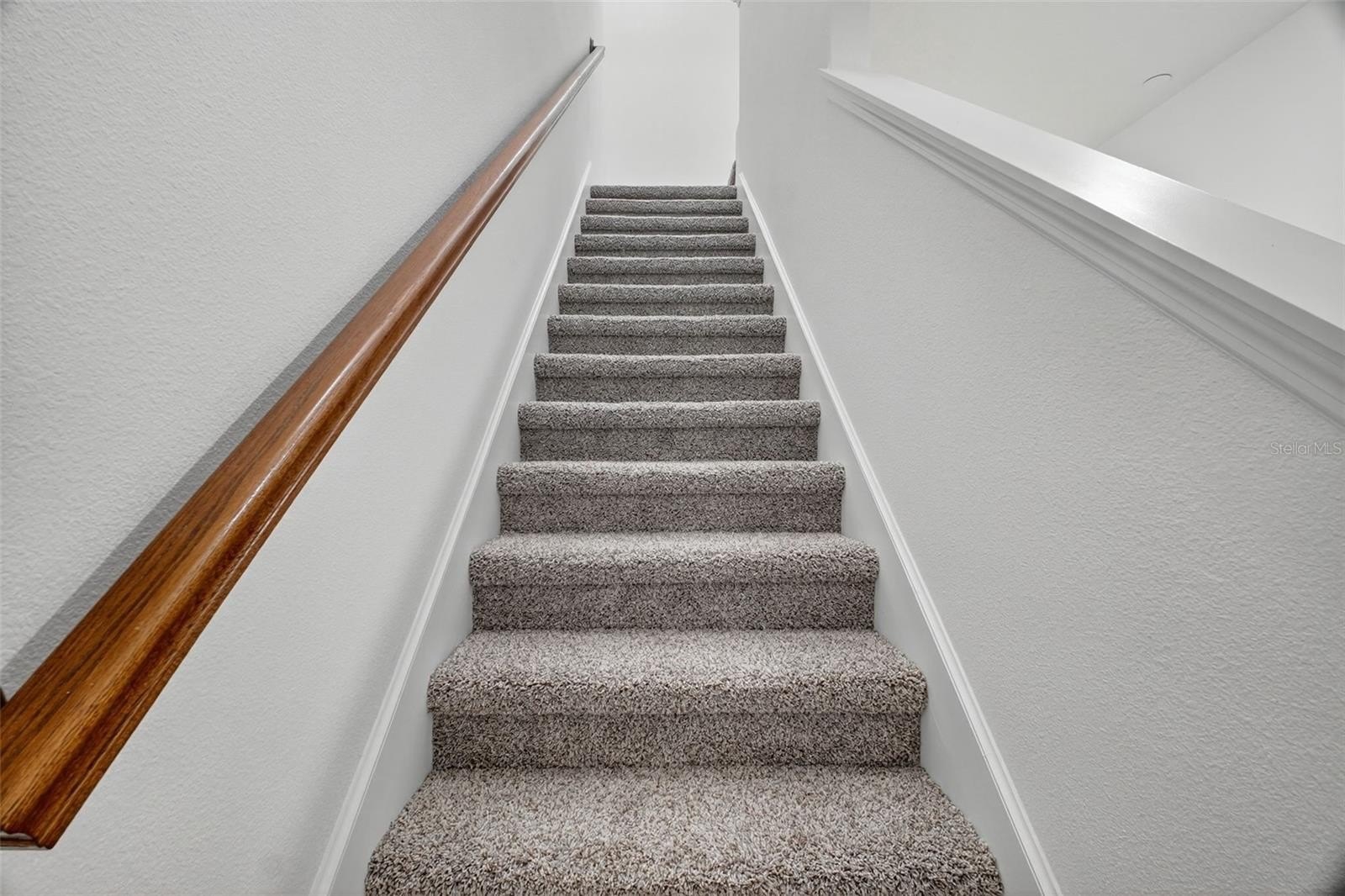 Upstairs, you’ll find a luxurious master suite with a walk-in closet and spa-like bathroom with a walk-in shower. Two additional bedrooms share a full bathroom, while the laundry is conveniently located on the second floor—along with plenty of extra storage.