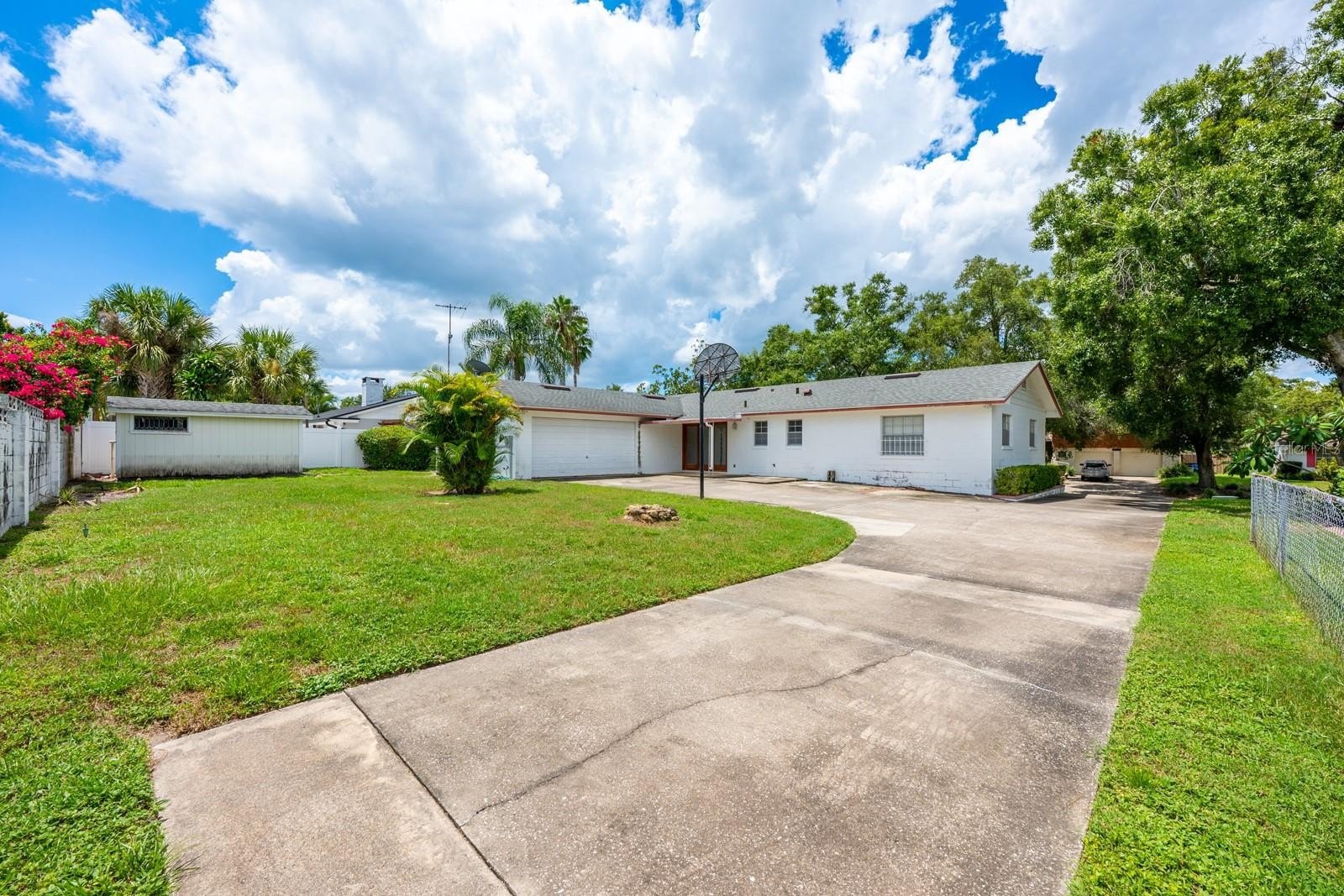 One or more photo(s) has been virtually staged. This property qualifies for a CREDIT UP TO $6375 through the seller's preferred lender ****Welcome to the established Greenbriar community, centrally located in Orlando’s 32806 zip code and this solid single story block home delivering both character and opportunity! Some of the major updates have already been done – there is a NEWER ROOF (2019), and both the plumbing and electrical panel have been updated, giving you a strong starting point to make it your own. Set on an elevated .23 ACRE LOT, this home enjoys a sense of privacy thanks to a long wrap-around driveway, concrete wall in the back, and a garage positioned in the rear completely out of sight from the street. The OVERSIZED GARAGE includes a workshop and there is an additional shed for even more storage. Zoned for TOP-RATED BOONE HIGH SCHOOL and surrounded by mature, native landscaping, the setting is as appealing as it is convenient. Inside the home you will find a floor plan that flows effortlessly between formal and casual living spaces and large windows that fill the home with natural light, highlighting its charm, good bones and spacious feel. Whether you are envisioning an updated modern look or preserving some of the classic style, the layout offers plenty of flexibility! Outside there is a COVERED PATIO overlooking the expansive driveway – great for extra parking or play space – plus a built-in basketball hoop for at home fun. The yard is large enough for gatherings, gardening, or just enjoying the outdoors! The Greenbriar community offers an optional HOA and a quiet established neighborhood feel while being just minutes from Downtown Orlando, major highways, shopping and dining – and with easy access to I-4 via E Michigan St, commuting is a breeze. First time home buyers looking to add your personal touch, or investors looking for a smart investment property in a prime location, this home delivers strong fundamentals, a desirable address, and the space to create exactly what you want. Call today to schedule a tour!