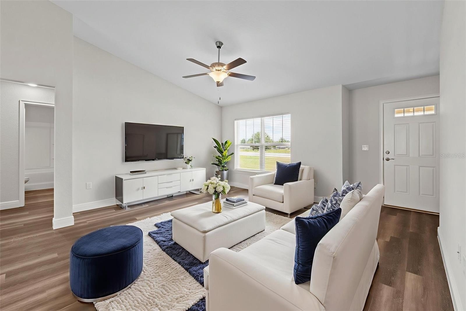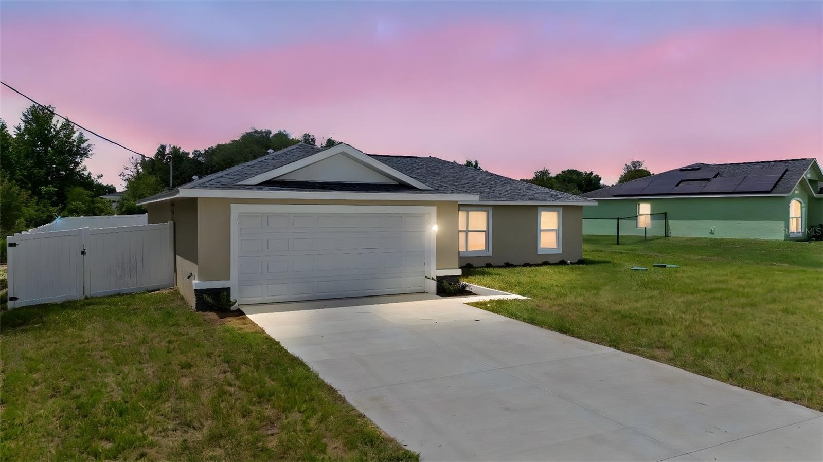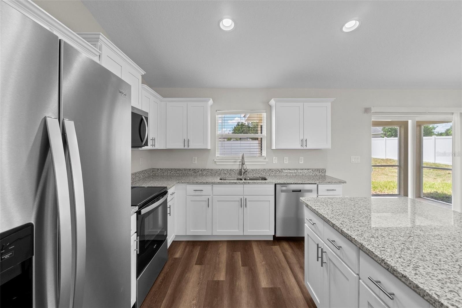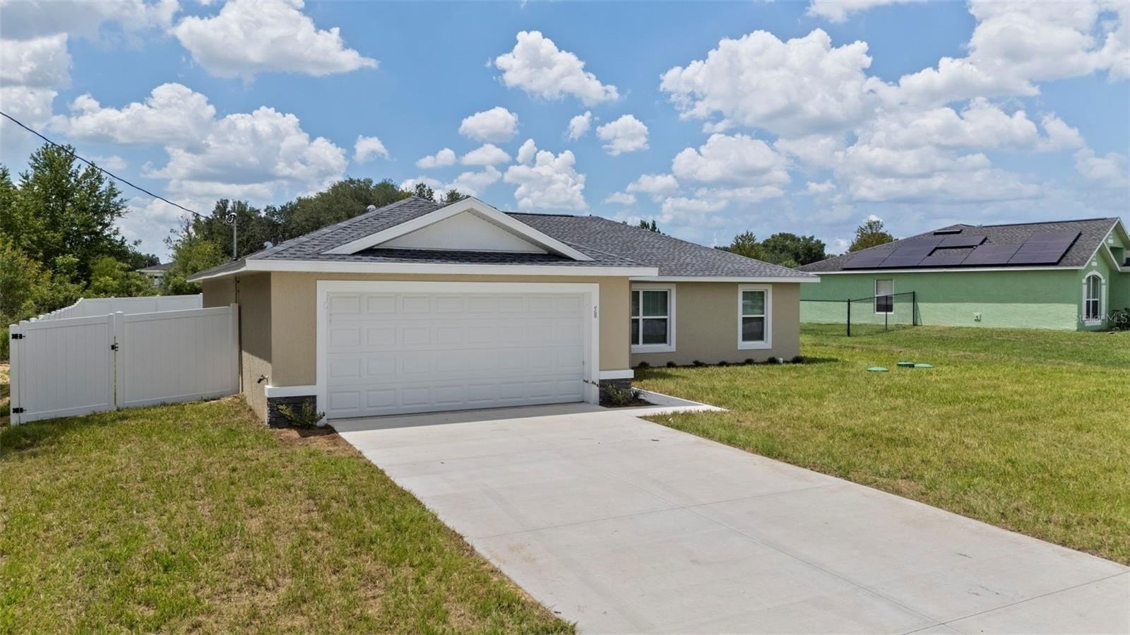One or more photo(s) has been virtually staged. Under Construction. Fully Fenced Yard! Scenic Lot! Special Financing Offer! Make this dream home yours with our limited-time special financing promotion! You could secure an interest rate as low as 5.5%! Experience the best of indoor and outdoor living in this exceptional home! Tucked away on a quiet street, this property offers a rare and coveted feature: a backyard that directly borders a scenic bike trail, with no rear neighbors. The private and serene backyard is fully fenced and a true sanctuary, perfect for relaxing or entertaining. Imagine stepping out your back gate for a morning ride, an evening stroll, or a quick jog without ever needing to get in your car. Step inside the home, where modern style meets comfortable living. High ceilings, an open-concept layout, and a thoughtful split-floor plan for spaciousness and effortless flow, durable and stylish luxury vinyl plank flooring throughout for easy care. The kitchen is the heart of the home, featuring soft-close cabinets, granite countertops, sleek stainless steel appliances, and recessed lighting. A generous kitchen island provides ample space for meal prep, a breakfast bar, or casual dining. Both the kitchen and bathrooms showcase high-quality granite countertops. Your private oasis awaits in the owner's retreat, elevated by tray ceilings, a large walk-in closet, and an en-suite bathroom. Enjoy the convenience of dual sinks and a walk-in shower with beautiful floor-to-ceiling wall tile. Beyond the interior, this home truly shines with its outdoor features. Relax and entertain in the screened, covered lanai, perfect for enjoying the Florida weather bug-free. This home is completely turnkey with included ceiling fans, blinds, and a garage door opener. Plus, an indoor laundry room adds to your everyday convenience. Don't miss this opportunity to own a beautiful, turnkey home with an amazing rate! Call today for more information or to schedule a tour! Photos are of model home, actual home colors and orientation may vary.