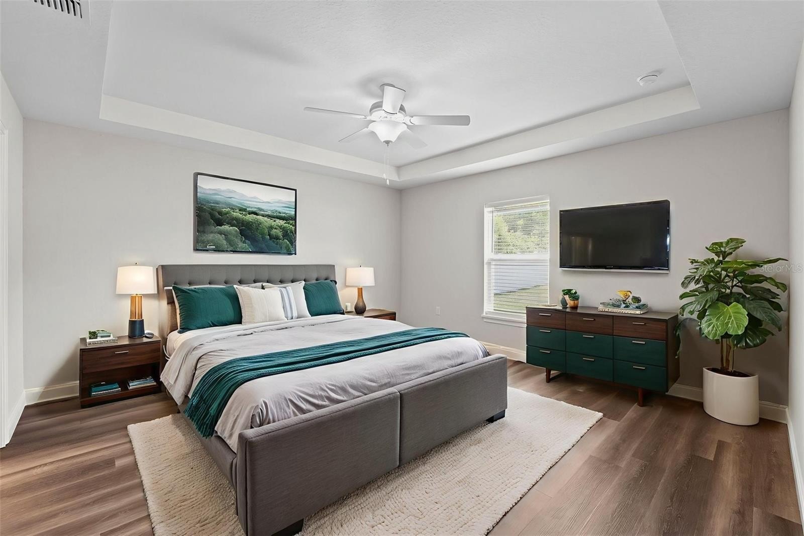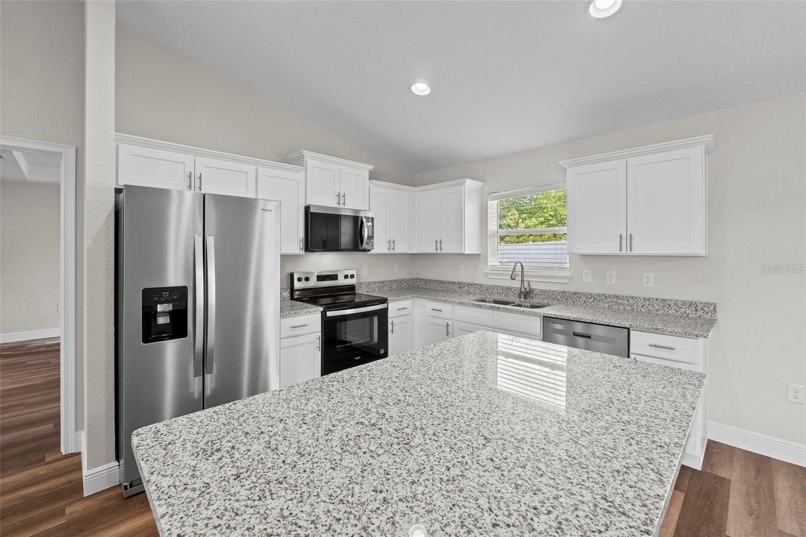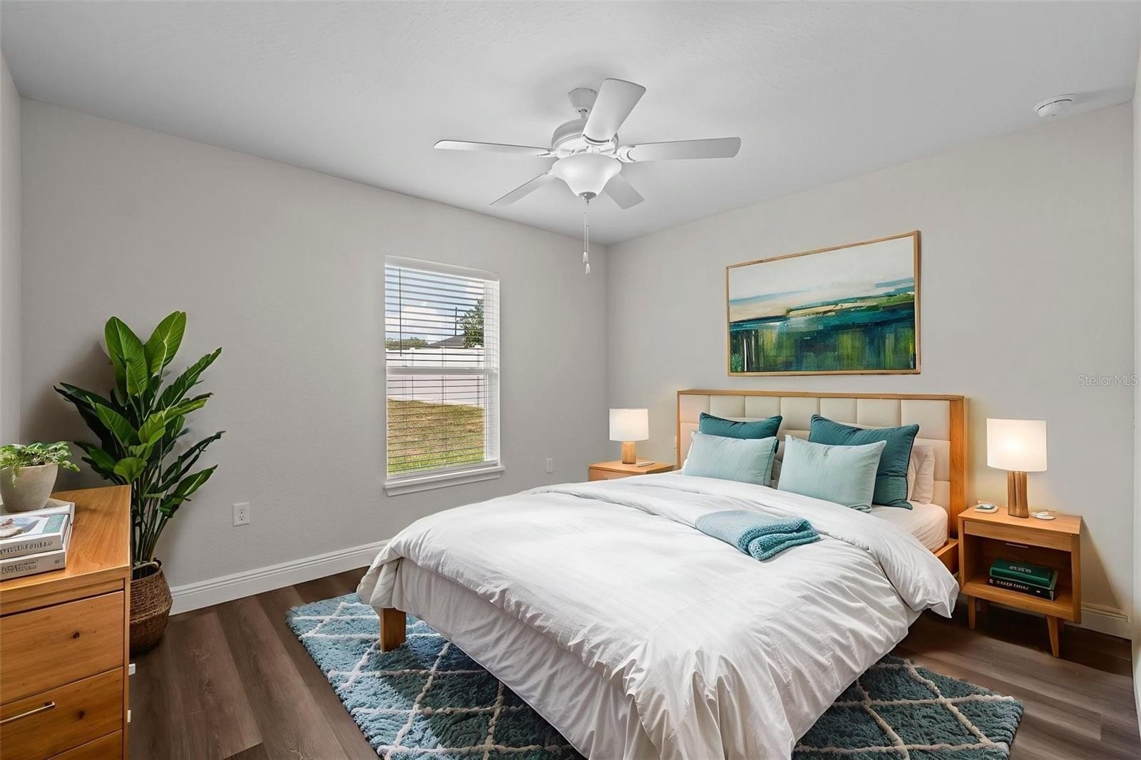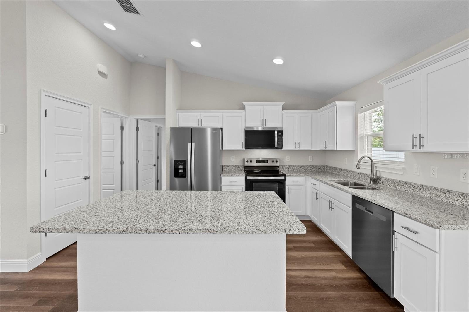 One or more photo(s) has been virtually staged. Under Construction. Fully Fenced Yard! Scenic Lot! Special Financing Offer! Make this dream home yours with our limited-time special financing promotion! You could secure an interest rate as low as 5.5%! Experience the best of indoor and outdoor living in this exceptional home! Tucked away on a quiet street, this property offers a rare and coveted feature: a backyard that directly borders a scenic bike trail, with no rear neighbors. The private and serene backyard is fully fenced and a true sanctuary, perfect for relaxing or entertaining. Imagine stepping out your back gate for a morning ride, an evening stroll, or a quick jog without ever needing to get in your car. Step inside the home, where modern style meets comfortable living. High ceilings, an open-concept layout, and a thoughtful split-floor plan for spaciousness and effortless flow, durable and stylish luxury vinyl plank flooring throughout for easy care. The kitchen is the heart of the home, featuring soft-close cabinets, granite countertops, sleek stainless steel appliances, and recessed lighting. A generous kitchen island provides ample space for meal prep, a breakfast bar, or casual dining. Both the kitchen and bathrooms showcase high-quality granite countertops. Your private oasis awaits in the owner's retreat, elevated by tray ceilings, a large walk-in closet, and an en-suite bathroom. Enjoy the convenience of dual sinks and a walk-in shower with beautiful floor-to-ceiling wall tile. Beyond the interior, this home truly shines with its outdoor features. Relax and entertain in the screened, covered lanai, perfect for enjoying the Florida weather bug-free. This home is completely turnkey with included ceiling fans, blinds, and a garage door opener. Plus, an indoor laundry room adds to your everyday convenience. Don't miss this opportunity to own a beautiful, turnkey home with an amazing rate! Call today for more information or to schedule a tour! Photos are of model home, actual home colors and orientation may vary.