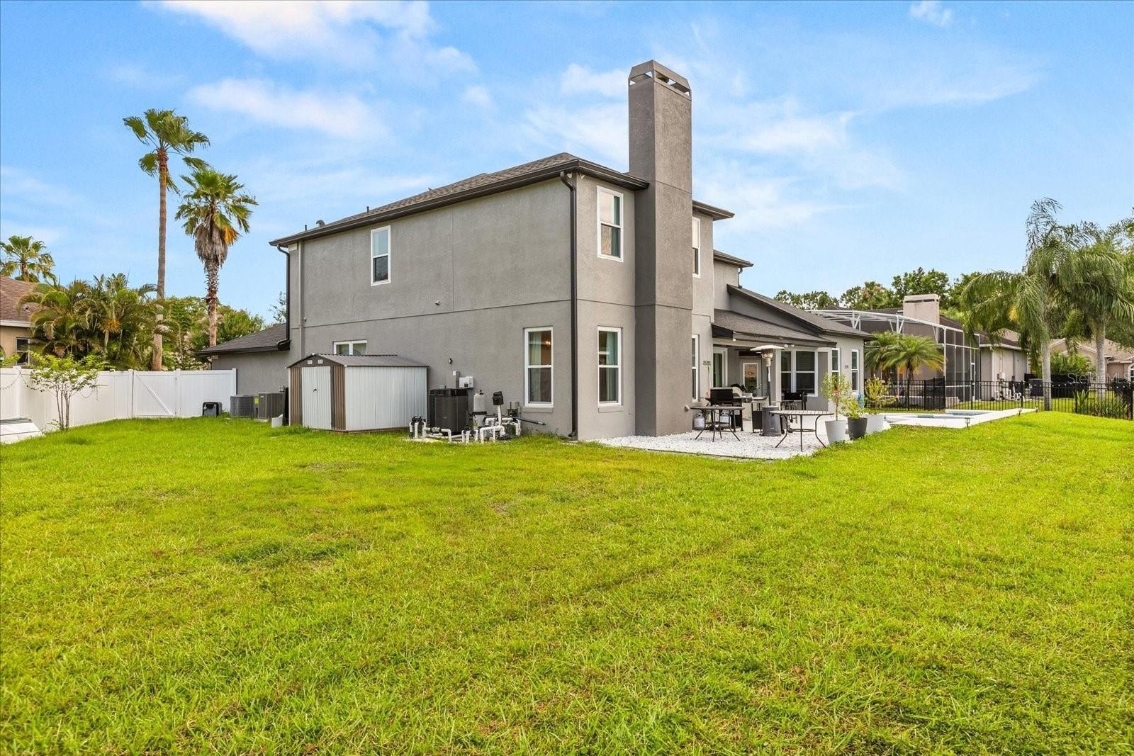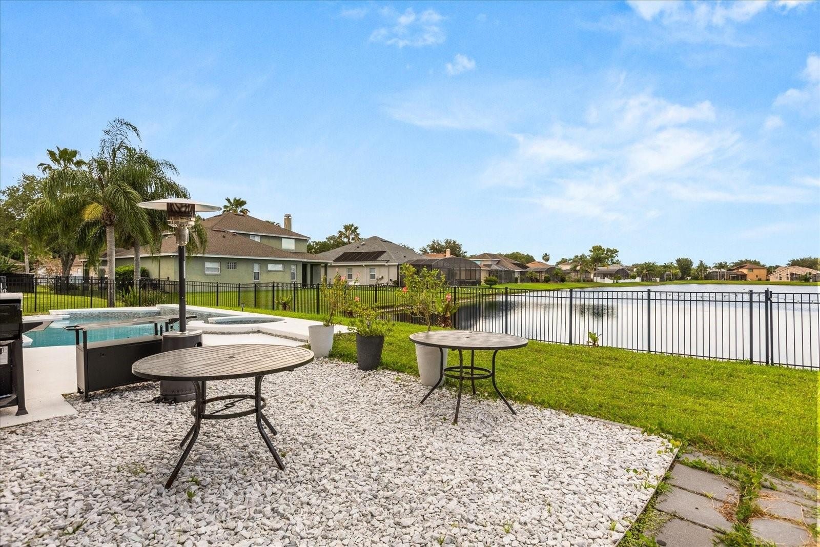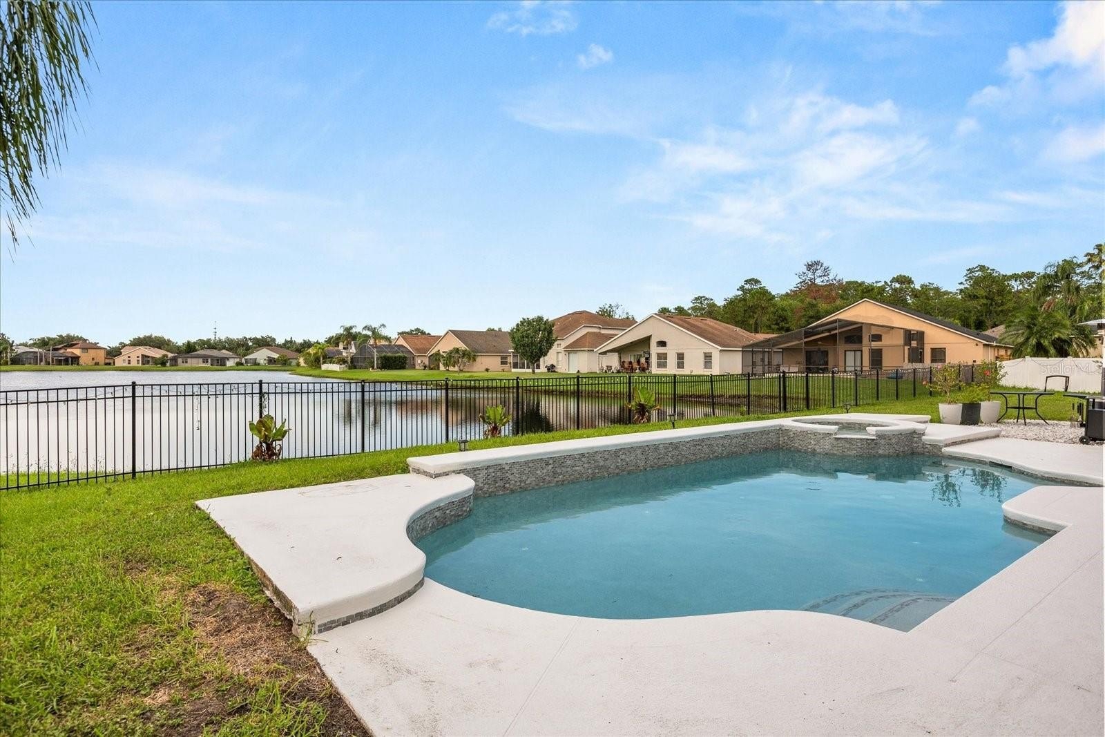 Built in 2000, this stunning single-family residence boasts a modern renovation completed in 2021, with a NEWER ROOF (2021), WINDOWS (2022), WATER HEATER (2021), POOL WATER HEATER (2024), WATER FILTERING SYSTEM (2021), and AC units from 2021 and 2024, ensuring peace of mind and energy efficiency. The fully fenced backyard features an oversized pool with a spa overlooking tranquil water views, complemented by a covered lanai that is perfect for outdoor dining and evening sunsets. The extended driveway (2024), a new shed (2025), and a freshly painted kitchen with hardware enhance its appeal, along with a new laundry room and a versatile bonus room in the garage (2025).