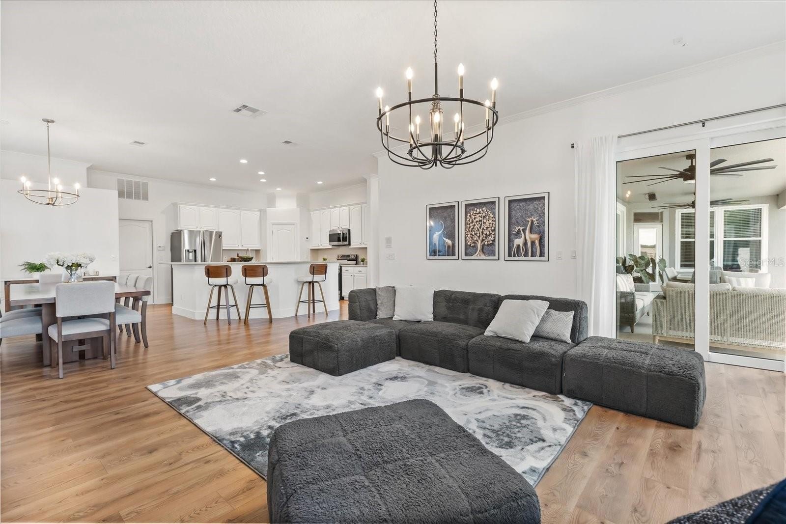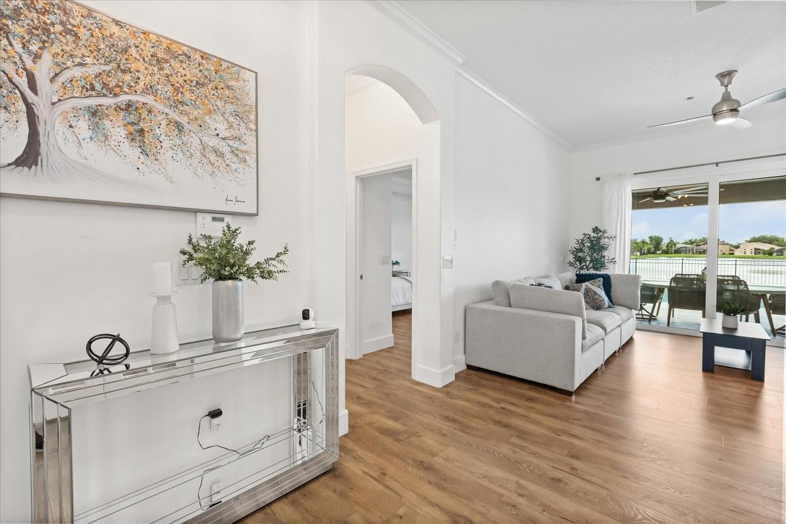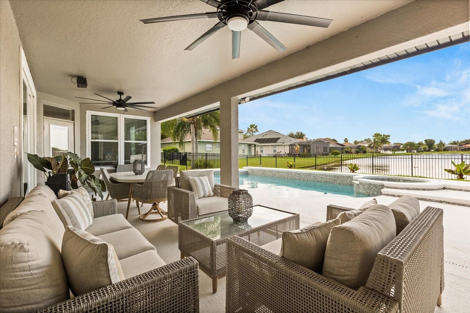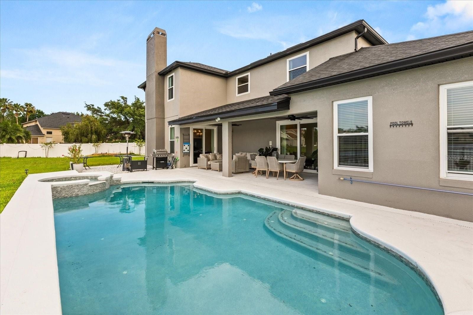 Built in 2000, this stunning single-family residence boasts a modern renovation completed in 2021, with a NEWER ROOF (2021), WINDOWS (2022), WATER HEATER (2021), POOL WATER HEATER (2024), WATER FILTERING SYSTEM (2021), and AC units from 2021 and 2024, ensuring peace of mind and energy efficiency. The fully fenced backyard features an oversized pool with a spa overlooking tranquil water views, complemented by a covered lanai that is perfect for outdoor dining and evening sunsets. The extended driveway (2024), a new shed (2025), and a freshly painted kitchen with hardware enhance its appeal, along with a new laundry room and a versatile bonus room in the garage (2025).
