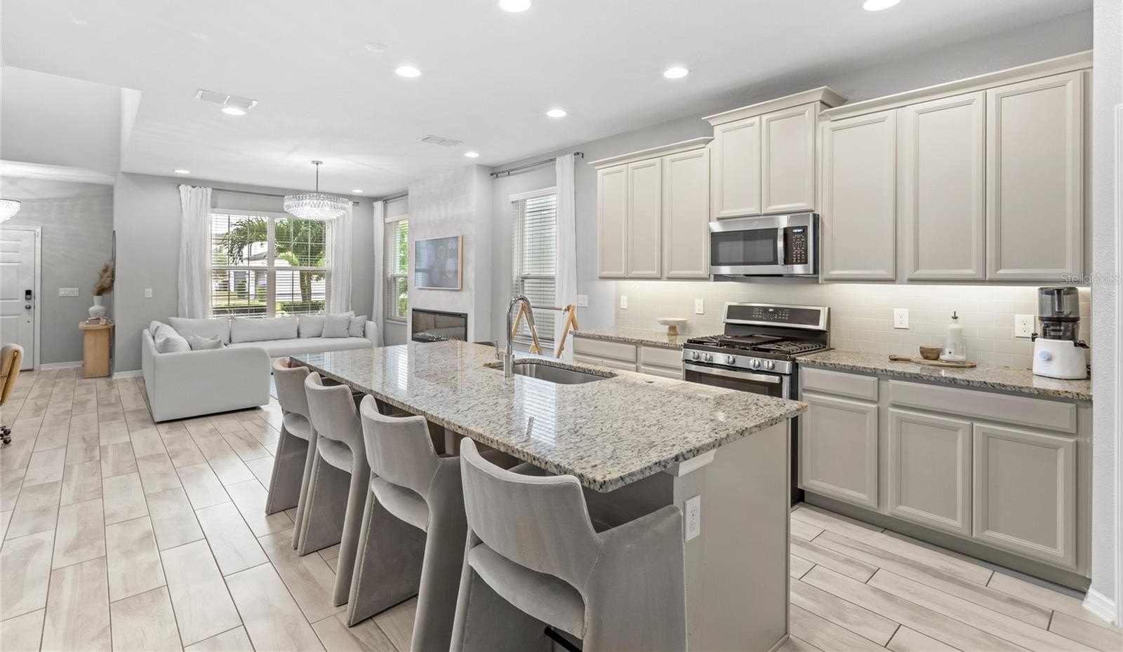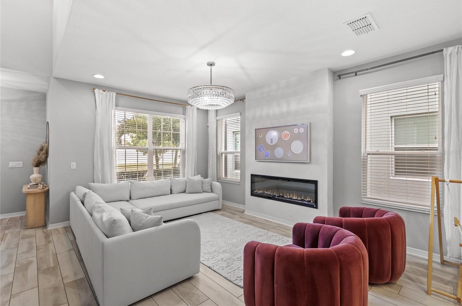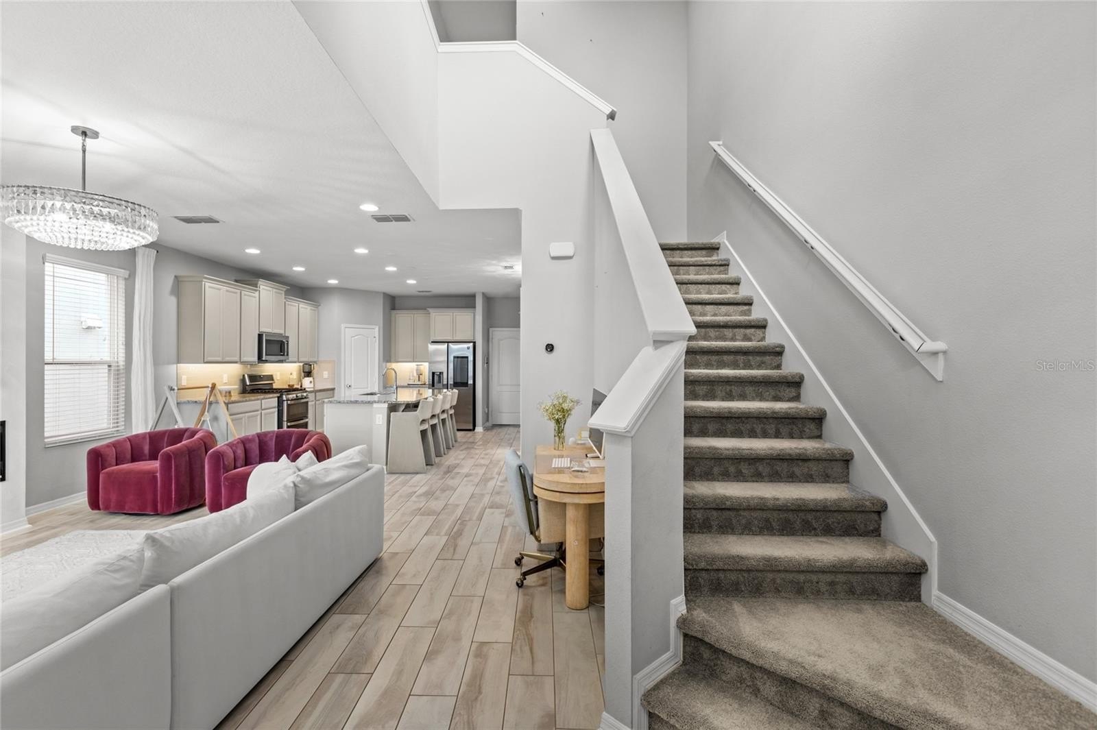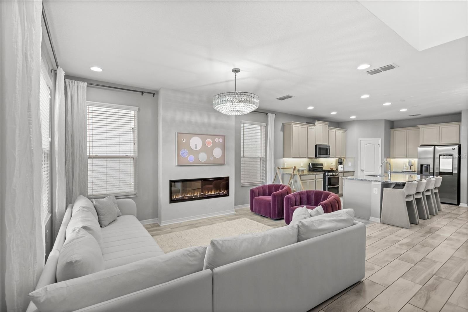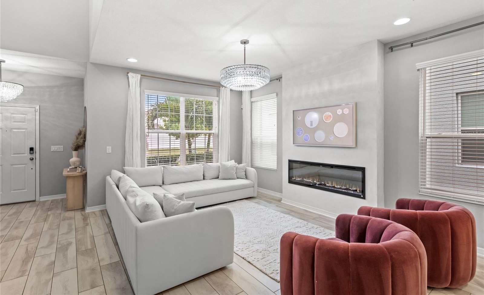 Step into effortless style, smart design, and next-level convenience with this exceptionally maintained 2020 Baldwin floorplan by M/I Homes, located in the sought-after Encore at Ovation community of Horizon West/Winter Garden. This 3-bedroom, 2.5-bath home blends high-end finishes with full smart home integration — including smart appliances, thermostat, doorbell, and security — giving you comfort and control from anywhere. The open-concept living space showcases quartz countertops, stainless steel appliances, designer lighting, and a custom built-in electric fireplace that adds just the right touch of glam. Upstairs, the spacious primary suite features a large walk-in closet and a generous bathroom, while two additional bedrooms, an upstairs laundry room, and a two-car garage add function to the style. Whether you're a first-time buyer, simplifying your lifestyle, or seeking a stylish second home near Disney, this one checks every box. Zoned for top-rated schools and just 7 minutes to Disney and 40 to MCO, it’s luxury made easy — and surprisingly affordable.