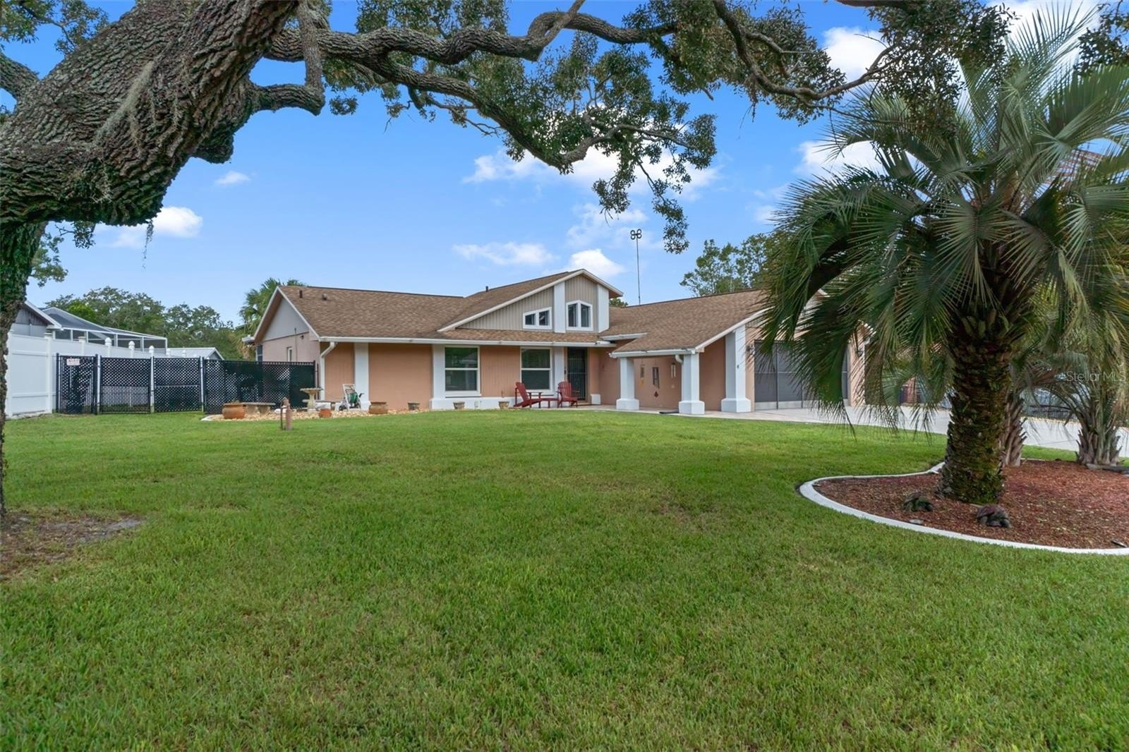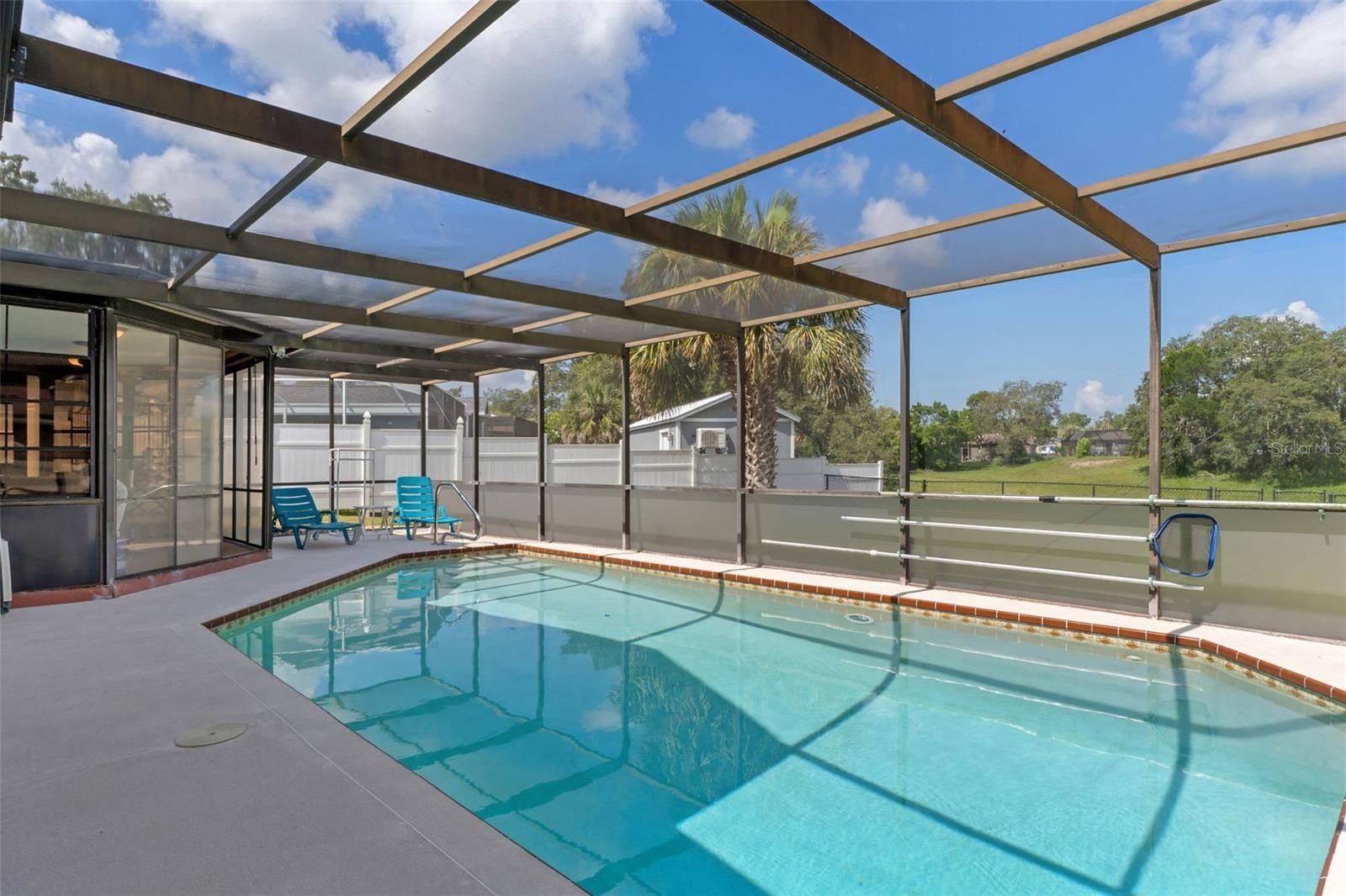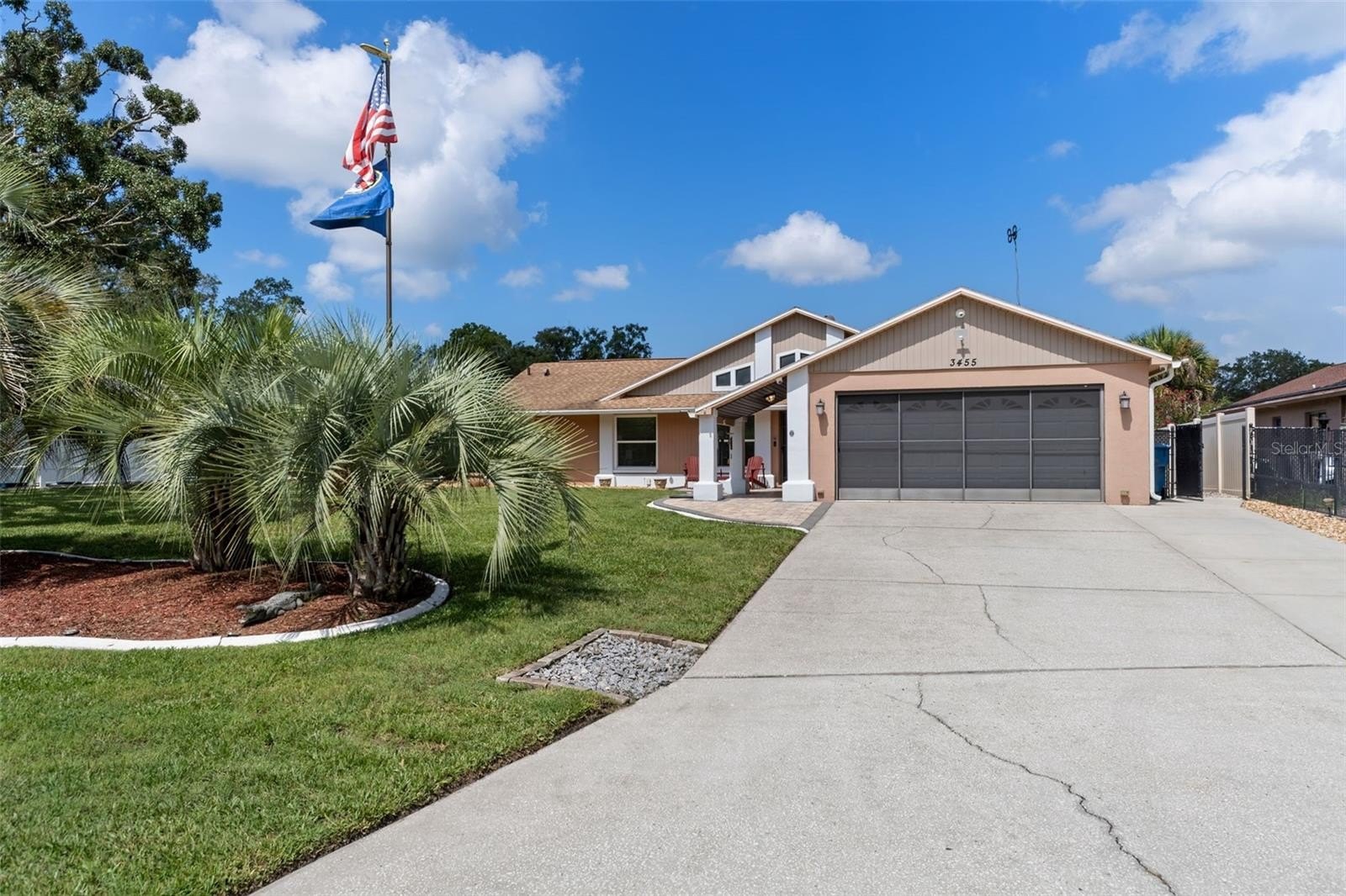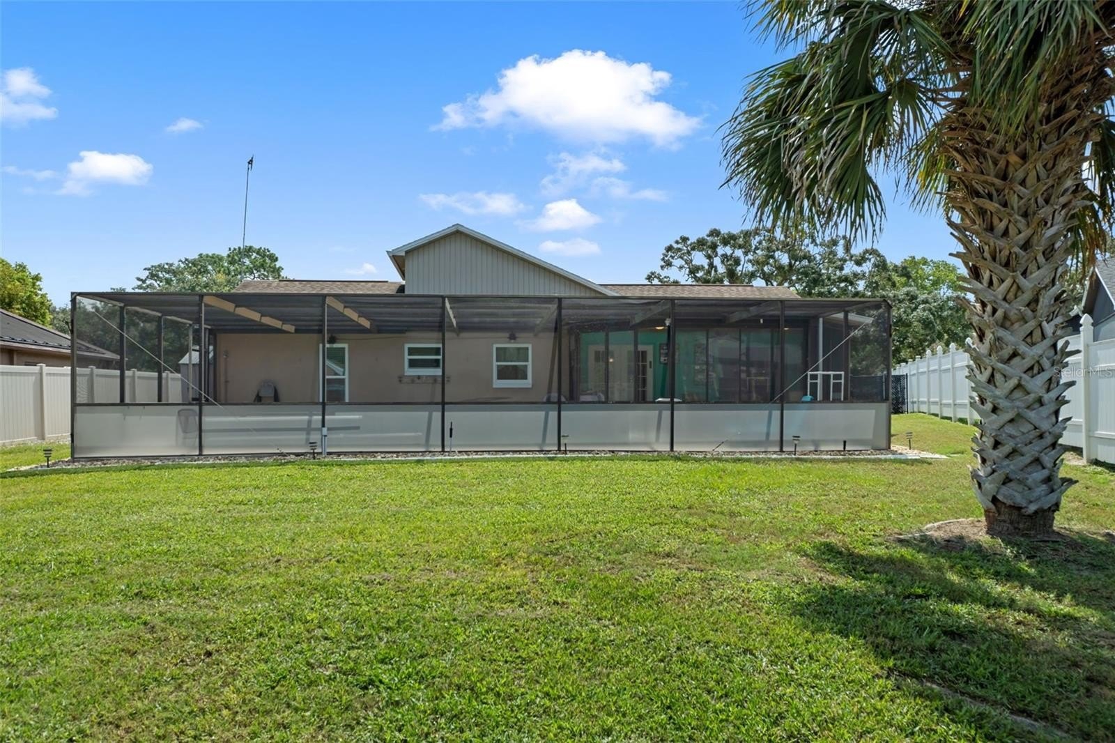 Welcome to this stunning and meticulously maintained home in the heart of Spring Hill! Perfectly situated near local amenities. Set on over a quarter of an acre, this residence offers the ideal blend of comfort, convenience, and upgrades that make it truly move-in ready. Step inside the inviting 14-foot foyer and be greeted by natural light pouring through transom windows, soaring cathedral ceilings, and elegant touches such as wainscoting and chair railing throughout the living and dining rooms. The spacious 20x11 living room flows effortlessly into the formal dining area, highlighted by French doors that open to the enclosed rear lanai—perfect for entertaining. The kitchen is a showstopper, featuring granite countertops, subway tile backsplash, stainless steel appliances, LED lighting, and an eat-in breakfast bar. The split bedroom layout ensures privacy for all. The 17x12 master suite boasts private sliders to the lanai, a walk-in closet with attic access, a linen closet, and a relaxing en-suite bath with a tub/shower combo. Two additional guest bedrooms and a well-appointed guest bath provide ample comfort for family and visitors alike. Outside, discover your personal retreat! The breathtaking yard is fully fenced, complete with a mapped irrigation system, rock-style landscaping for easy maintenance, and a widened driveway. Spend your days lounging in the 28x14 screened, saltwater pool with Diamond Brite finish or rinsing off in the outdoor shower. The no-build area behind the home provides extra privacy, while the stone-accented mailbox and paver details add curb appeal. Practicality meets peace of mind with major updates including HVAC (2020), roof (2016), and low-E dual pane windows (2019). The 20x22 garage features a screened overhead door, workshop area, and convenient service entry. Two sheds—one with electric—offer even more storage. This home is the complete package: modern upgrades, spacious design, outdoor living at its finest, and unbeatable location. Don't miss your chance to own this Spring Hill gem!