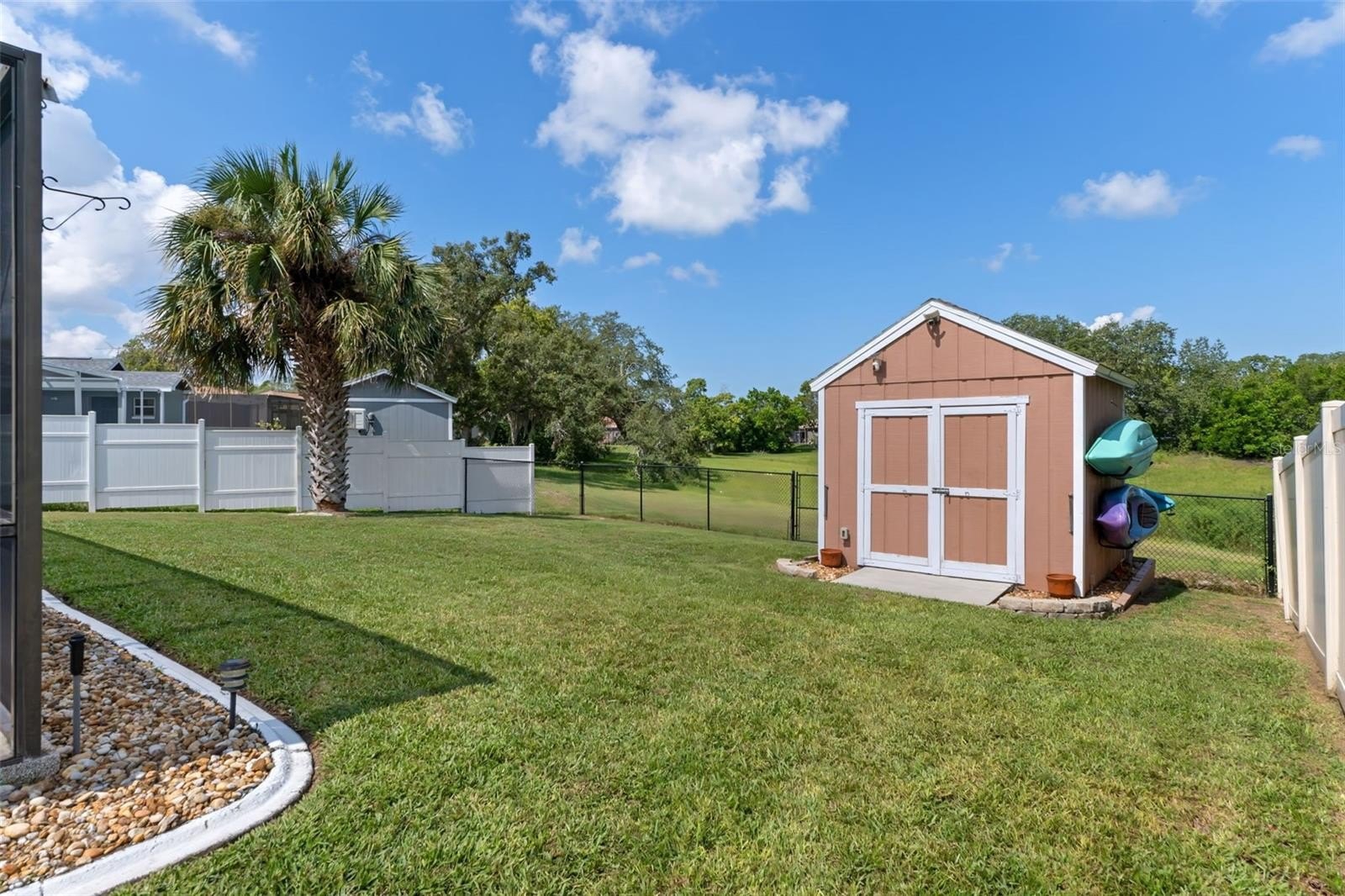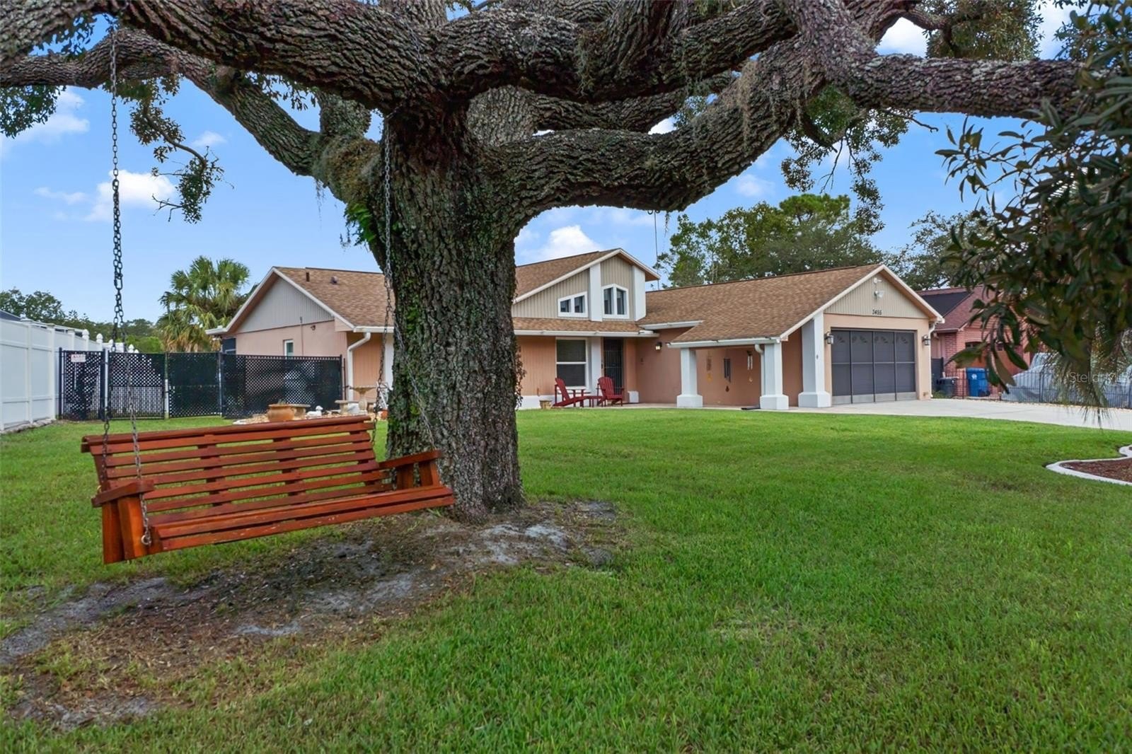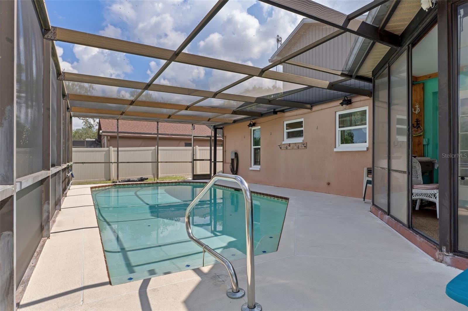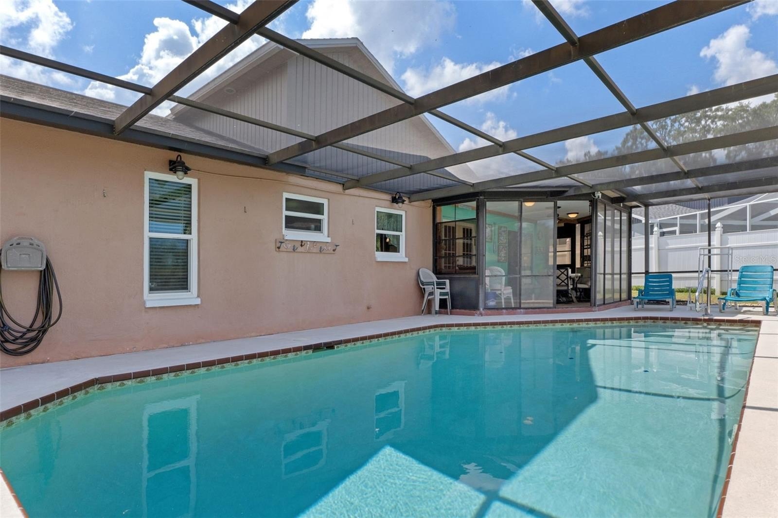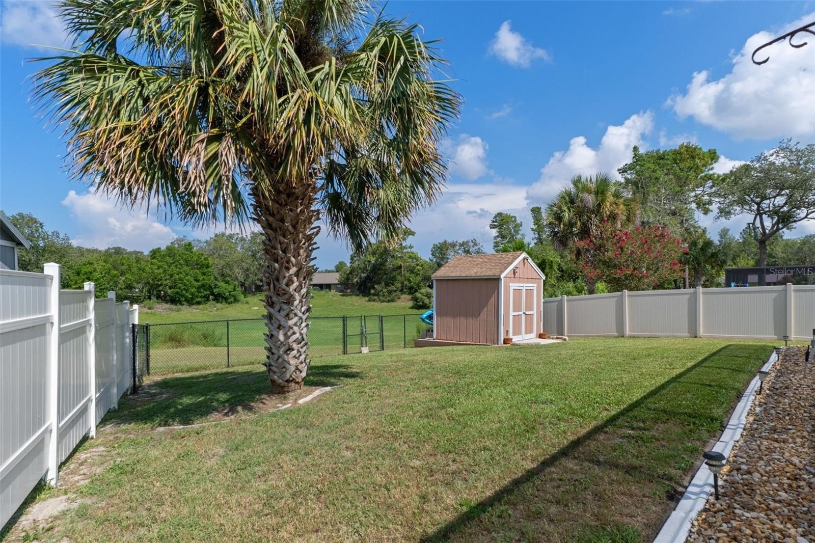 Welcome to this stunning and meticulously maintained home in the heart of Spring Hill! Perfectly situated near local amenities. Set on over a quarter of an acre, this residence offers the ideal blend of comfort, convenience, and upgrades that make it truly move-in ready. Step inside the inviting 14-foot foyer and be greeted by natural light pouring through transom windows, soaring cathedral ceilings, and elegant touches such as wainscoting and chair railing throughout the living and dining rooms. The spacious 20x11 living room flows effortlessly into the formal dining area, highlighted by French doors that open to the enclosed rear lanai—perfect for entertaining. The kitchen is a showstopper, featuring granite countertops, subway tile backsplash, stainless steel appliances, LED lighting, and an eat-in breakfast bar. The split bedroom layout ensures privacy for all. The 17x12 master suite boasts private sliders to the lanai, a walk-in closet with attic access, a linen closet, and a relaxing en-suite bath with a tub/shower combo. Two additional guest bedrooms and a well-appointed guest bath provide ample comfort for family and visitors alike. Outside, discover your personal retreat! The breathtaking yard is fully fenced, complete with a mapped irrigation system, rock-style landscaping for easy maintenance, and a widened driveway. Spend your days lounging in the 28x14 screened, saltwater pool with Diamond Brite finish or rinsing off in the outdoor shower. The no-build area behind the home provides extra privacy, while the stone-accented mailbox and paver details add curb appeal. Practicality meets peace of mind with major updates including HVAC (2020), roof (2016), and low-E dual pane windows (2019). The 20x22 garage features a screened overhead door, workshop area, and convenient service entry. Two sheds—one with electric—offer even more storage. This home is the complete package: modern upgrades, spacious design, outdoor living at its finest, and unbeatable location. Don't miss your chance to own this Spring Hill gem!