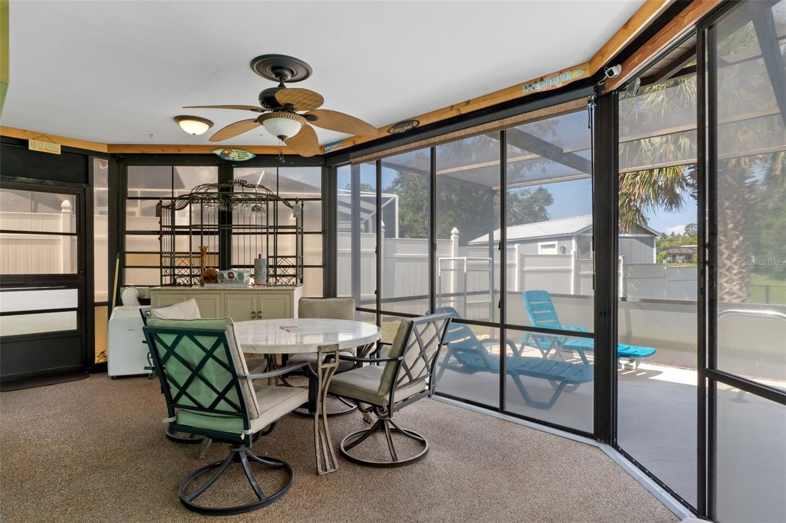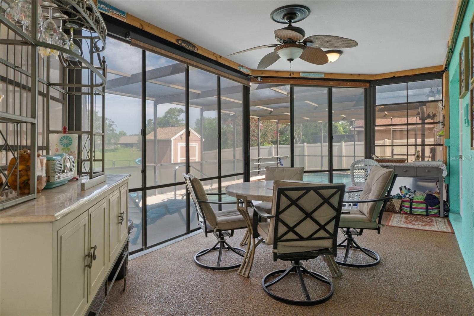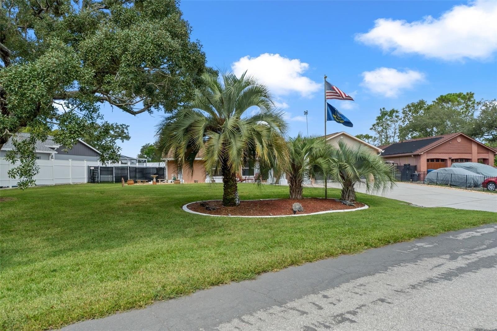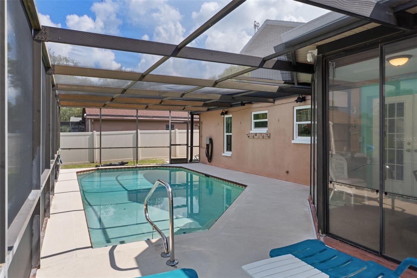 Welcome to this stunning and meticulously maintained home in the heart of Spring Hill! Perfectly situated near local amenities. Set on over a quarter of an acre, this residence offers the ideal blend of comfort, convenience, and upgrades that make it truly move-in ready. Step inside the inviting 14-foot foyer and be greeted by natural light pouring through transom windows, soaring cathedral ceilings, and elegant touches such as wainscoting and chair railing throughout the living and dining rooms. The spacious 20x11 living room flows effortlessly into the formal dining area, highlighted by French doors that open to the enclosed rear lanai—perfect for entertaining. The kitchen is a showstopper, featuring granite countertops, subway tile backsplash, stainless steel appliances, LED lighting, and an eat-in breakfast bar. The split bedroom layout ensures privacy for all. The 17x12 master suite boasts private sliders to the lanai, a walk-in closet with attic access, a linen closet, and a relaxing en-suite bath with a tub/shower combo. Two additional guest bedrooms and a well-appointed guest bath provide ample comfort for family and visitors alike. Outside, discover your personal retreat! The breathtaking yard is fully fenced, complete with a mapped irrigation system, rock-style landscaping for easy maintenance, and a widened driveway. Spend your days lounging in the 28x14 screened, saltwater pool with Diamond Brite finish or rinsing off in the outdoor shower. The no-build area behind the home provides extra privacy, while the stone-accented mailbox and paver details add curb appeal. Practicality meets peace of mind with major updates including HVAC (2020), roof (2016), and low-E dual pane windows (2019). The 20x22 garage features a screened overhead door, workshop area, and convenient service entry. Two sheds—one with electric—offer even more storage. This home is the complete package: modern upgrades, spacious design, outdoor living at its finest, and unbeatable location. Don't miss your chance to own this Spring Hill gem!