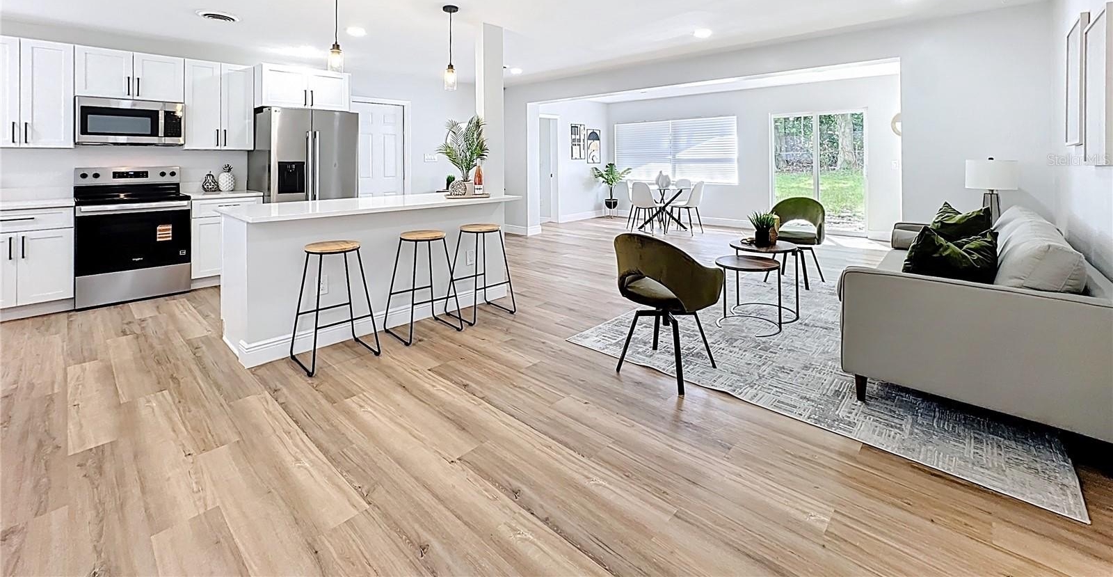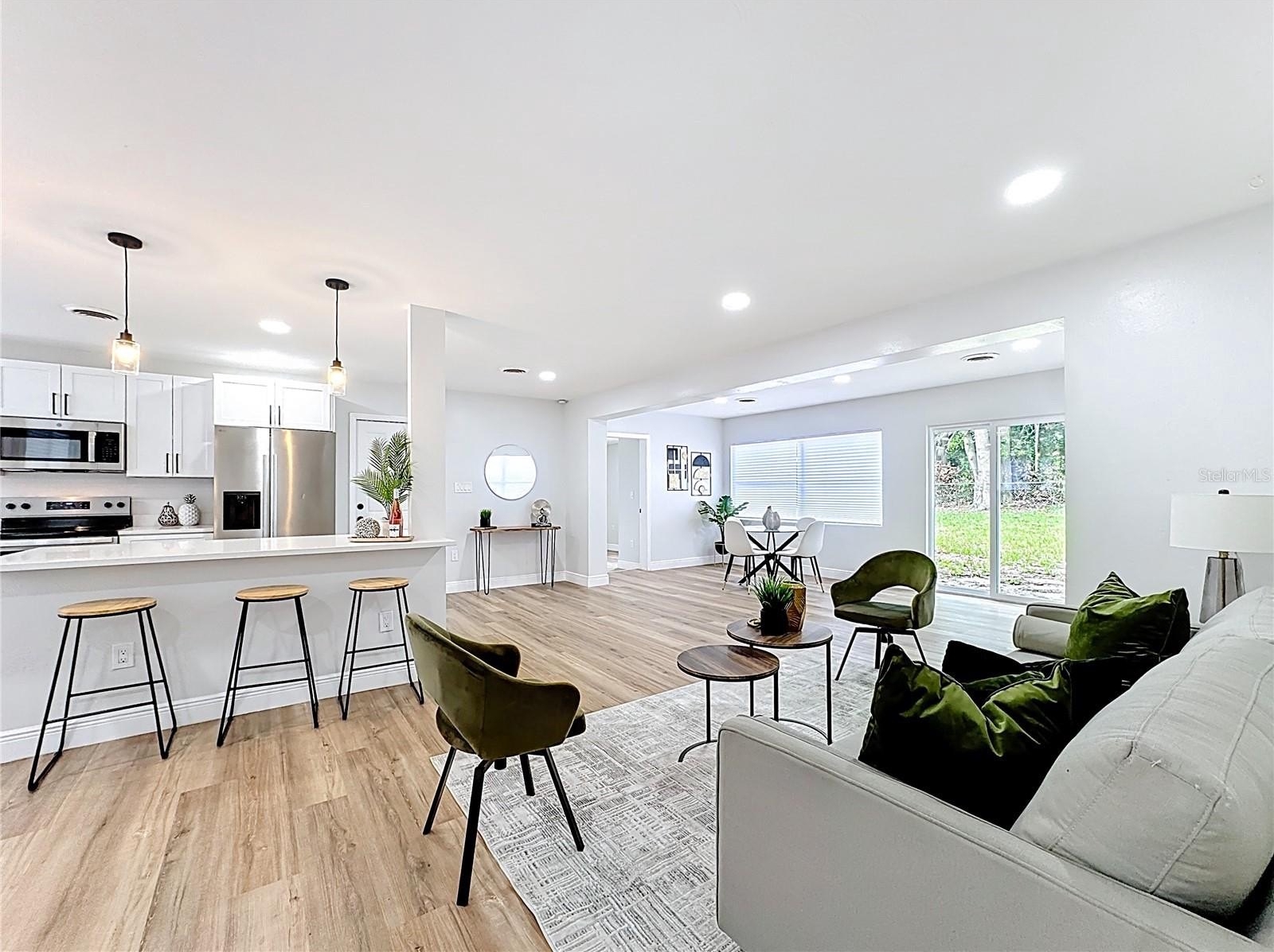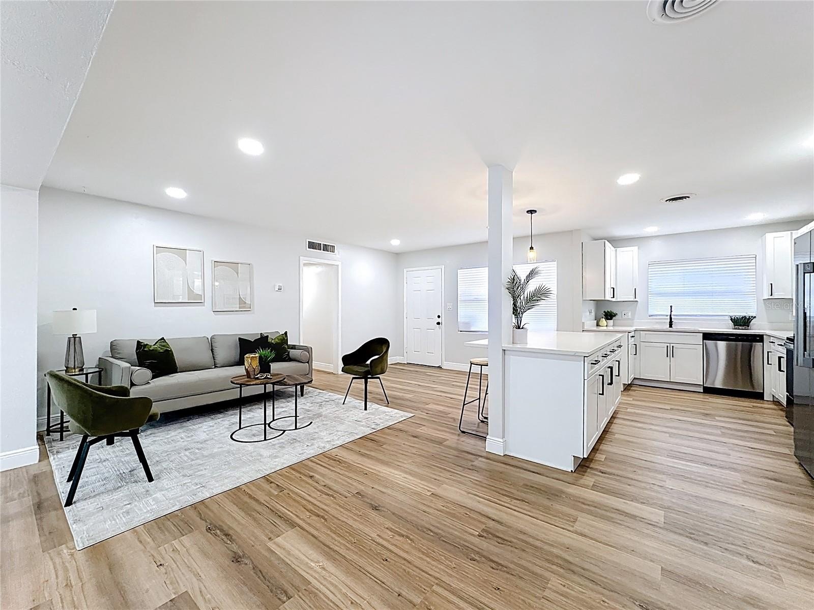 Owner Motivated! This stunning 4-bedroom, 2-bathroom block home has been completely updated. Enjoy peace of mind with a brand-new architectural roof, plus beautifully remodeled bathrooms, new floors with stylish baseboards, updated light fixtures, and a fresh coat of paint inside and out. The Chef’s kitchen features a brand-new cabinets, a large island, and stainless-steel appliances perfect for cooking and entertaining. This home offers a spacious, open layout filled with natural light. Step outside to a huge, private backyard, backing up to a scenic walk and bike trail. Plenty of room for outdoor living, gardening, or future additions. Move-in ready, with no HOA restrictions, simply enjoy the freedom. SELLER WILL ASSIST WITH SOME OF BUYERS CLOSING COST.