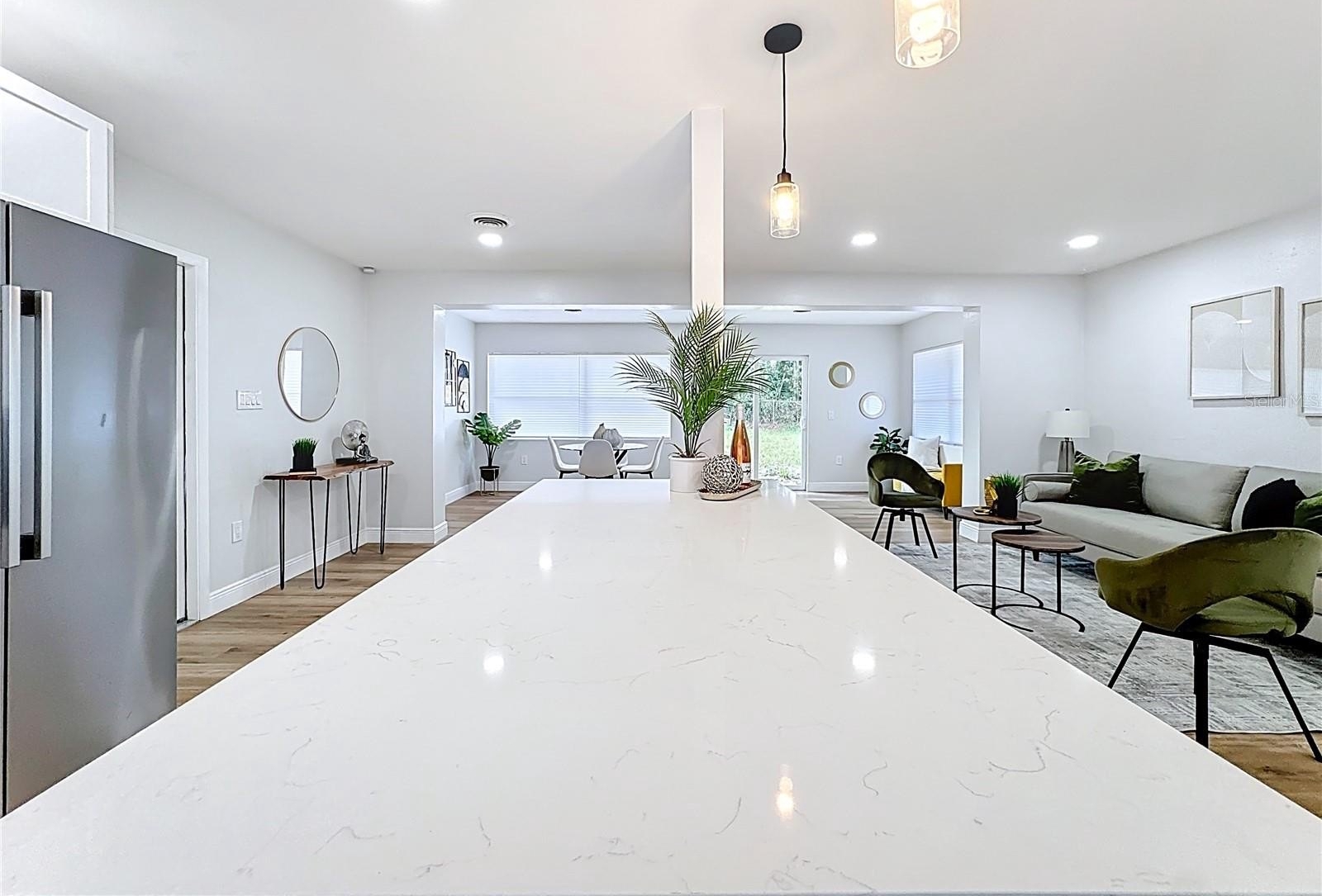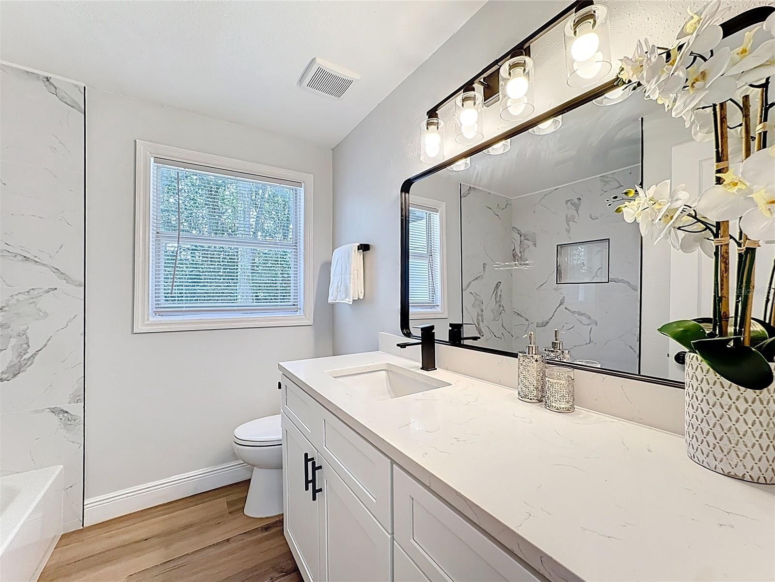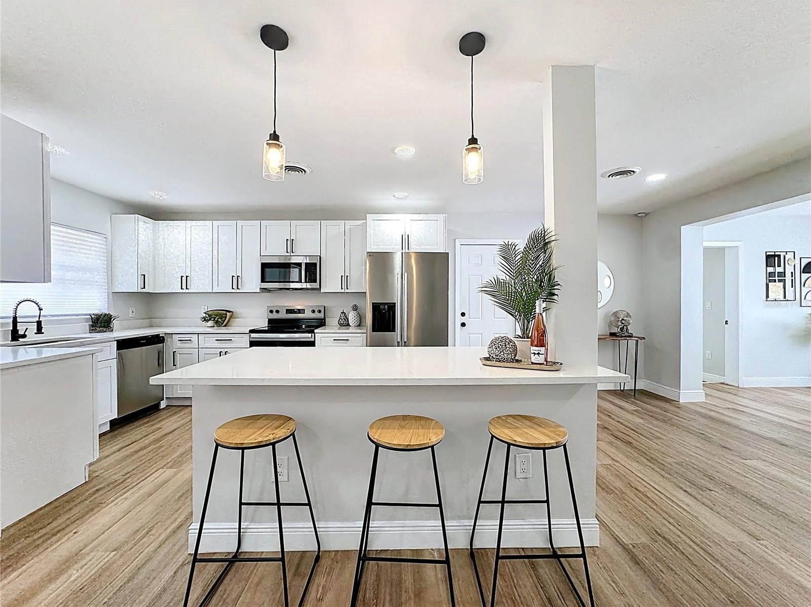 Owner Motivated! This stunning 4-bedroom, 2-bathroom block home has been completely updated. Enjoy peace of mind with a brand-new architectural roof, plus beautifully remodeled bathrooms, new floors with stylish baseboards, updated light fixtures, and a fresh coat of paint inside and out. The Chef’s kitchen features a brand-new cabinets, a large island, and stainless-steel appliances perfect for cooking and entertaining. This home offers a spacious, open layout filled with natural light. Step outside to a huge, private backyard, backing up to a scenic walk and bike trail. Plenty of room for outdoor living, gardening, or future additions. Move-in ready, with no HOA restrictions, simply enjoy the freedom. SELLER WILL ASSIST WITH SOME OF BUYERS CLOSING COST.