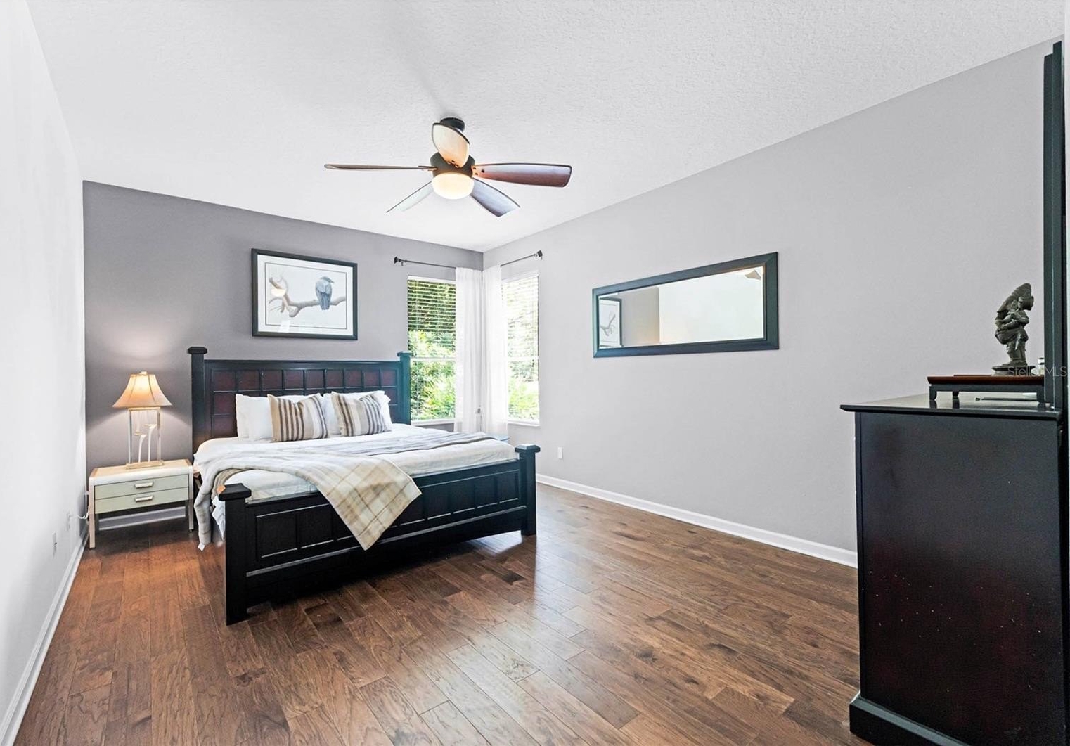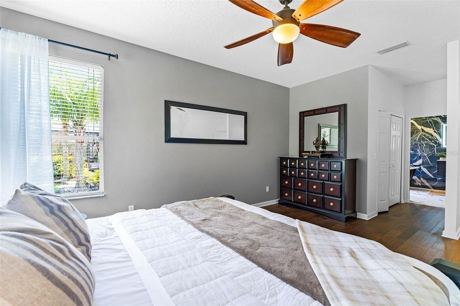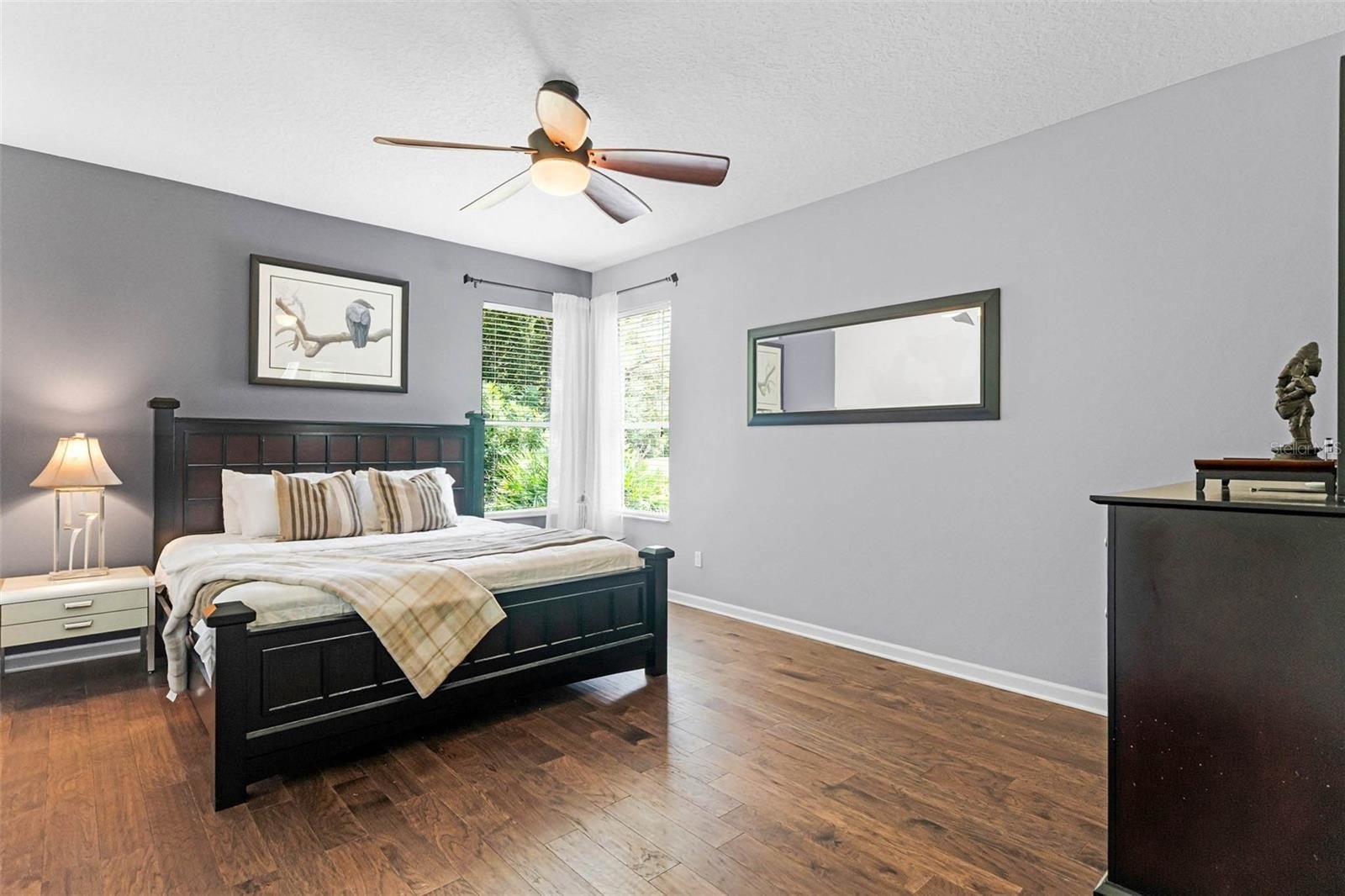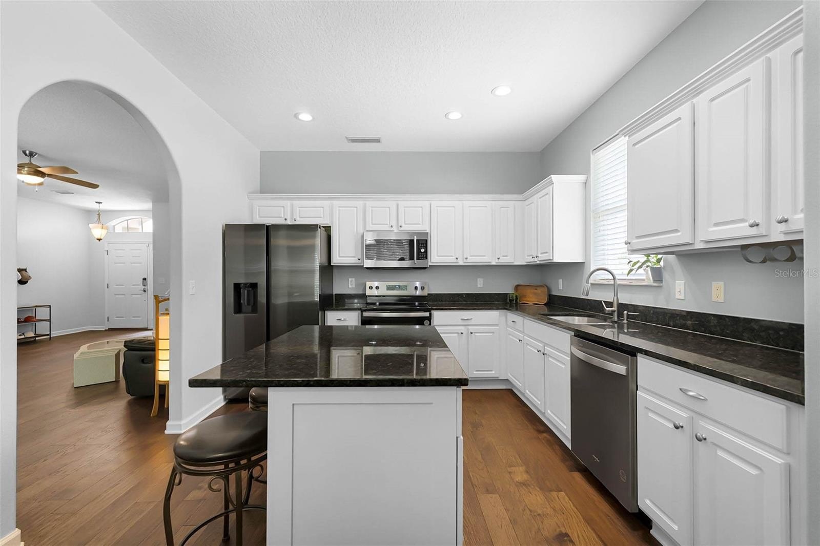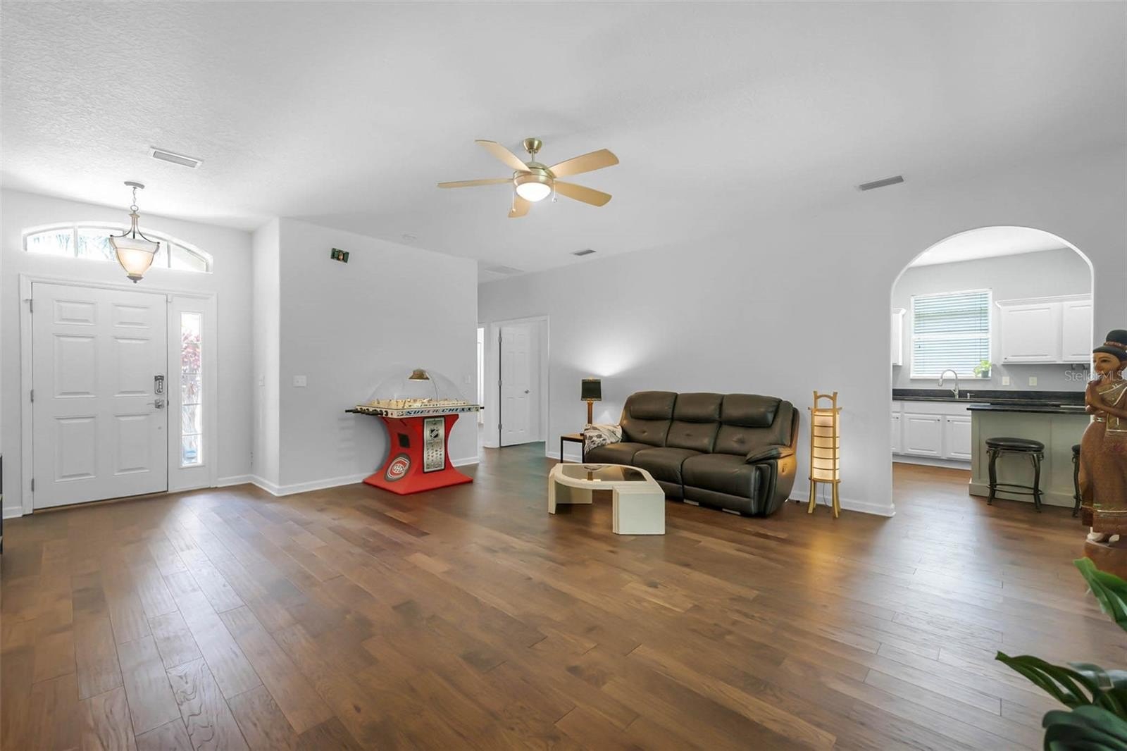 Stunning home in the exclusive community of LPGA International, ideally set on a premium lot along the 4th fairway of the Jones Course. This residence has been meticulously upgraded inside and out, offering a blend of modern style and everyday comfort. The open, split-bedroom floor plan features hardwood floors, custom closets, upgraded lighting, and ceiling fans. The chef's kitchen has been fully renovated with granite countertops, a custom island, and a pantry with a spice rack, soft-close cabinetry, and stainless steel appliances. The luxurious primary suite includes a spa-inspired bath with quartz vanity, clawfoot soaking tub, walk-in shower, and elegant finishes, while two additional bedrooms share a beautifully updated guest bath. The private backyard retreat has no rear neighbors—perfect for peaceful mornings with coffee while enjoying the scenic wooded and golf course views. Major system upgrades include a roof & gutters (2021), A/C (2022), and water heater (2021). Additional highlights include Hurricane shutters, a Ring doorbell, a keyless Schlage entry, an oversized garage with epoxy flooring, newer interior doors, and mature landscaping. Residents of LPGA International enjoy low HOA fees that include weekly lawn care and trimming, plus optional access to a world-class lifestyle. The Optional Club membership offers two championship courses designed by Rees Jones and Arthur Hills, along with a state-of-the-art clubhouse, restaurant, bar, saltwater pool, fitness center, and event space. Well-maintained, move-in ready, and motivated seller priced to sell, don't miss this opportunity! Call today to view this amazing home.