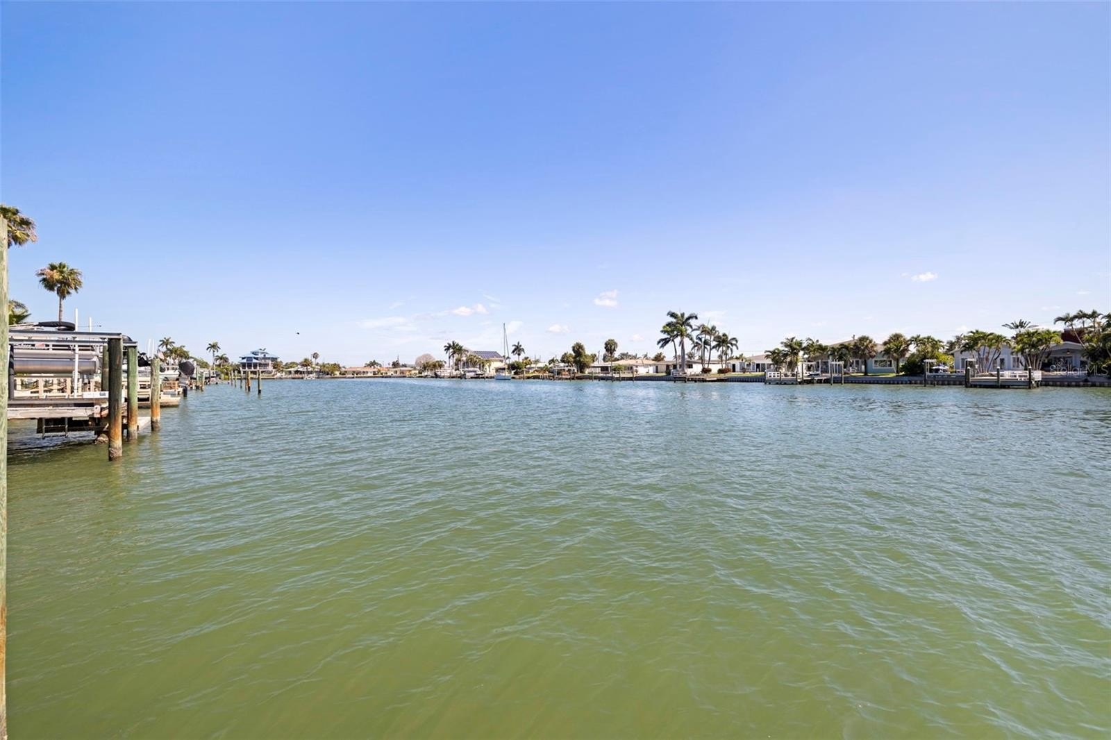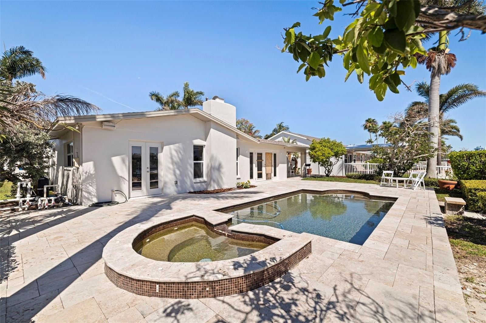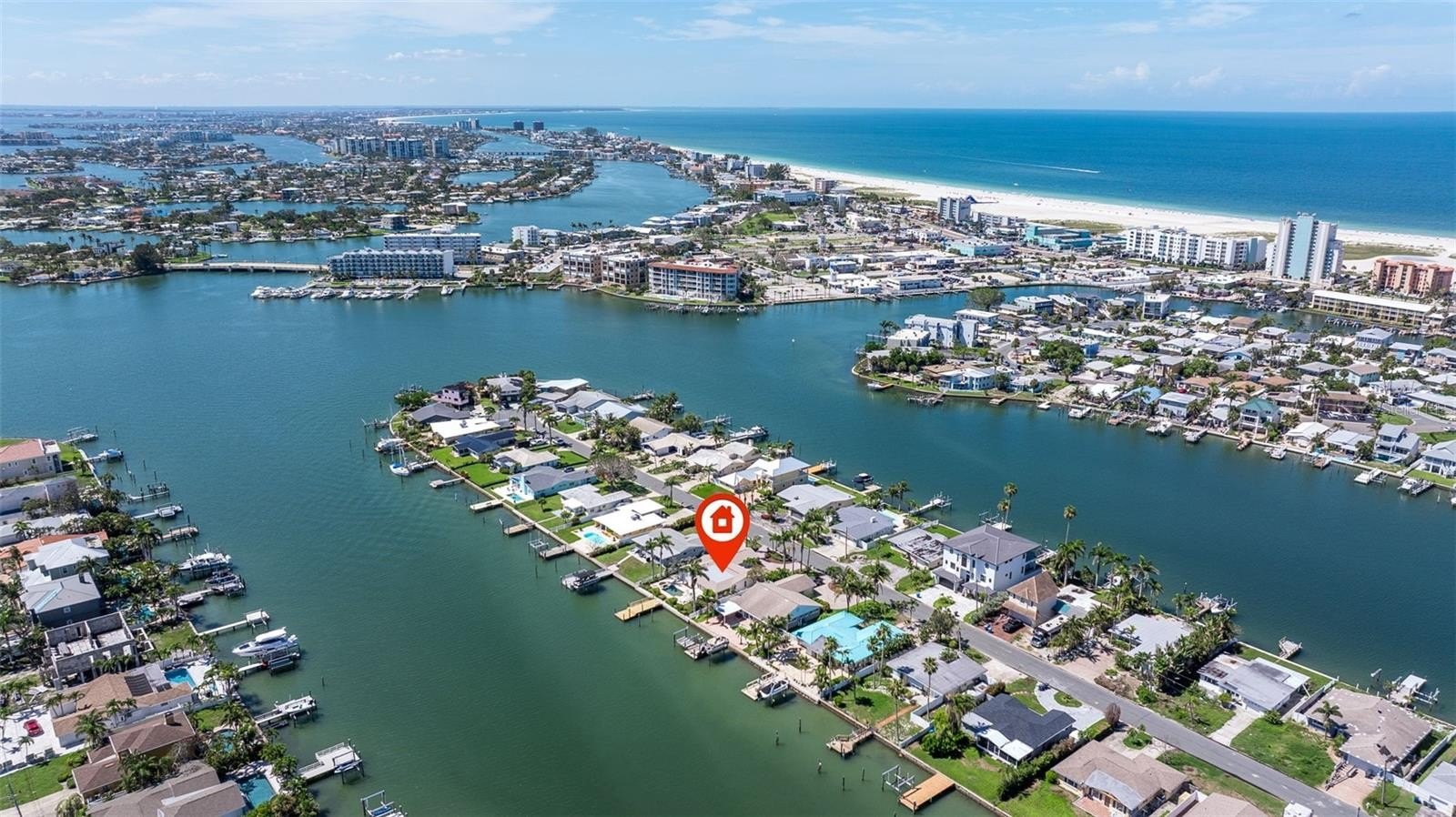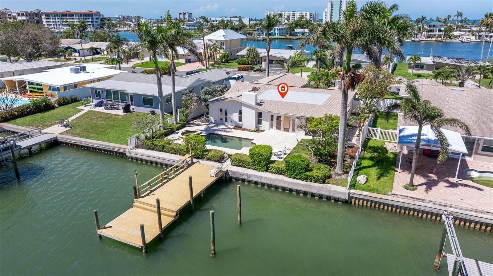 Welcome to this exceptional Isle of Palms waterfront residence, located in the charming community of Treasure Island. This stunningly renovated, 3-Bedroom, 2-Bathroom, 2-Car Garage, executive pool home with dock, is situated on an extra wide “sailboat water” canal with easy, immediate access to Boca Ciega Bay and the Gulf Of Mexico. As you enter through the gated private courtyard and the paired glass entry doors, an immediate feeling of comfortable elegance is apparent. The entry foyer is graced with waterfront views that bring a peaceful and light-filled ambiance to the open family living spaces. The large, open kitchen is at the center of the home, featuring expansive granite countertops and solid wood cabinets, and brand new stainless steel appliances. Generous storage is provided, and the entertaining area features comfortable bar seating for at least 3 -4 people. The spacious formal dining area boasts a tray ceiling and room for a large dining table, easily seating 8 guests. Glass french doors open from the dining area to the spacious covered lanai and pool deck and offer expansive views to the waterfront and beyond. The formal living room features an elegant gas fireplace. This residence is designed with a split floor plan with the two secondary bedrooms on one side of the home. This wing features a beautifully updated hall bathroom with a gorgeously tiled waterfall steam shower with frameless glass enclosure, and granite-topped floating vanity, servicing the secondary bedrooms as well as serving as a powder room for guest use. The two secondary bedrooms are generously sized with ample closet space and the secondary bedroom on the rear of the home features paired glass doors leading out to the sparkling pool and spa. There are lovely plantation shutters throughout the home offering privacy and a sophisticated look and feel. The very private and peaceful primary suite offers a tranquil retreat for the homeowner(s) including a spacious spa-like primary bathroom with vaulted ceiling, a deep Kohler soaking tub in which to relax away the stress of the day, a spacious walk-in shower with a frameless glass enclosure, and a modern vanity with granite top. The luxury of this residence extends to the lush and private outdoor living spaces of the covered lanai and the beautiful paver deck, surrounding the beautiful pebble-tec pool and spa which overlooks the tranquil waters of Boca Ciega Bay. The home is perfect for boaters as it offers a large private dock with wood decking and water and electrical service. The seawall has been replaced with PVC sheet pile and a very substantial concrete cap. The home’s roof was replaced in March of 2023 and the exterior was newly painted in August 2023. Let your cares fade as you relax poolside listening to the sounds of the breeze through the palms and watch the dolphins play in the canal. The pristine beaches and sparkling waters and sunsets of Treasure Island's world renown beaches and nightly sunsets are less than a 1/2 mile away.