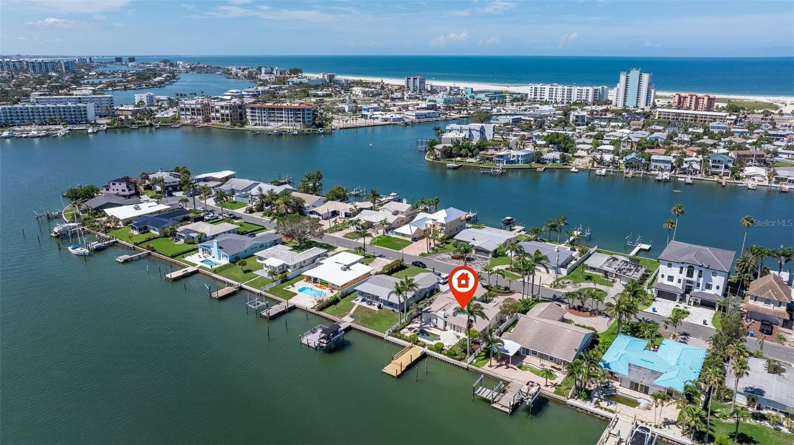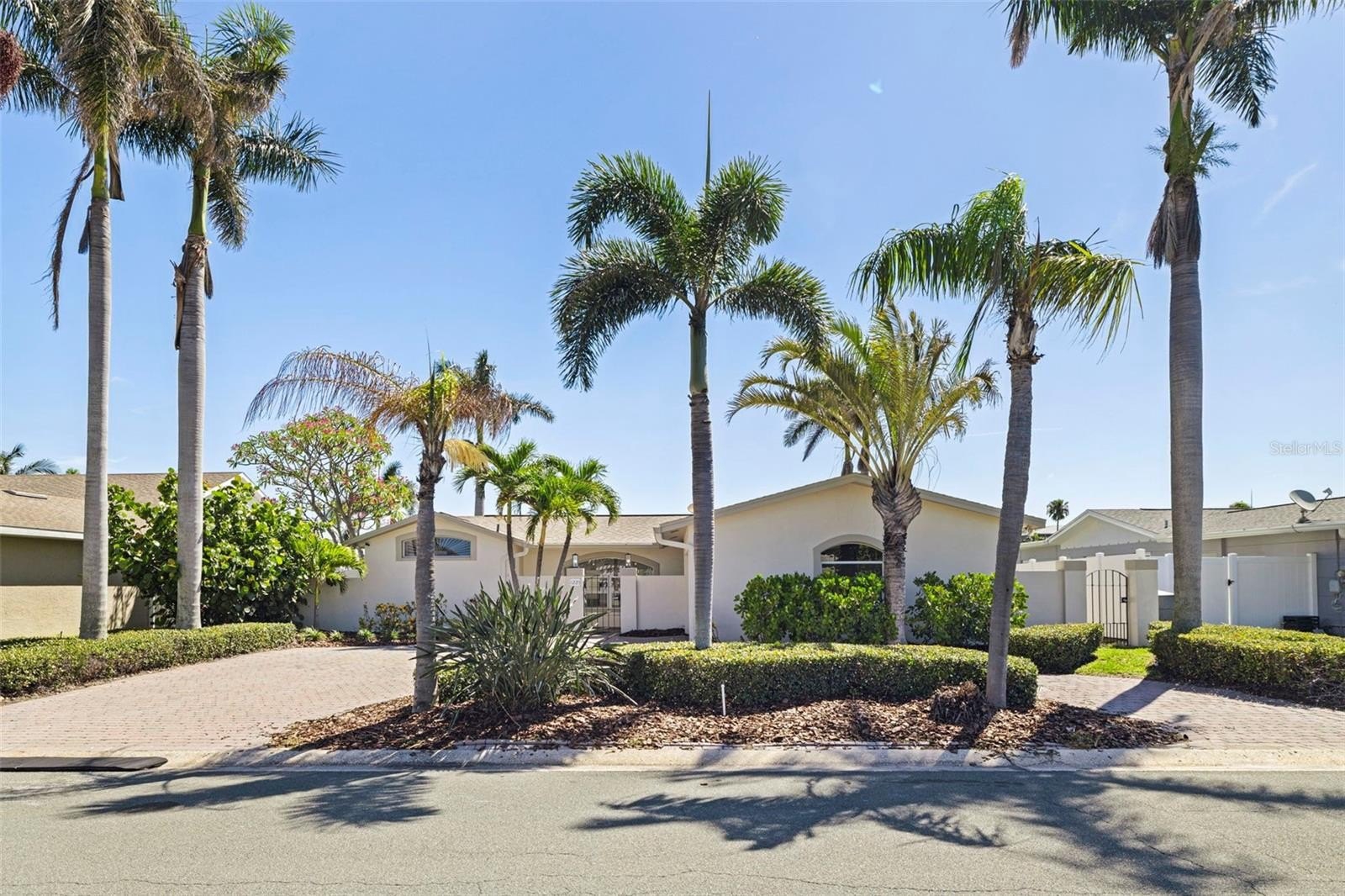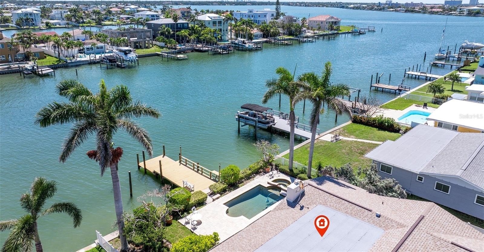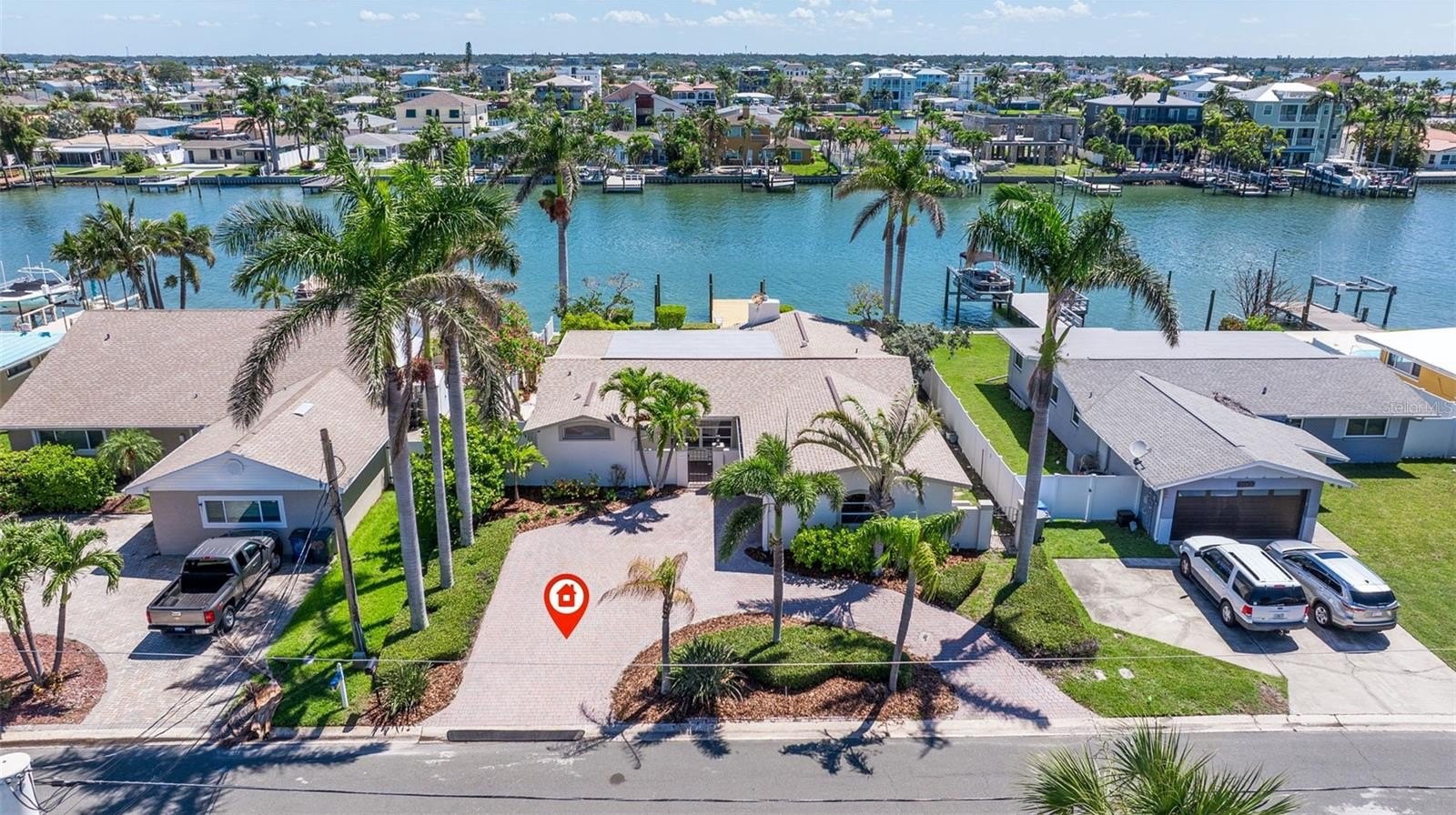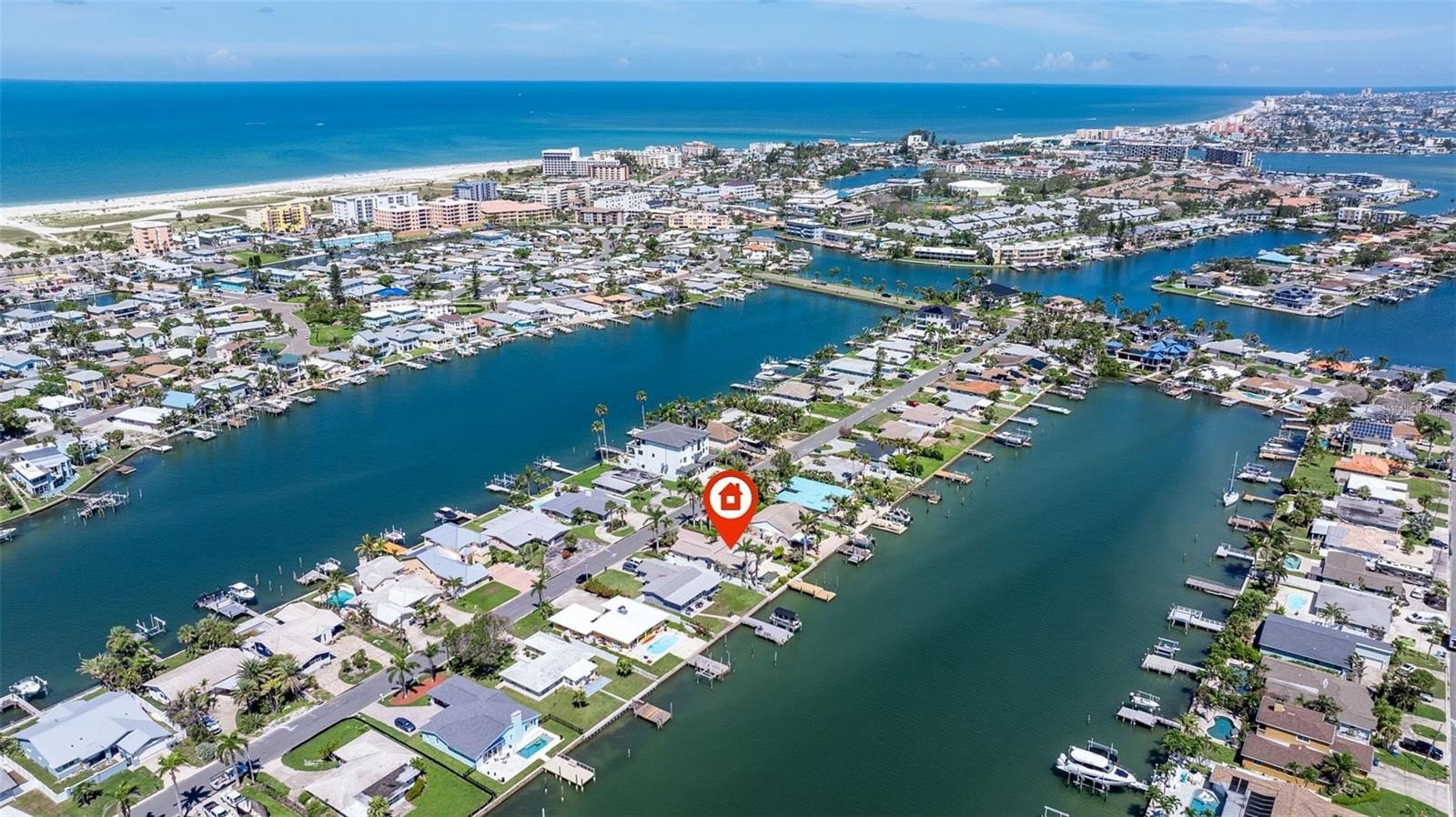 Welcome to this exceptional Isle of Palms waterfront residence, located in the charming community of Treasure Island. This stunningly renovated, 3-Bedroom, 2-Bathroom, 2-Car Garage, executive pool home with dock, is situated on an extra wide “sailboat water” canal with easy, immediate access to Boca Ciega Bay and the Gulf Of Mexico. As you enter through the gated private courtyard and the paired glass entry doors, an immediate feeling of comfortable elegance is apparent. The entry foyer is graced with waterfront views that bring a peaceful and light-filled ambiance to the open family living spaces. The large, open kitchen is at the center of the home, featuring expansive granite countertops and solid wood cabinets, and brand new stainless steel appliances. Generous storage is provided, and the entertaining area features comfortable bar seating for at least 3 -4 people. The spacious formal dining area boasts a tray ceiling and room for a large dining table, easily seating 8 guests. Glass french doors open from the dining area to the spacious covered lanai and pool deck and offer expansive views to the waterfront and beyond. The formal living room features an elegant gas fireplace. This residence is designed with a split floor plan with the two secondary bedrooms on one side of the home. This wing features a beautifully updated hall bathroom with a gorgeously tiled waterfall steam shower with frameless glass enclosure, and granite-topped floating vanity, servicing the secondary bedrooms as well as serving as a powder room for guest use. The two secondary bedrooms are generously sized with ample closet space and the secondary bedroom on the rear of the home features paired glass doors leading out to the sparkling pool and spa. There are lovely plantation shutters throughout the home offering privacy and a sophisticated look and feel. The very private and peaceful primary suite offers a tranquil retreat for the homeowner(s) including a spacious spa-like primary bathroom with vaulted ceiling, a deep Kohler soaking tub in which to relax away the stress of the day, a spacious walk-in shower with a frameless glass enclosure, and a modern vanity with granite top. The luxury of this residence extends to the lush and private outdoor living spaces of the covered lanai and the beautiful paver deck, surrounding the beautiful pebble-tec pool and spa which overlooks the tranquil waters of Boca Ciega Bay. The home is perfect for boaters as it offers a large private dock with wood decking and water and electrical service. The seawall has been replaced with PVC sheet pile and a very substantial concrete cap. The home’s roof was replaced in March of 2023 and the exterior was newly painted in August 2023. Let your cares fade as you relax poolside listening to the sounds of the breeze through the palms and watch the dolphins play in the canal. The pristine beaches and sparkling waters and sunsets of Treasure Island's world renown beaches and nightly sunsets are less than a 1/2 mile away.