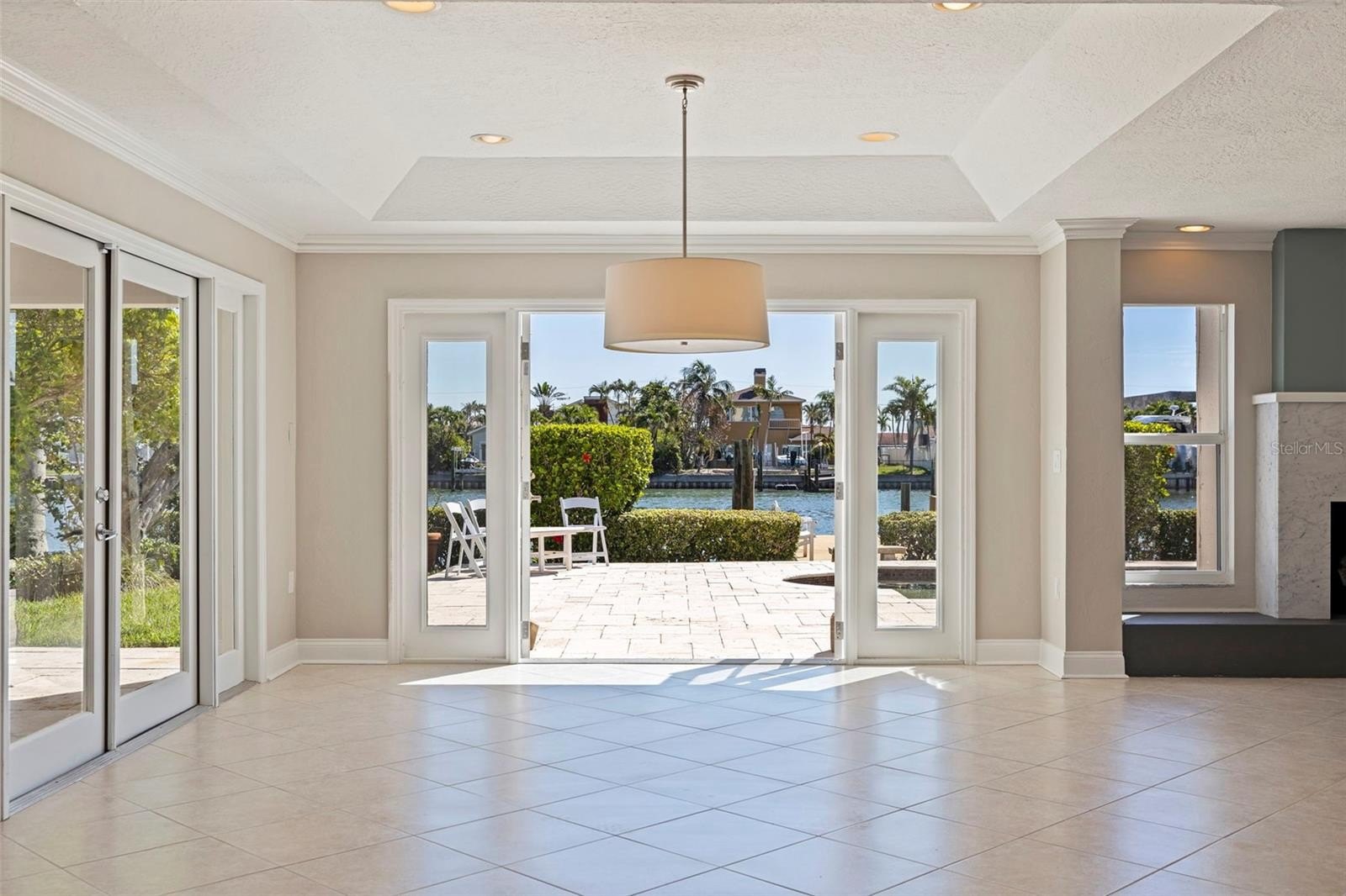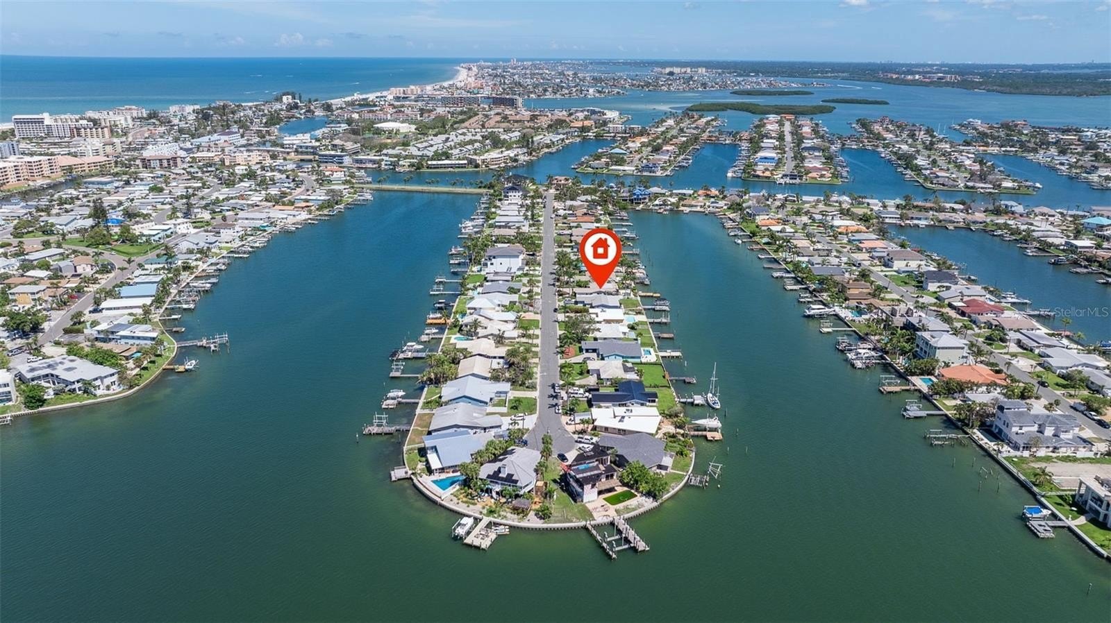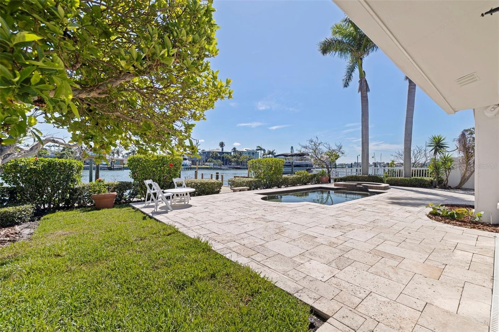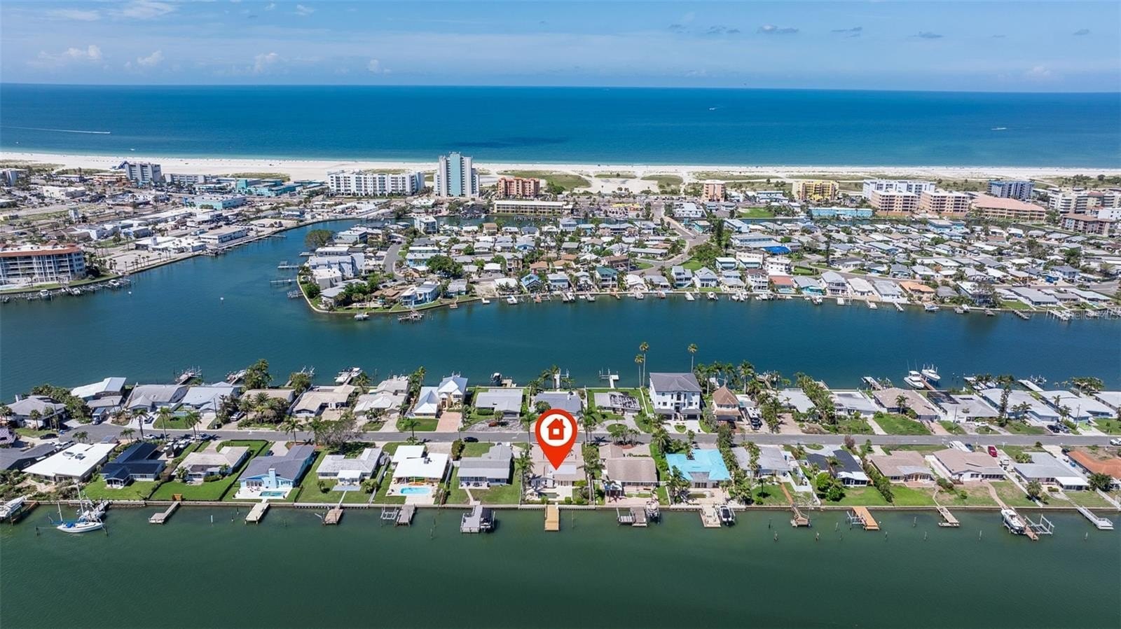 Welcome to this exceptional Isle of Palms waterfront residence, located in the charming community of Treasure Island. This stunningly renovated, 3-Bedroom, 2-Bathroom, 2-Car Garage, executive pool home with dock, is situated on an extra wide “sailboat water” canal with easy, immediate access to Boca Ciega Bay and the Gulf Of Mexico. As you enter through the gated private courtyard and the paired glass entry doors, an immediate feeling of comfortable elegance is apparent. The entry foyer is graced with waterfront views that bring a peaceful and light-filled ambiance to the open family living spaces. The large, open kitchen is at the center of the home, featuring expansive granite countertops and solid wood cabinets, and brand new stainless steel appliances. Generous storage is provided, and the entertaining area features comfortable bar seating for at least 3 -4 people. The spacious formal dining area boasts a tray ceiling and room for a large dining table, easily seating 8 guests. Glass french doors open from the dining area to the spacious covered lanai and pool deck and offer expansive views to the waterfront and beyond. The formal living room features an elegant gas fireplace. This residence is designed with a split floor plan with the two secondary bedrooms on one side of the home. This wing features a beautifully updated hall bathroom with a gorgeously tiled waterfall steam shower with frameless glass enclosure, and granite-topped floating vanity, servicing the secondary bedrooms as well as serving as a powder room for guest use. The two secondary bedrooms are generously sized with ample closet space and the secondary bedroom on the rear of the home features paired glass doors leading out to the sparkling pool and spa. There are lovely plantation shutters throughout the home offering privacy and a sophisticated look and feel. The very private and peaceful primary suite offers a tranquil retreat for the homeowner(s) including a spacious spa-like primary bathroom with vaulted ceiling, a deep Kohler soaking tub in which to relax away the stress of the day, a spacious walk-in shower with a frameless glass enclosure, and a modern vanity with granite top. The luxury of this residence extends to the lush and private outdoor living spaces of the covered lanai and the beautiful paver deck, surrounding the beautiful pebble-tec pool and spa which overlooks the tranquil waters of Boca Ciega Bay. The home is perfect for boaters as it offers a large private dock with wood decking and water and electrical service. The seawall has been replaced with PVC sheet pile and a very substantial concrete cap. The home’s roof was replaced in March of 2023 and the exterior was newly painted in August 2023. Let your cares fade as you relax poolside listening to the sounds of the breeze through the palms and watch the dolphins play in the canal. The pristine beaches and sparkling waters and sunsets of Treasure Island's world renown beaches and nightly sunsets are less than a 1/2 mile away.