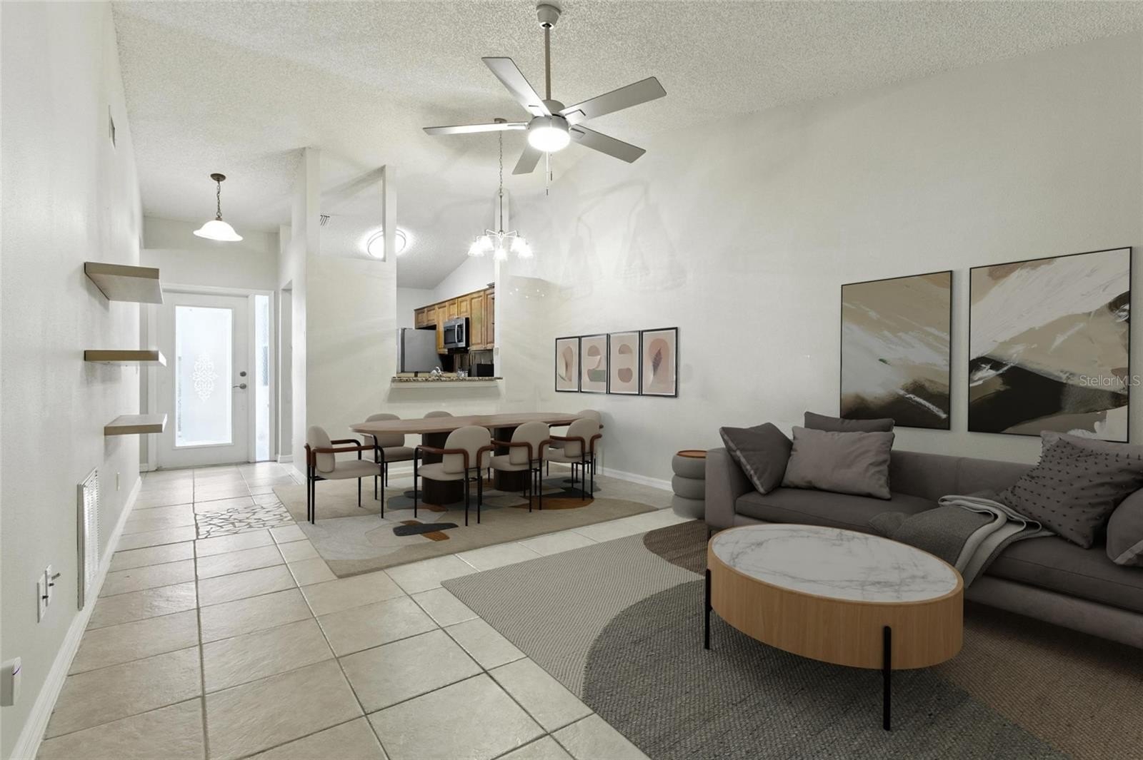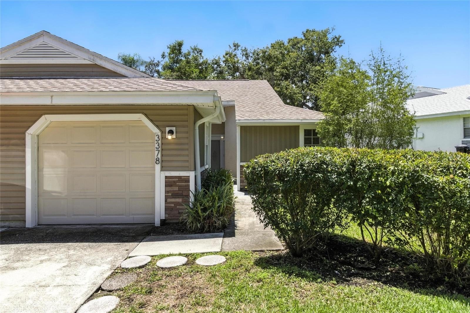 One or more photo(s) has been virtually staged. Grab this LOWEST-priced UPDATED & MOVE-IN READY 3bed/2bath/1car garage in Palm Harbor/Dunedin/Countryside areas with CATHEDRAL ceilings, TILE FLOORS throughout with SCREENED PORCH & community POOL in TOP-RATED SCHOOL DISTRICT (NOT IN A FLOOD ZONE). This villa in desirable Cloverplace has low monthly fees & is located on retention pond with no rear neighbors. WATER HEATER 2024, GUTTERS 2024, ROOF 2022, A/C 2021, INTERIOR PAINT/FANS/ LIGHTS 2025, MICROWAVE 2025, WASHER 2020. Kitchen has GRANITE TOPS, STAINLESS appliances and pass-thru. The primary suite offers a WALK-IN closet & EN-SUITE BATH with access to screened porch. The exterior of the home has also been enhanced with NEW siding & faux stack stone, providing a fresh & contemporary aesthetic. Conveniently located to grocery, shopping, restaurants, beaches & Tampa Airport. Hurry before it's gone!