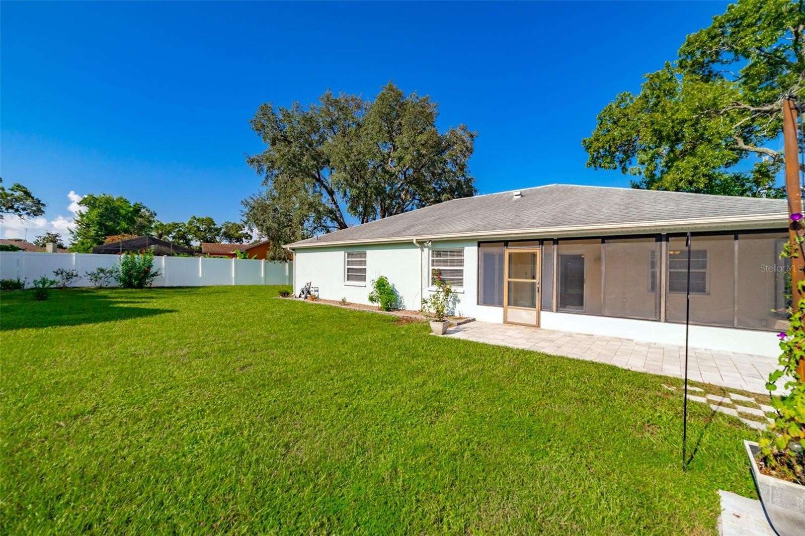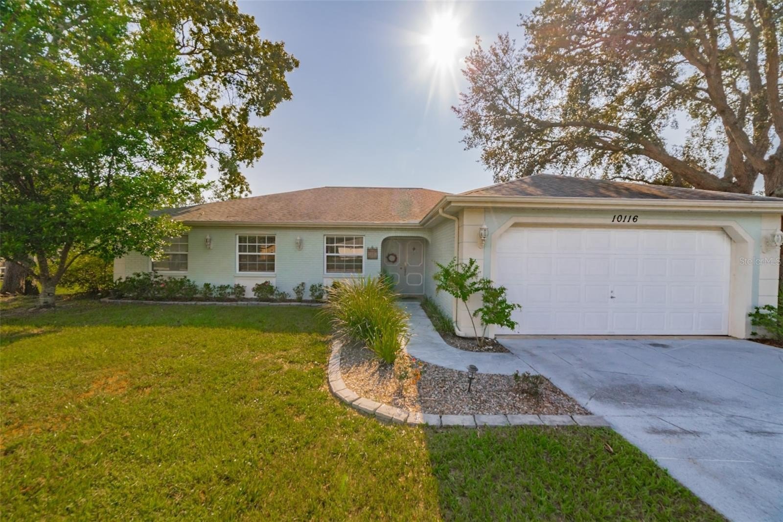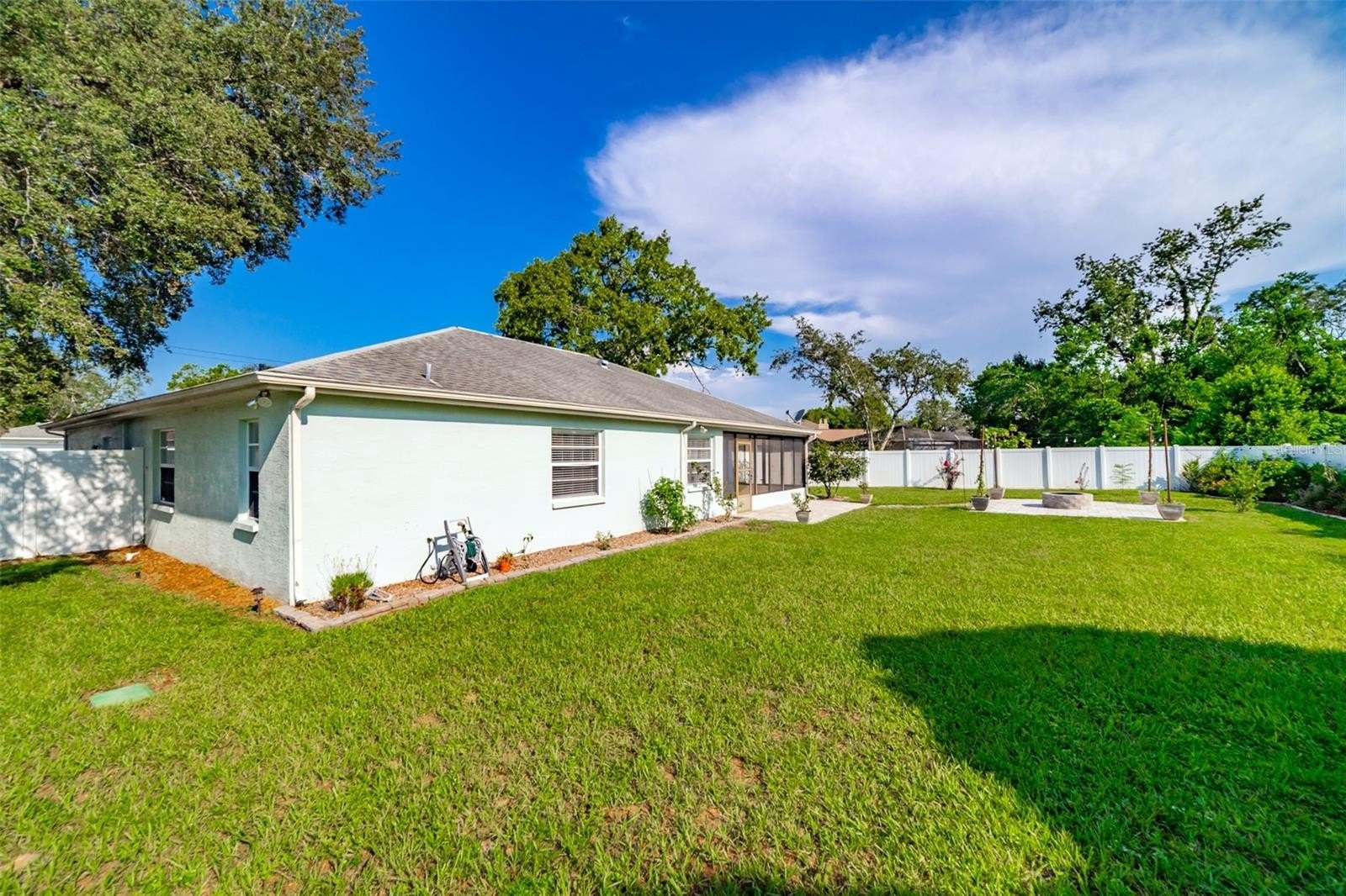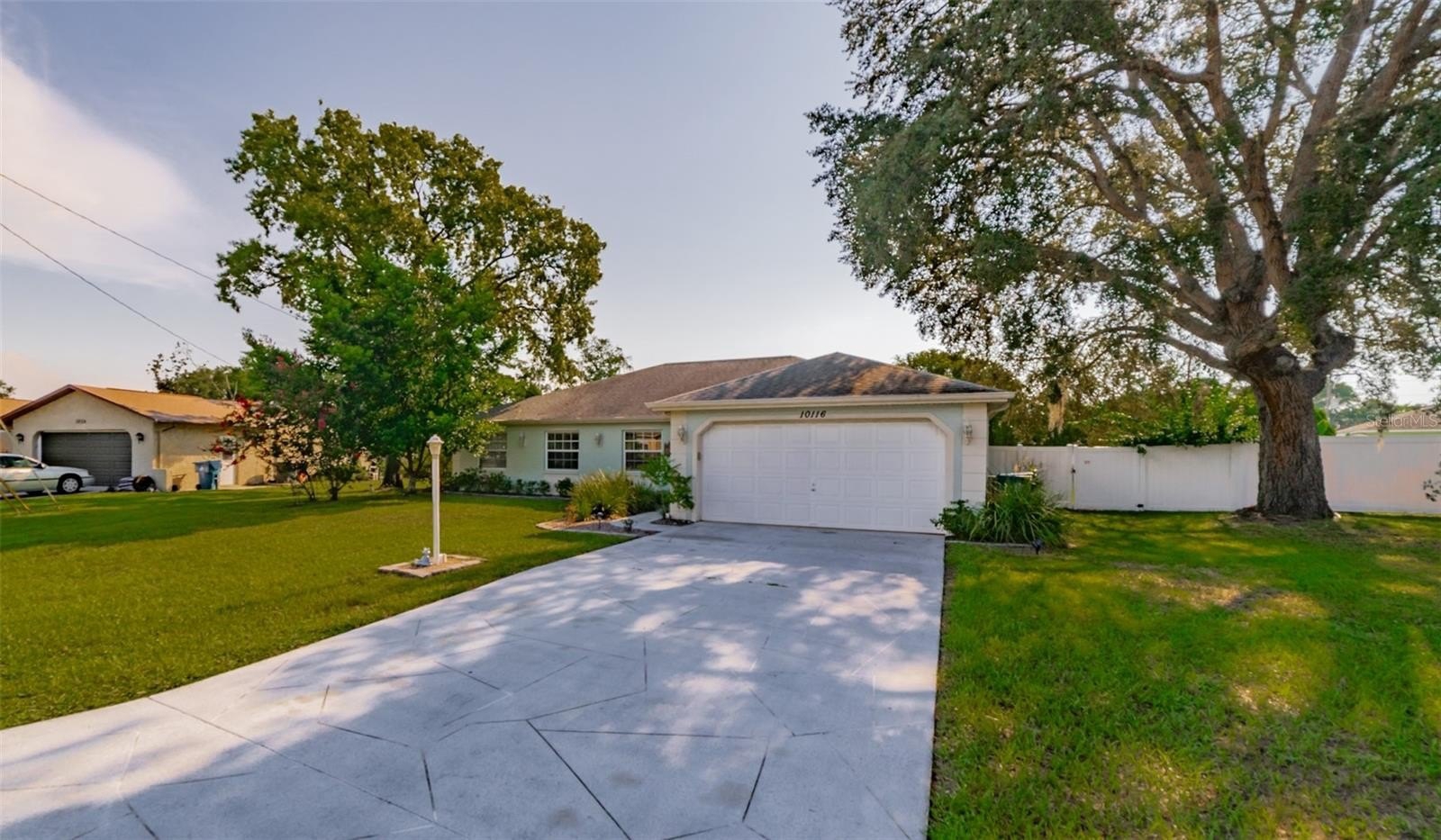 Charming and beautifully cared for three-bedroom, two-bath home situated in the heart of Spring Hill. This home features fresh paint and luxurious vinyl flooring throughout. The kitchen boasts a brand new stove, wooden cabinets, an island with a sink, and ample space for bar stools. Additionally, there is a closet pantry and a coffee bar area. This open-concept kitchen provides space for a cozy dining area and a family room. Adjacent to the kitchen is a flexible space that can serve as an extra dining area, an office, or a playroom, complete with sliding glass doors that open to an enclosed patio, which leads to a beautifully maintained oversized backyard featuring a newer PVC privacy fence. An outdoor patio includes a path that guides you to a fire pit area, all constructed with pavers, perfect for enjoying quiet evenings under the stars. The fence is adorned with mature plants including 2 blueberry bushes that produce fruit enhancing the view. All three bedrooms are generously sized, complete with closets, while the master suite includes its own spacious bathroom. Both bathrooms have been updated. On the way to the two-car garage, you will find the laundry room, which includes closet storage, a large laundry sink, and a washer and dryer, with extra space for shelving and more. This lovely home is conveniently located off Spring Hill Drive and is just a short distance from shopping, medical facilities, restaurants, a waterfront park, and the expressway leading to Tampa.