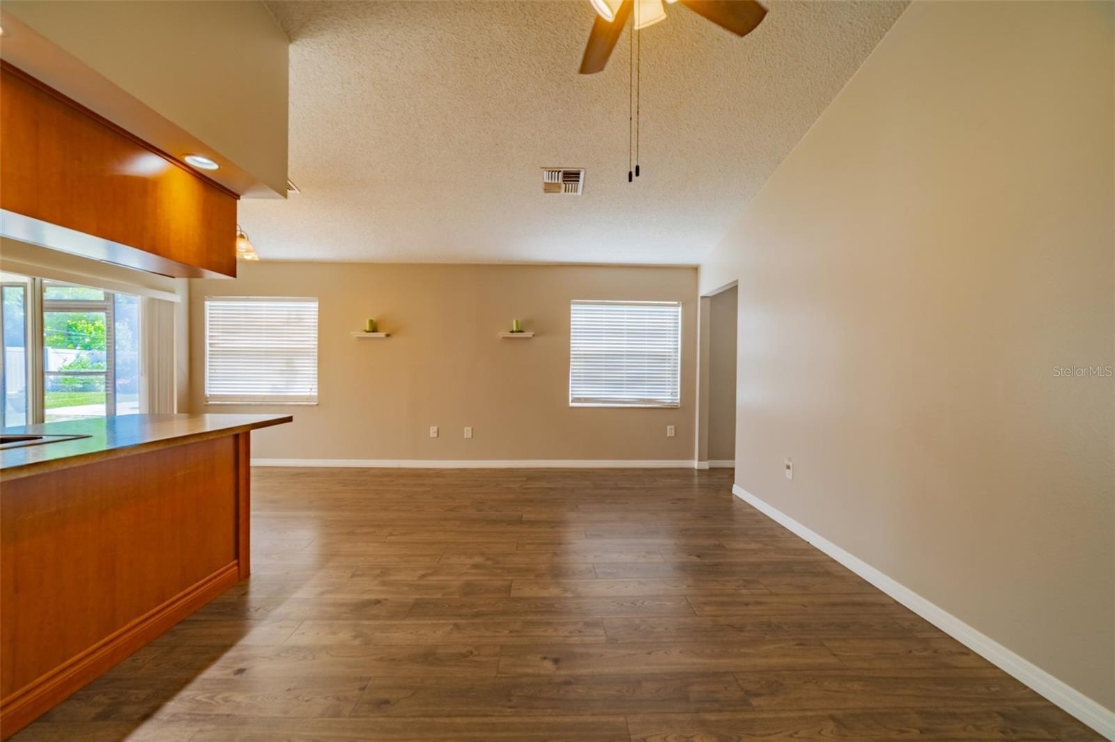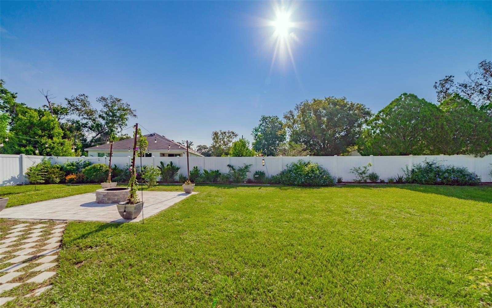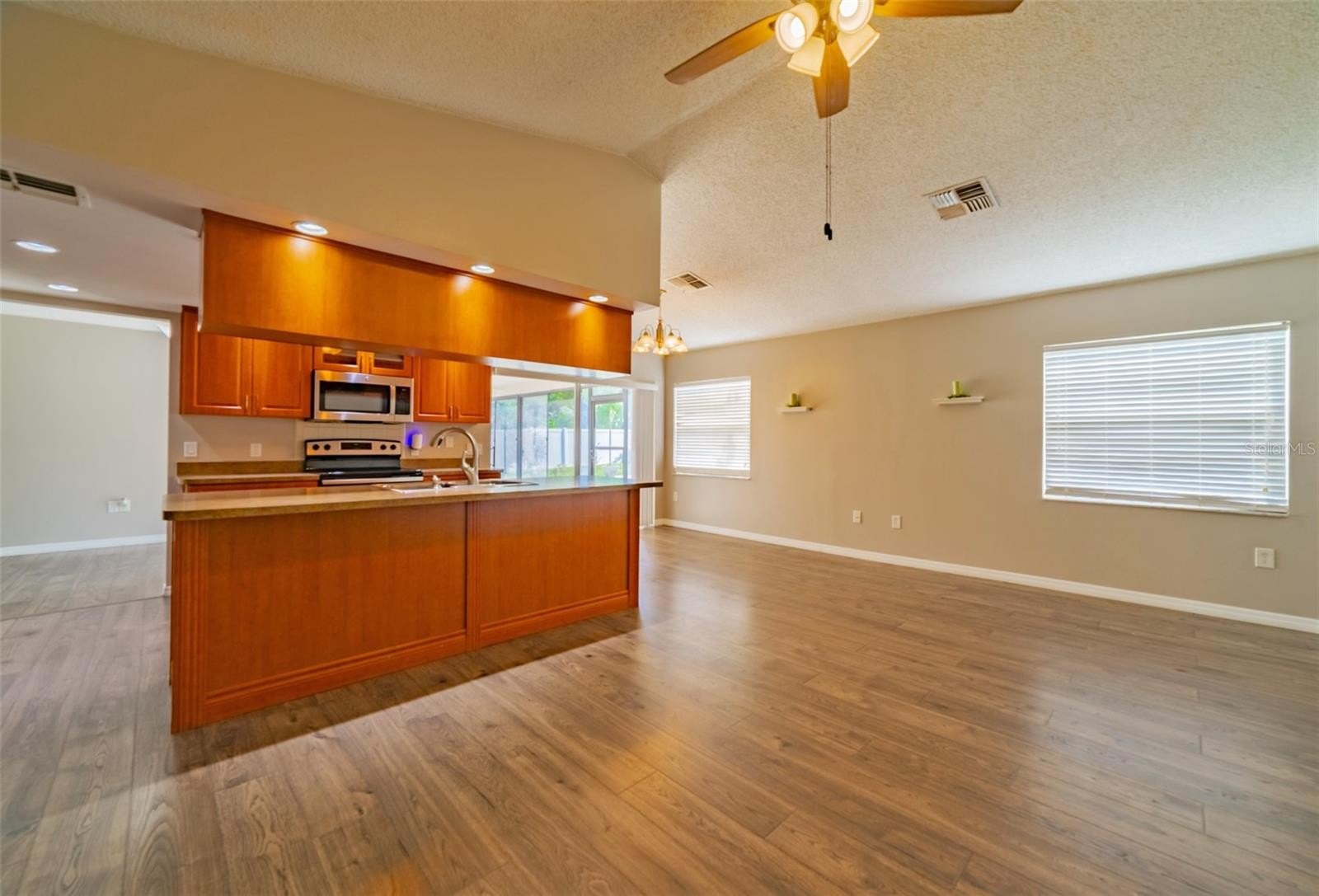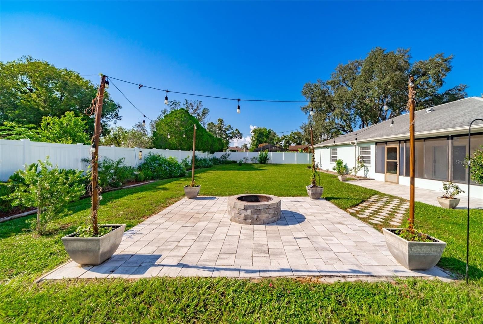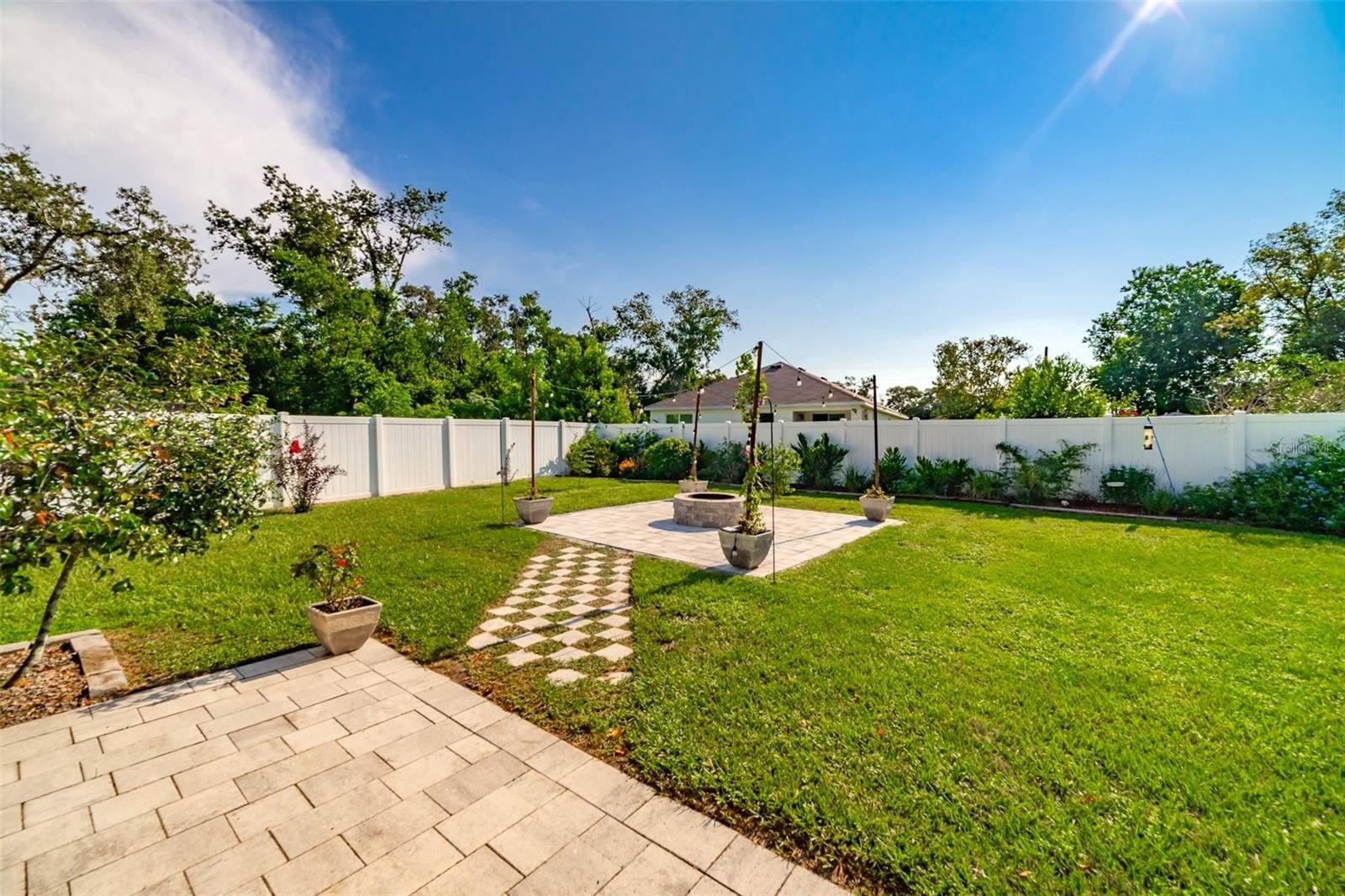 Charming and beautifully cared for three-bedroom, two-bath home situated in the heart of Spring Hill. This home features fresh paint and luxurious vinyl flooring throughout. The kitchen boasts a brand new stove, wooden cabinets, an island with a sink, and ample space for bar stools. Additionally, there is a closet pantry and a coffee bar area. This open-concept kitchen provides space for a cozy dining area and a family room. Adjacent to the kitchen is a flexible space that can serve as an extra dining area, an office, or a playroom, complete with sliding glass doors that open to an enclosed patio, which leads to a beautifully maintained oversized backyard featuring a newer PVC privacy fence. An outdoor patio includes a path that guides you to a fire pit area, all constructed with pavers, perfect for enjoying quiet evenings under the stars. The fence is adorned with mature plants including 2 blueberry bushes that produce fruit enhancing the view. All three bedrooms are generously sized, complete with closets, while the master suite includes its own spacious bathroom. Both bathrooms have been updated. On the way to the two-car garage, you will find the laundry room, which includes closet storage, a large laundry sink, and a washer and dryer, with extra space for shelving and more. This lovely home is conveniently located off Spring Hill Drive and is just a short distance from shopping, medical facilities, restaurants, a waterfront park, and the expressway leading to Tampa.