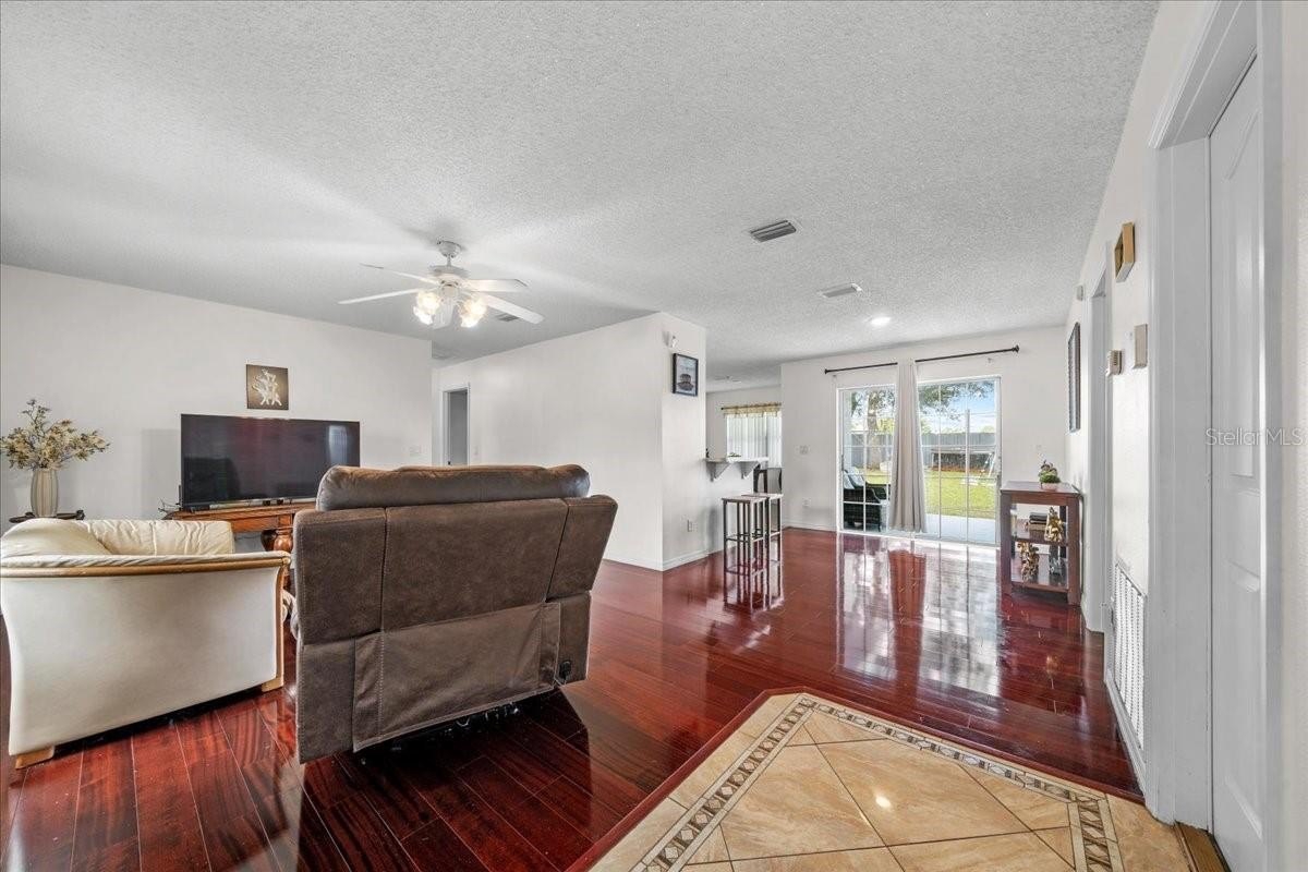 You're going to love this home, and here's why: The big stuff is already handled. The roof and the HVAC? Both were replaced in 2021, so you can move in and just relax. Step inside this 3 bedroom, 2 bath home and feel that great vibe. The main living areas have this beautiful tile flooring that looks awesome and is a breeze to clean. The open floor plan is perfect for hanging out, with a separate dining room that’s ideal for family meals or entertaining. The kitchen is super functional with white cabinets, stainless steel appliances, and a handy laundry closet. The layout is a smart split-plan, giving you and your family plenty of privacy. The main bedroom is your own private escape with a walk-in closet and a great bathroom. And the best part? The backyard. A sliding glass door from the dining room takes you out to a big concrete patio: your spot for grilling, entertaining, or just soaking up the sun.