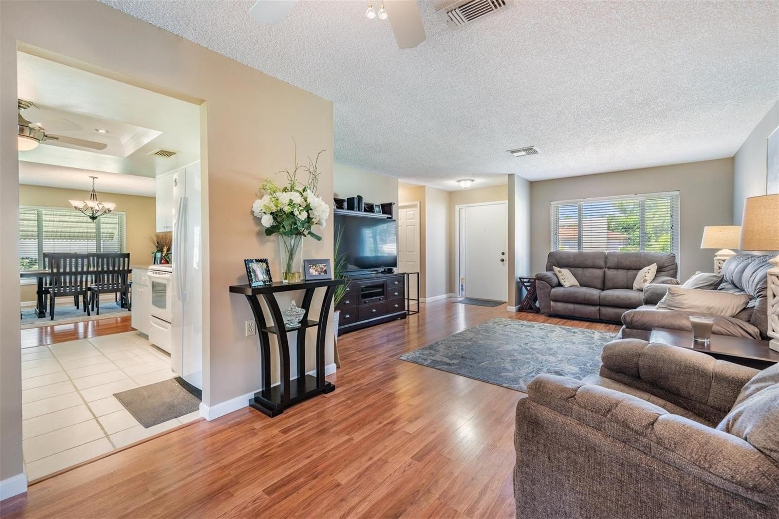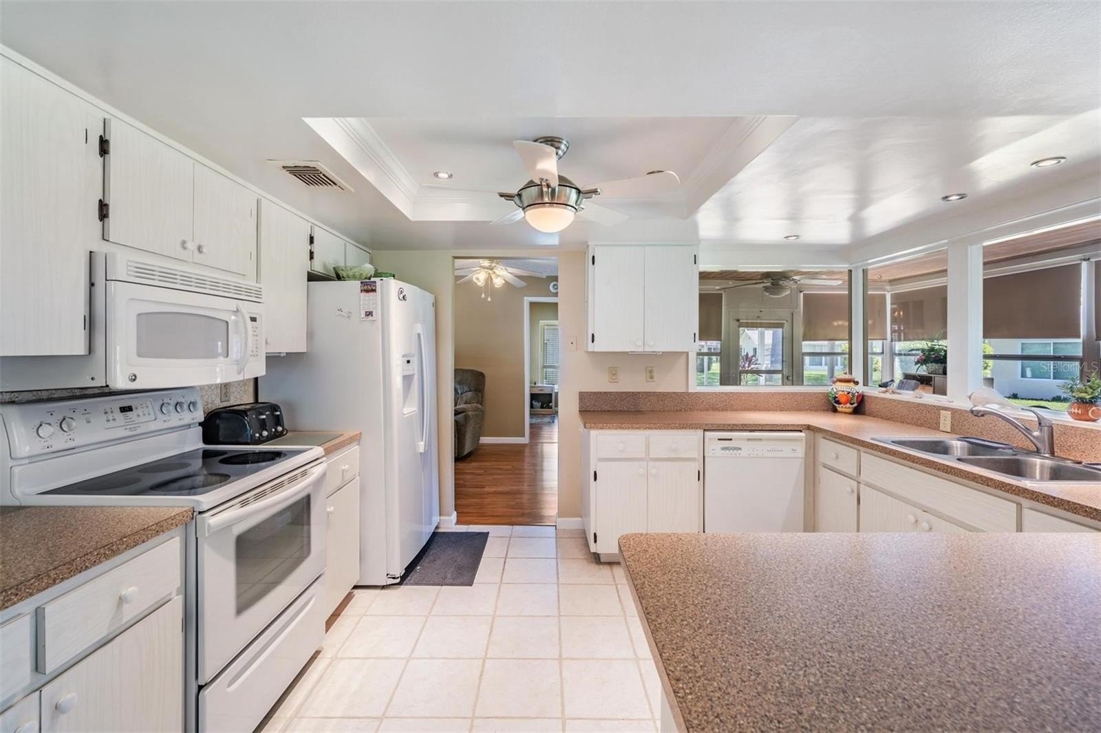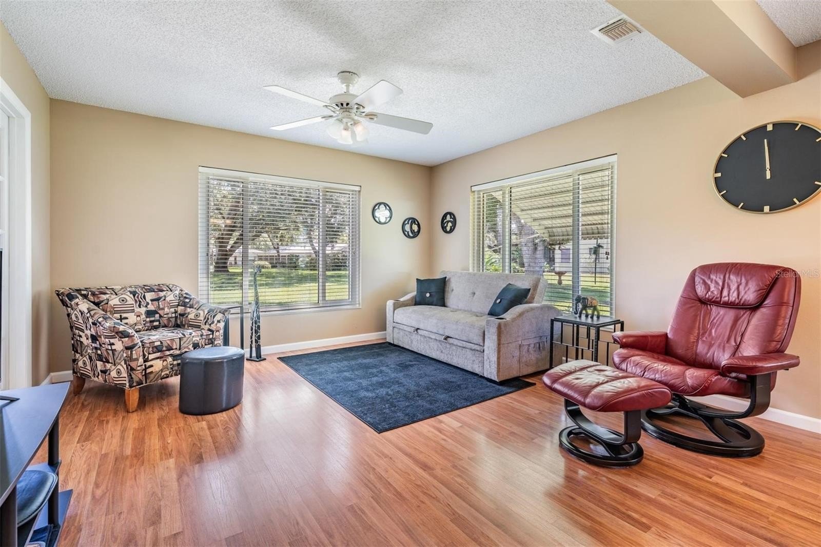 MINT MINT MINT! IMMACULATE 2 BEDROOM, 2 BATHROOM WITH BONUS ROOM AND SCREENED IN BACK PORCH IN TIMBER OAKS! *BRAND NEW ROOF WILL BE INSTALLED BEFORE CLOSING!* This home has been meticulously cared for! This kitchen is spacious, bright, and overlooks the bonus room and back yard! The primary Bed/bathroom features a walk-in closet, walk-in shower, and a high vanity with Corian top! The 2nd bedroom is across the house and close to the 2nd bathroom which has a new shower surround and tall vanity topped with Corian! The laundry room is also spacious and equipped with a utility sink and cabinets! The bonus room and screened-in back porch overlook the open lawn in the back, providing a relaxing area to unwind! The Bonus room is climate controlled for relaxation through all seasons! Other features of this home include its newer windows, Newer laminate flooring, and ceiling fans in all rooms! All of this in the beautiful 55+ community of Timber Oaks which includes its heated 24hr community pool, hot tub, and clubhouse that all over look a beautiful lake! Low HOW Fee at just $55/month! *New roof comes with a transferrable warranty!