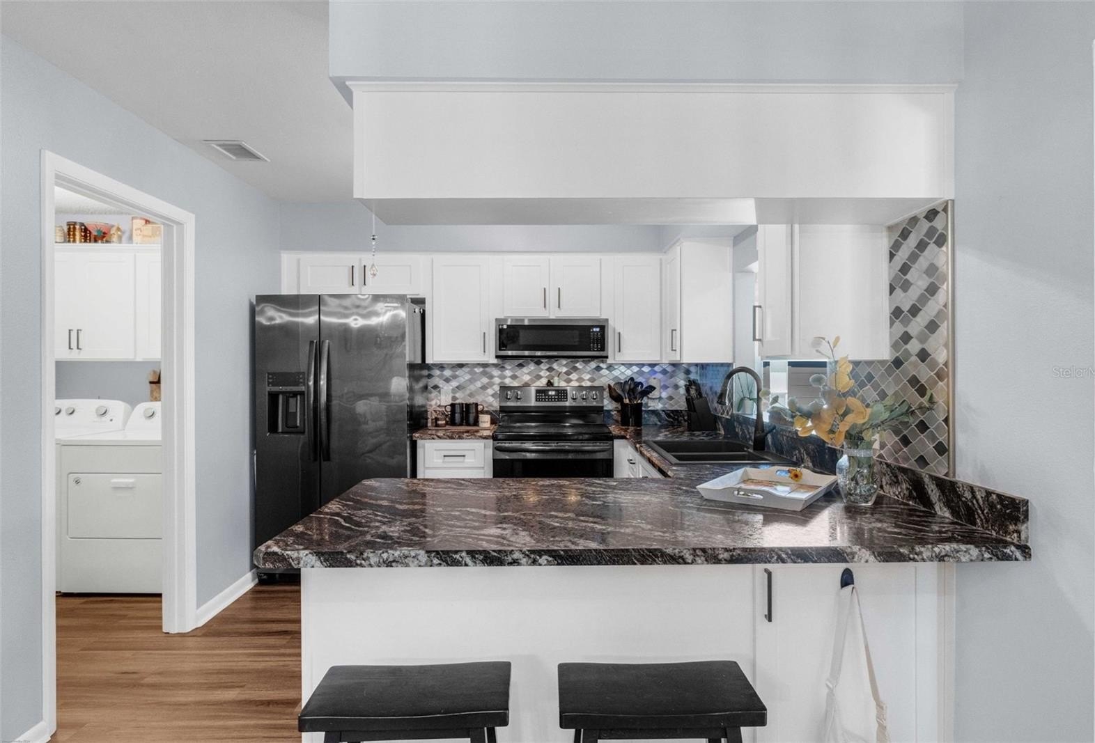 Buyers dream on the fairway! Step into turnkey perfection in Lakeland’s coveted golf-course enclave, where every detail has been meticulously upgraded for effortless living. A 2024 architectural shingle roof and impact-rated windows(2023)—complete with custom treatments from 2023—ensure lasting protection and style, while fresh paint throughout brightens every room and provides the perfect canvas for your personal touches. The heart of the home, completely renovated in 2023, features crisp new cabinetry, sleek quartz countertops, stainless steel appliances, and coordinating new floors that flow seamlessly into open living spaces. A screened-in garage transforms into an ideal indoor-outdoor retreat for morning coffee, evening cocktails, or a bug-free workout zones Or enjoy the lanai for a book or cup of tea. Outside, a professionally landscaped yard, brand-new driveway and sidewalk (2024), and mature shade trees create instant curb appeal with minimal maintenance.