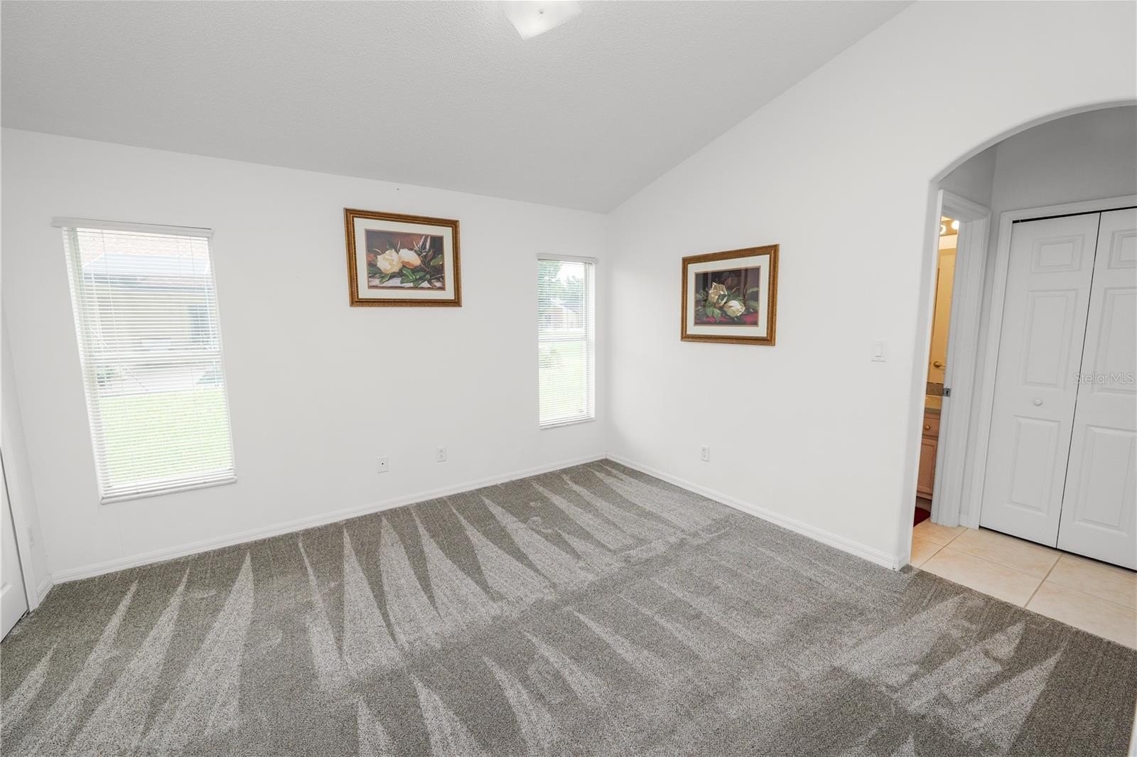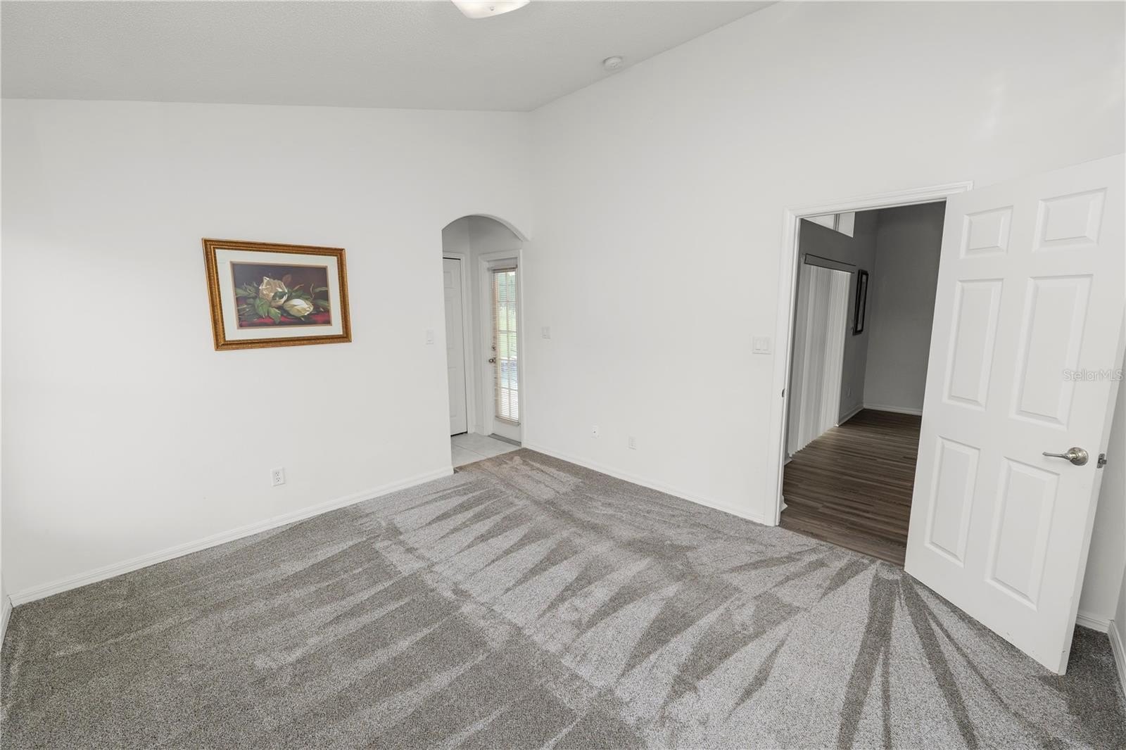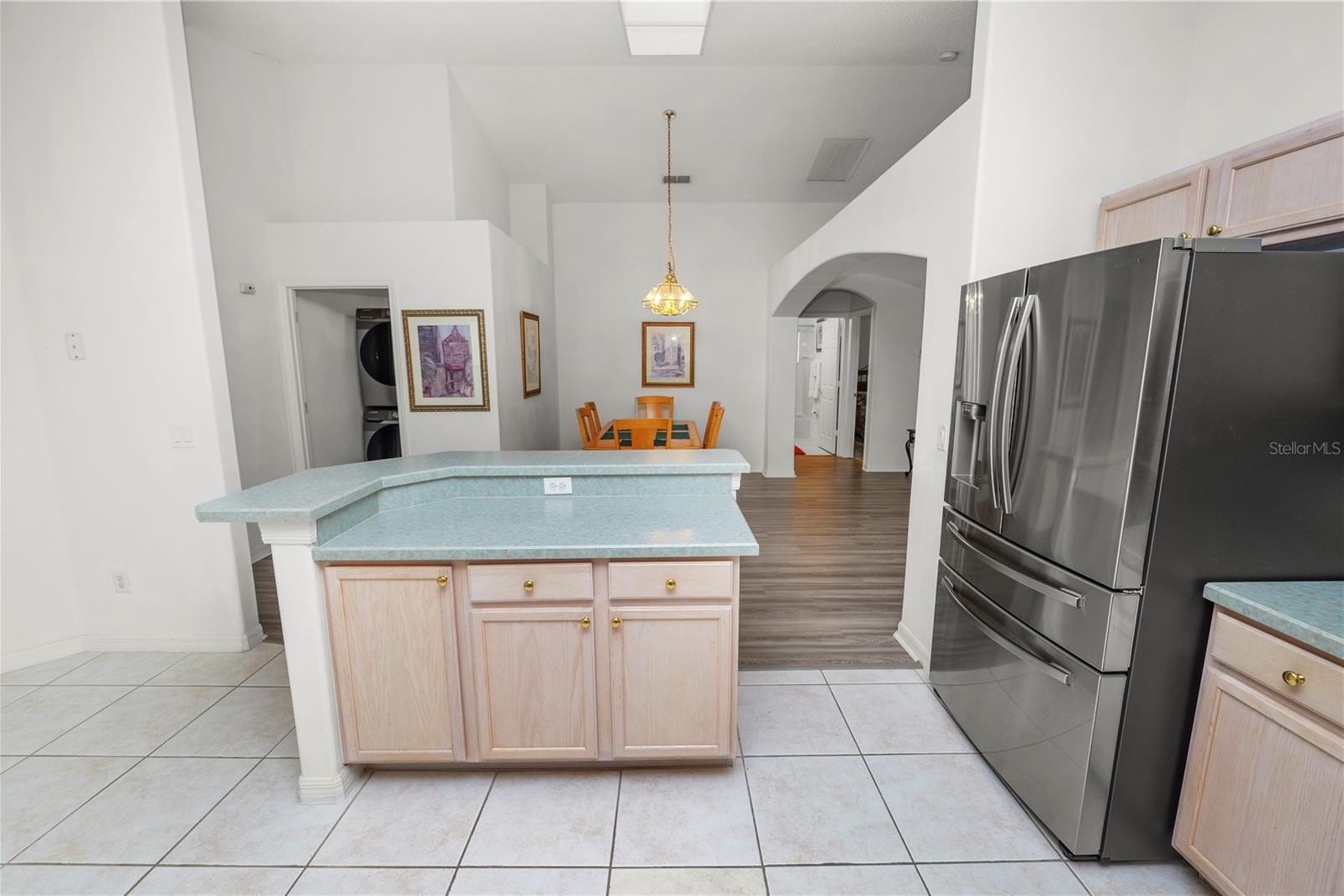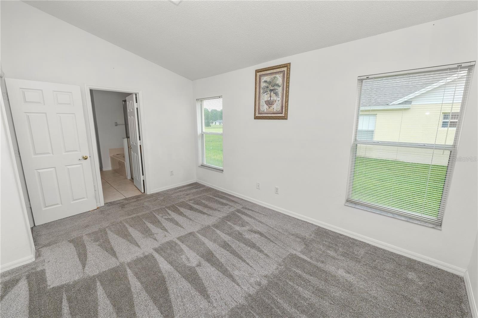The home features new carpet and LVT flooring in 2024. Step inside to vaulted ceilings with a thoughtfully designed layout offering an effortless flow between the living, dining, and kitchen areas while natural light filters in through skylights, adding warmth and charm throughout the home.