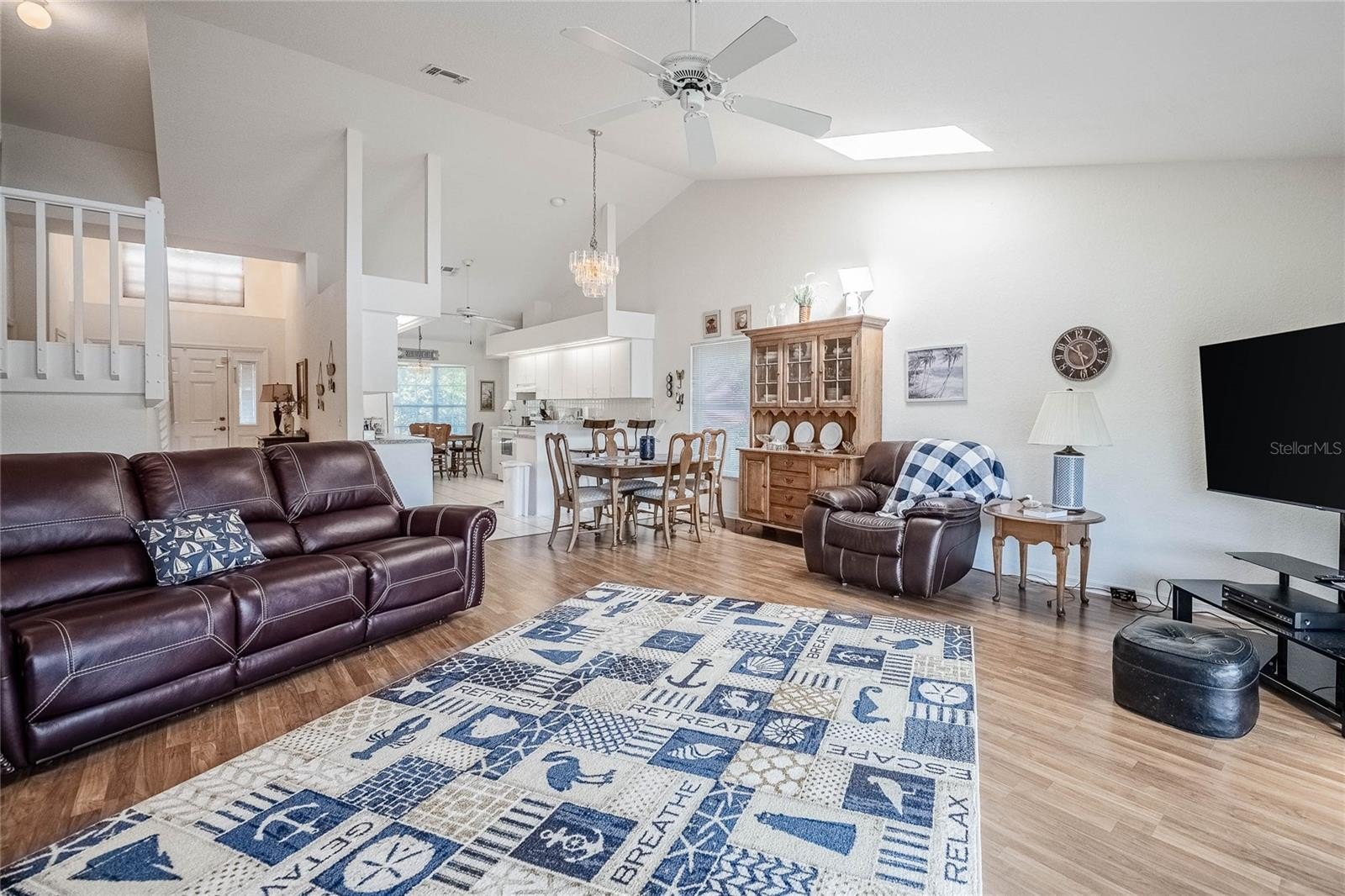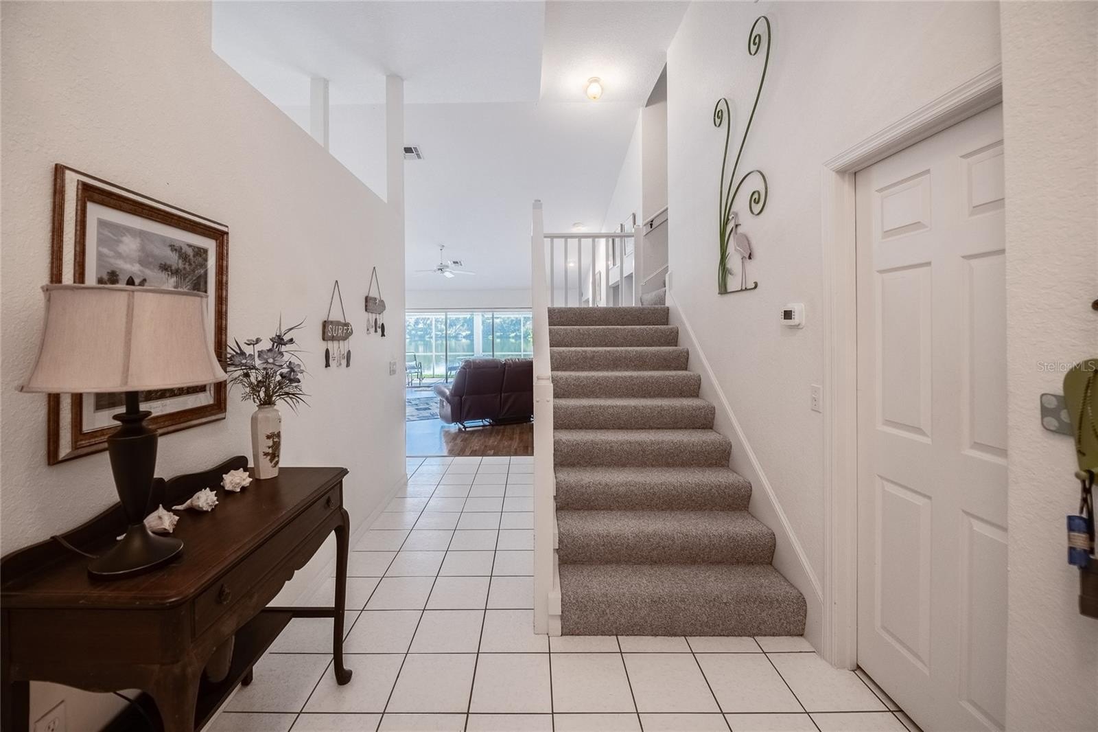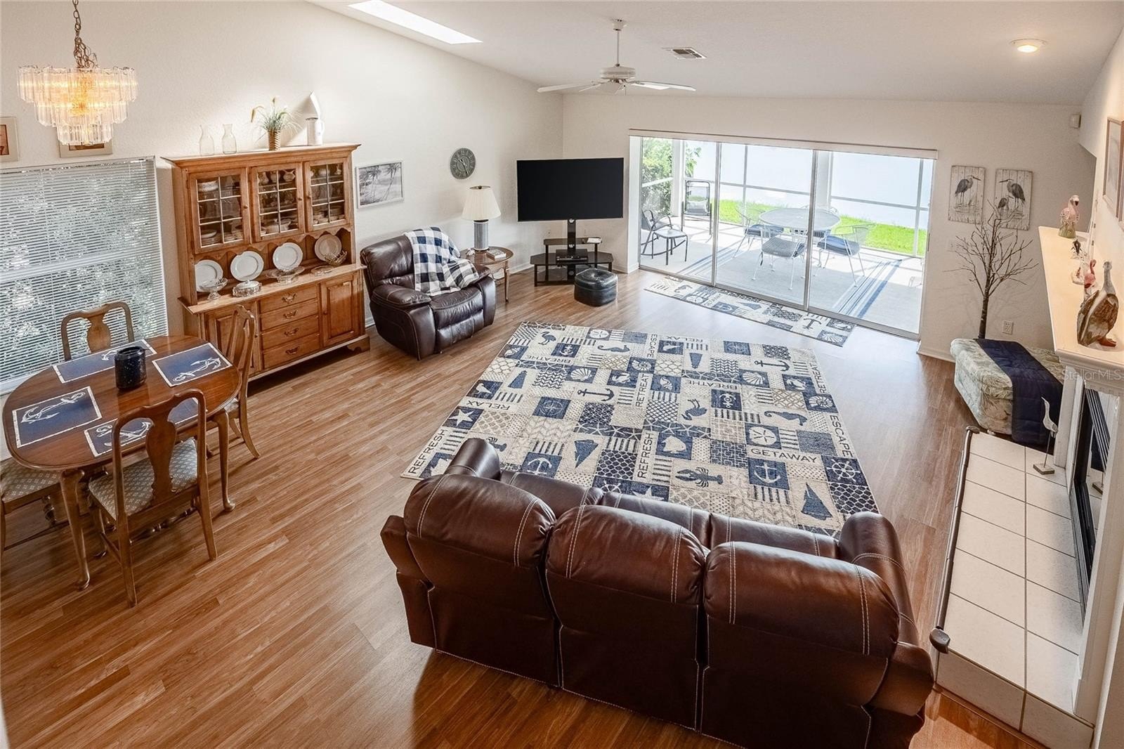 Amazing South Lakeland Waterfront - both in front and back of the home. This 3 br / 2.5 bath home boasts over 2000 square feet of AC living space and was built in 1995. Enjoy watching the sunset from your own private dock overlooking Lake Clark in South Lakeland. The eat-in kitchen is spacious and overlooks the Dining and Family Room that boasts soaring ceilings and also overlooks the screened lanai. The primary bedroom is on the ground floor and the primary bath boasts dual sinks, soaking bathtub, and separate shower, in addition to a large walk-in closet. Upstairs, there are two bedrooms and a shared Jack and Jill bath. Additional features include powder bath that is located downstairs, private dock, inside laundry room, gas fireplace in the family room, and two car garage. Many of the furnishings can be negotiable.
