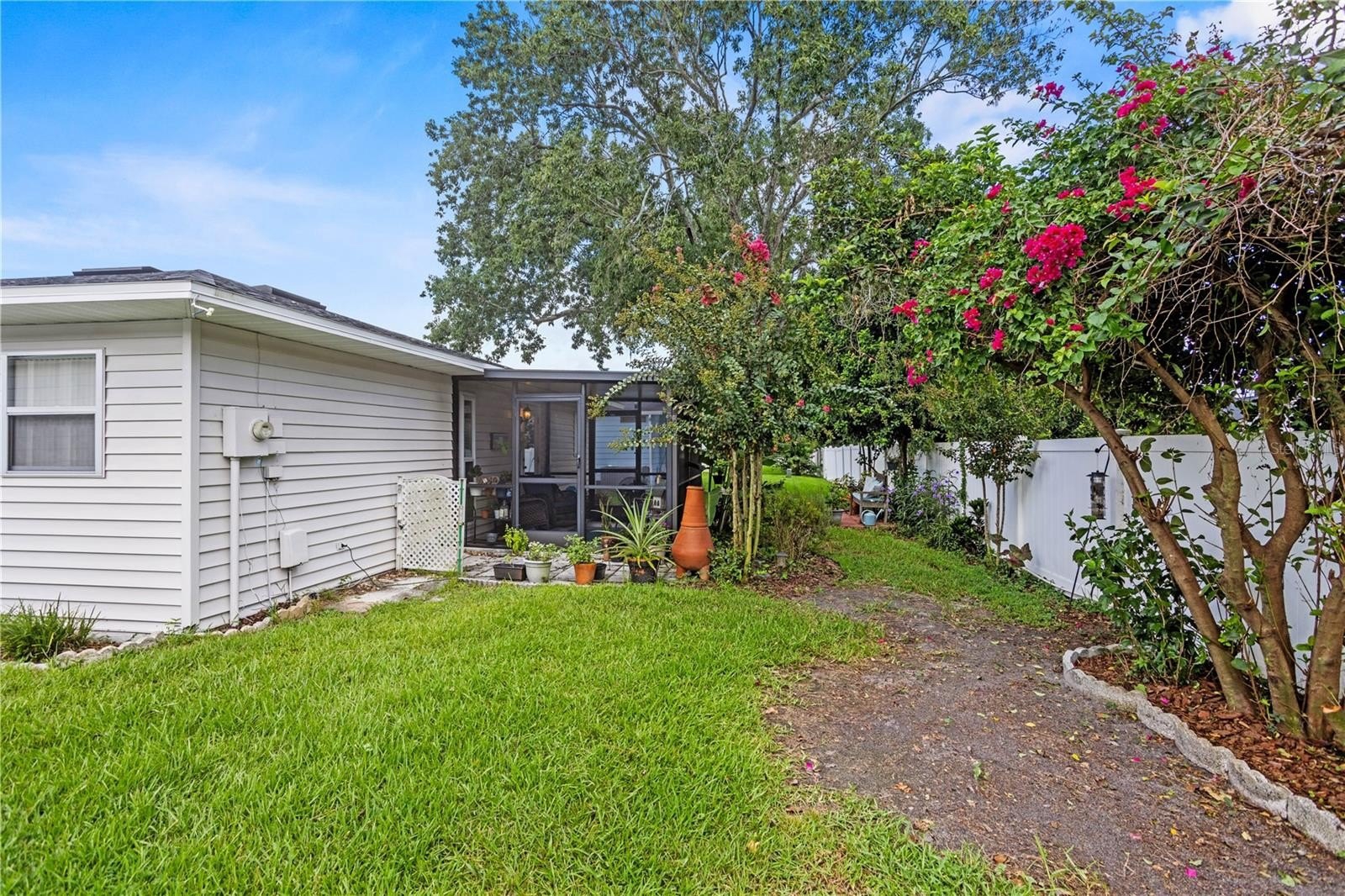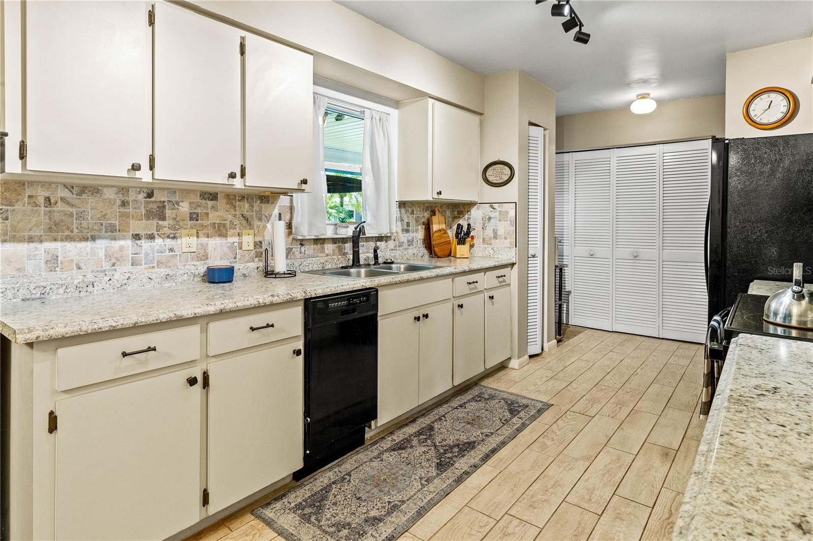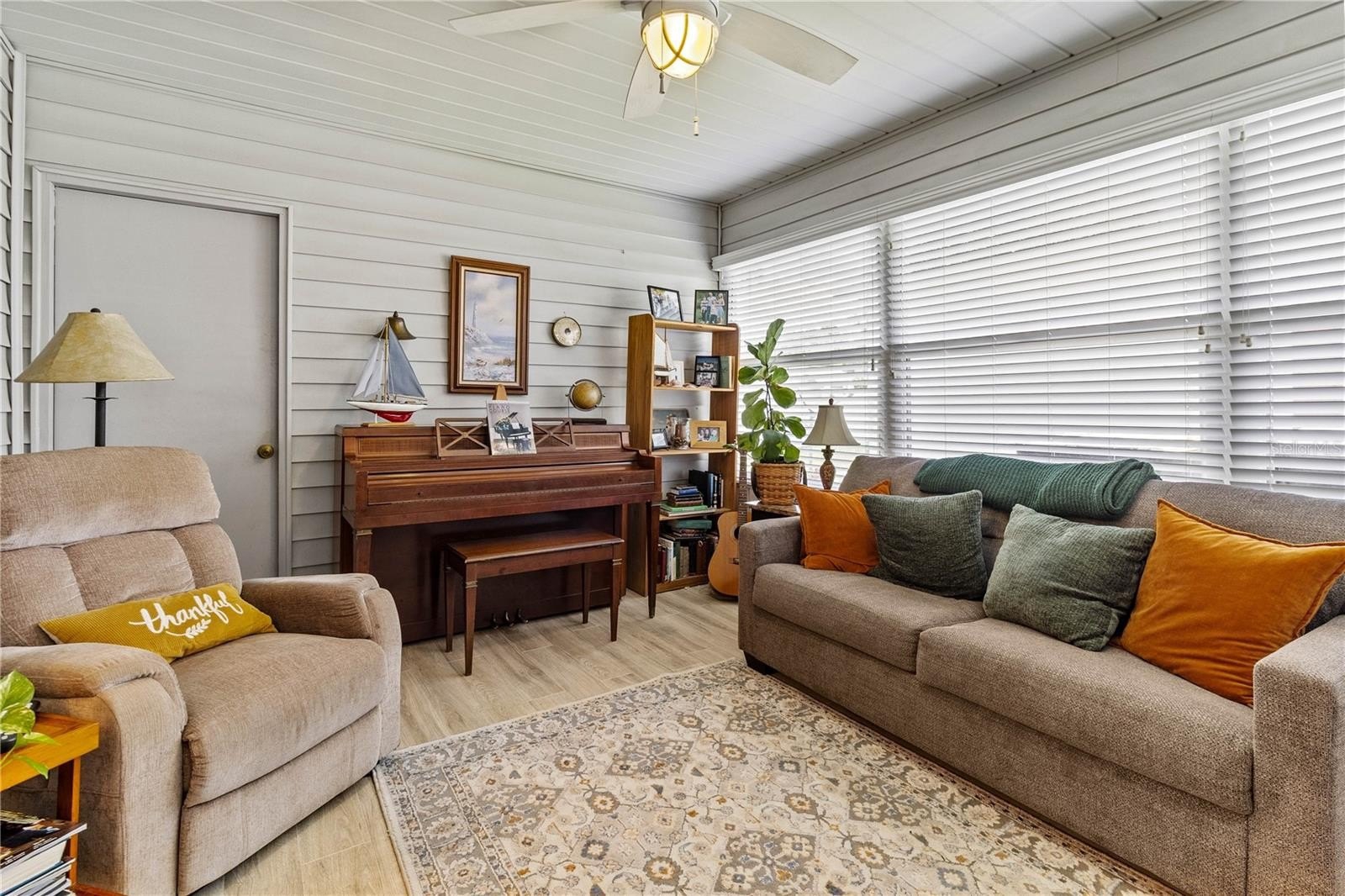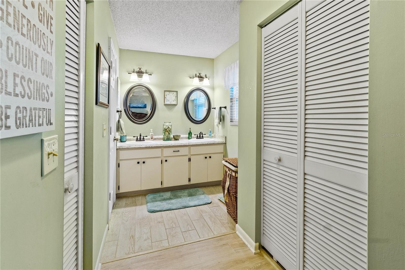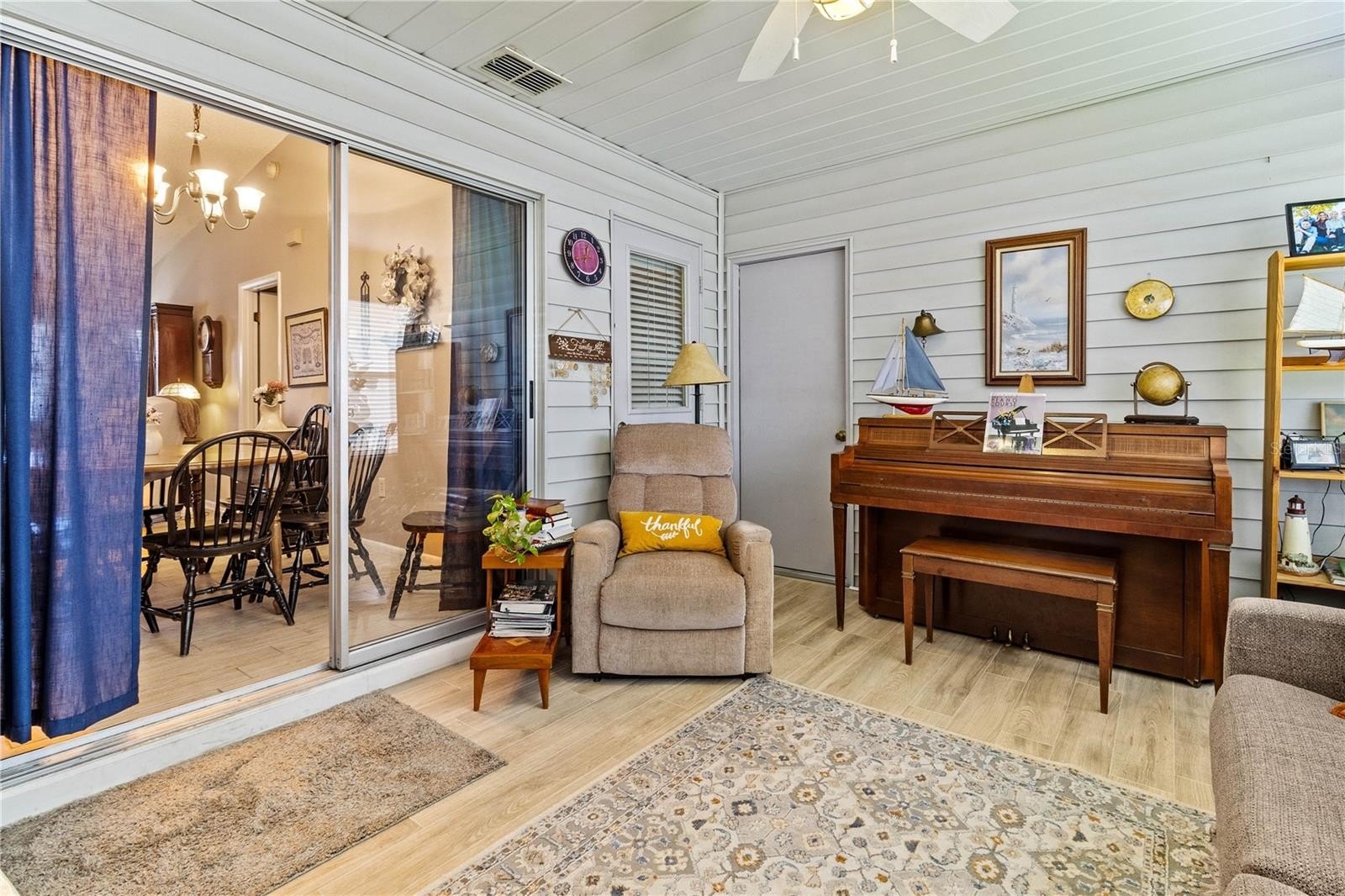Extremely well-kept Greenbrier model located on an exterior lot in the desirable 55+ gated community of the Colonnades. This 2-bedroom, 2-bathroom home features updated tile in the kitchen and dining areas, along with vinyl plank flooring in the living room and bonus space. The roof, windows, and A/C have all been replaced within the past five years. Bright and spacious throughout, the home includes a private lanai off the primary bedroom that overlooks a lush, landscaped backyard.