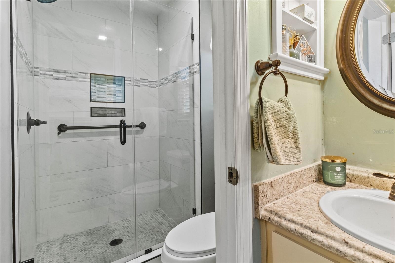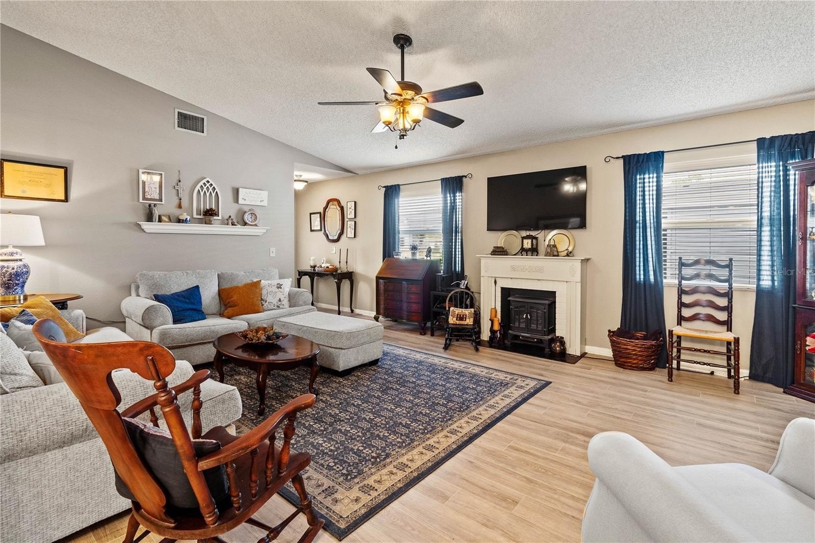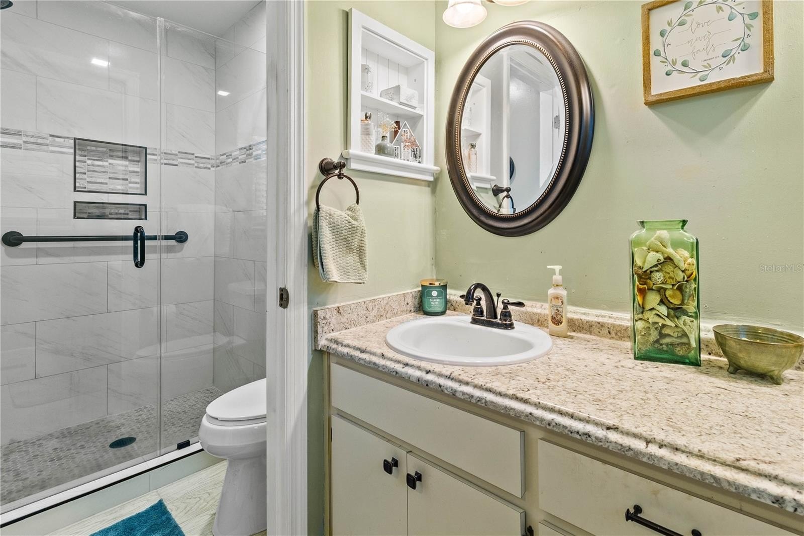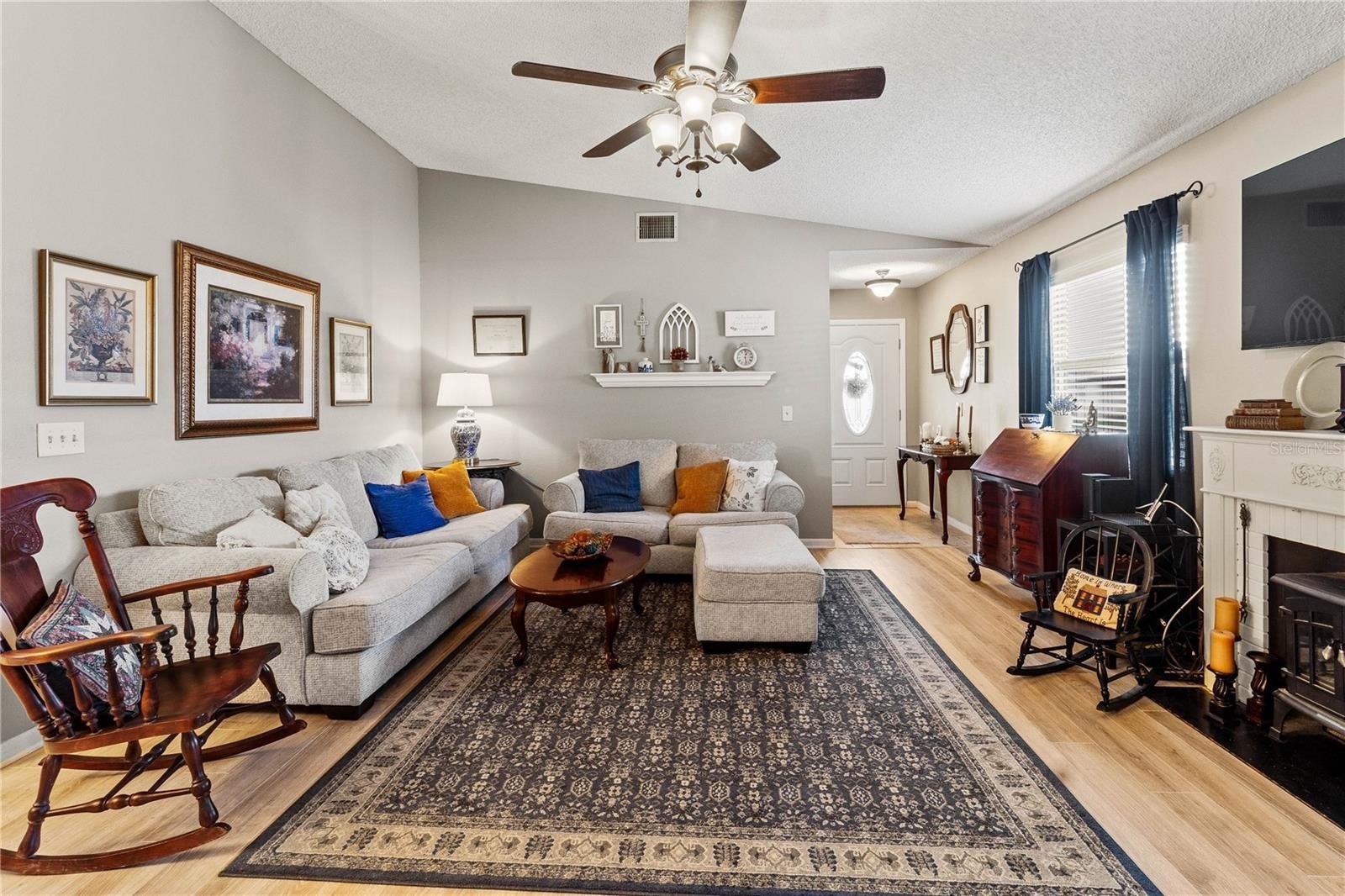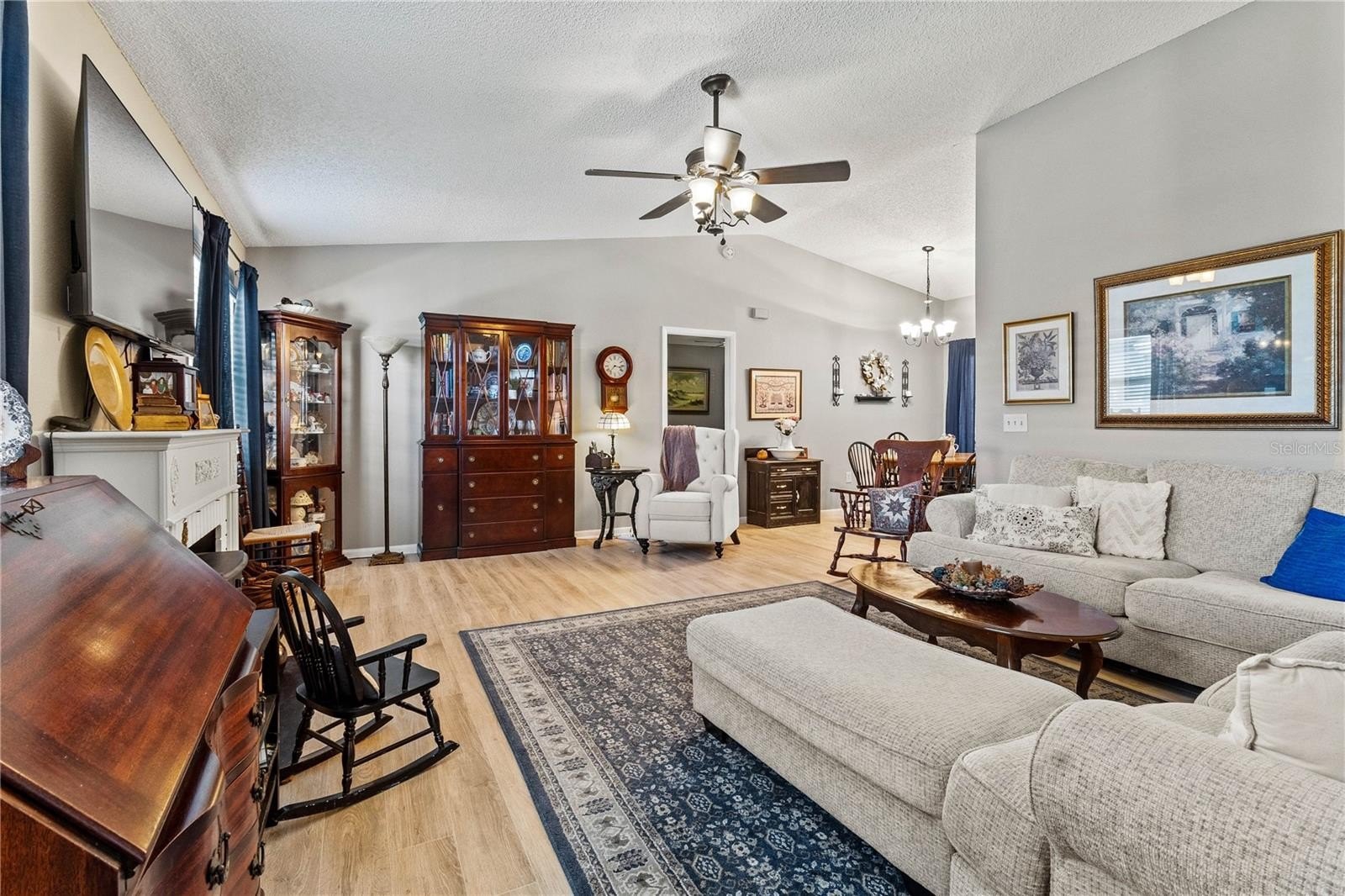Extremely well-kept Greenbrier model located on an exterior lot in the desirable 55+ gated community of the Colonnades. This 2-bedroom, 2-bathroom home features updated tile in the kitchen and dining areas, along with vinyl plank flooring in the living room and bonus space. The roof, windows, and A/C have all been replaced within the past five years. Bright and spacious throughout, the home includes a private lanai off the primary bedroom that overlooks a lush, landscaped backyard.