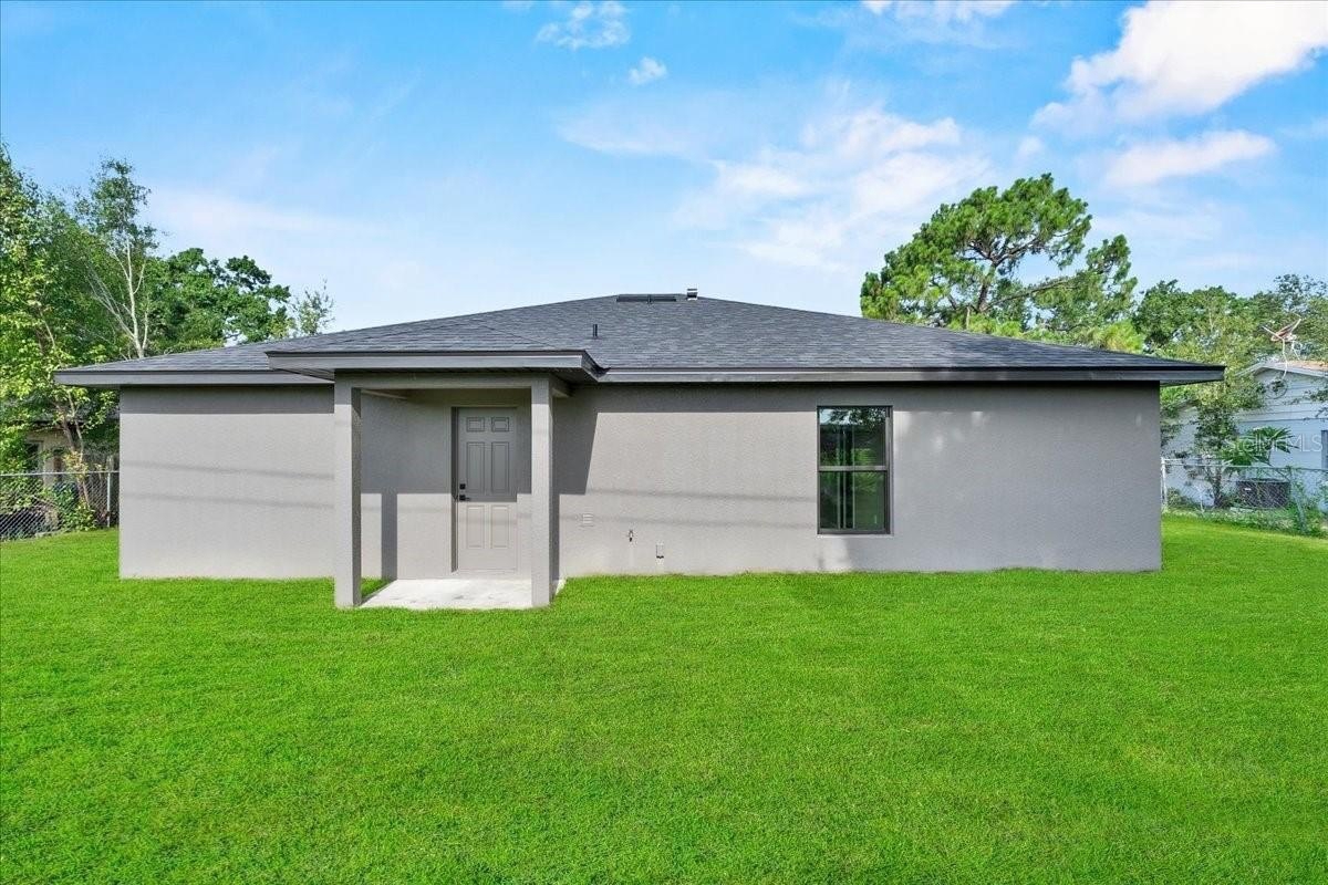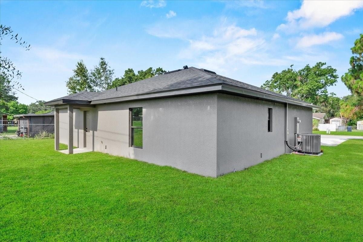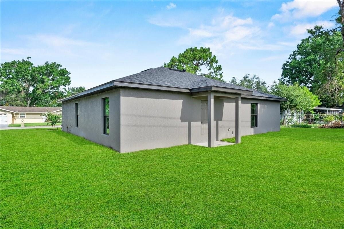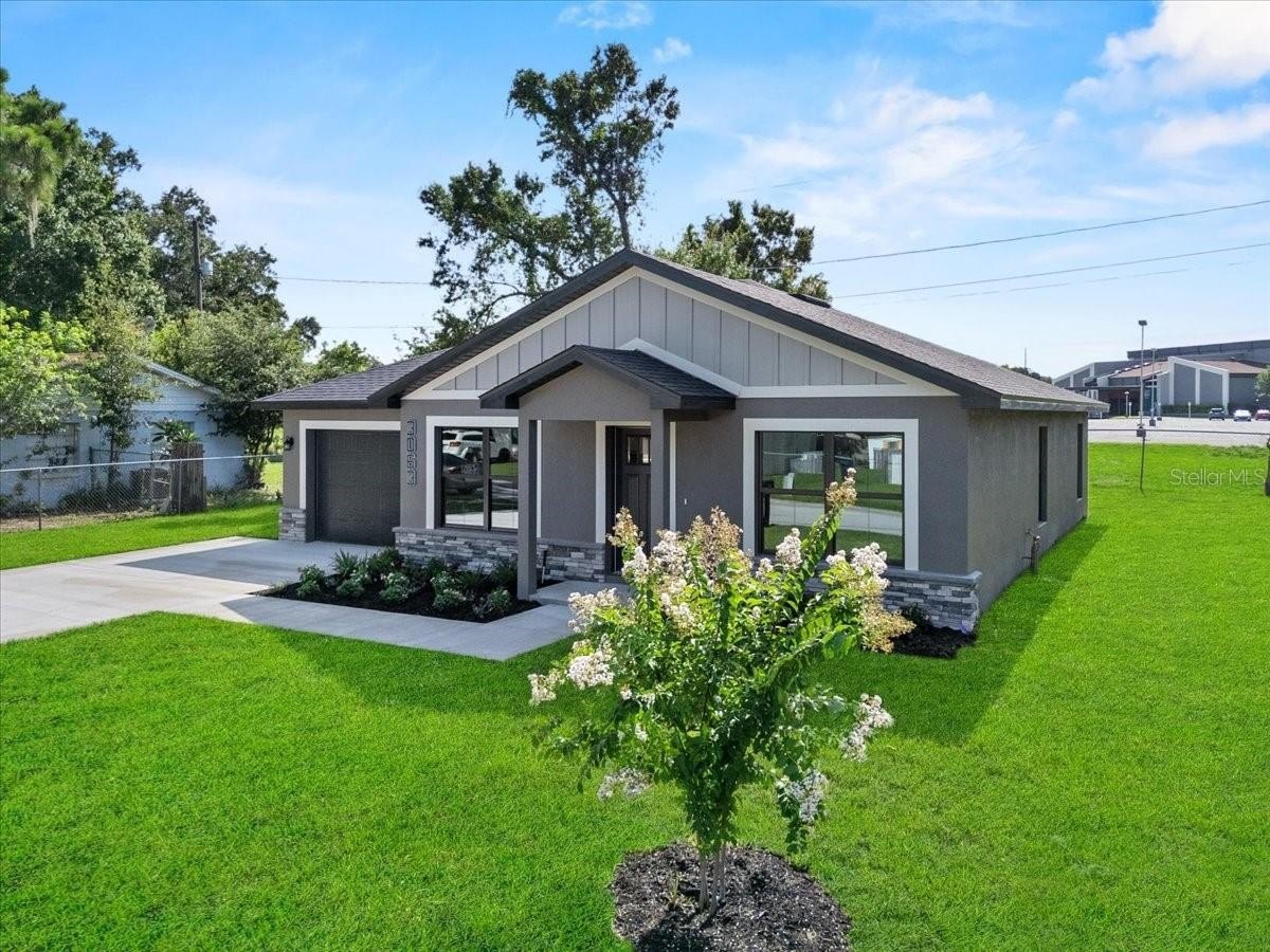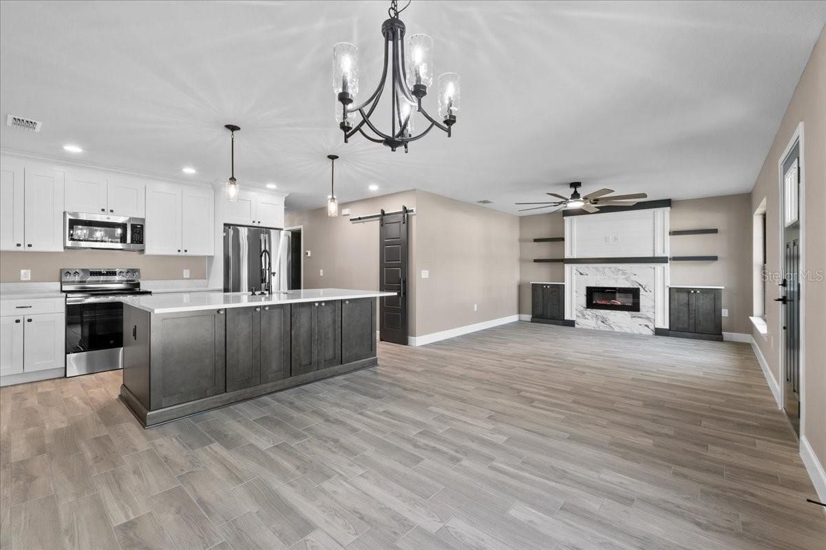 One or more photo(s) has been virtually staged. **Stunning New Construction Home in Auburndale built by Integrity Homes and Construction, Inc.!** Whether you're a First-Time Home Buyer, Retiree or just downsizing this is the home for you! This beautifully designed three-bedroom, two-bath gem offers over 1,300+ square feet of luxurious living space, and it has never been lived in—just completed and ready for you to make it your own. Step inside to discover an inviting open floor plan adorned with elegant wood-look ceramic tile flooring throughout. The spacious living room features a cozy electric fireplace, complemented by stylish built-ins, creating the perfect ambiance for relaxation and entertaining. The heart of this home is the stunning kitchen, boasting classic white shaker cabinets with crown molding, gleaming granite countertops, and brand new stainless steel GE appliances. A charming barn door pantry adds a touch of farmhouse flair, making this kitchen both functional and aesthetically pleasing. Retreat to the large master bedroom, complete with an en suite bathroom that exudes luxury. Enjoy the spa-like experience with beehive tile flooring in the shower, rain shower head, floor-to-ceiling ceramic tile in shower, dual sinks, and a nice walk-in closet. The guest bath also boasts granite counter tops and floor to ceiling tile in the tub/shower. Additional highlights include an inside laundry room for added convenience, ceiling fans in all rooms for comfort, and the bonus of no backyard neighbors, providing a sense of privacy and tranquility. Close to the Polk County Parkway, Schools, Shopping and Restaurants. Don't miss this opportunity to own a brand-new home in a desirable location. Schedule your showing today and experience the perfect blend of modern living and farmhouse charm!