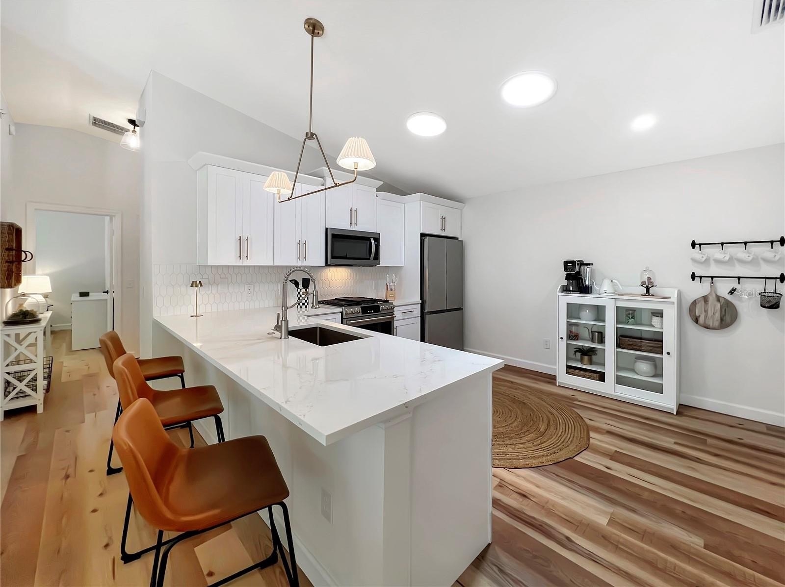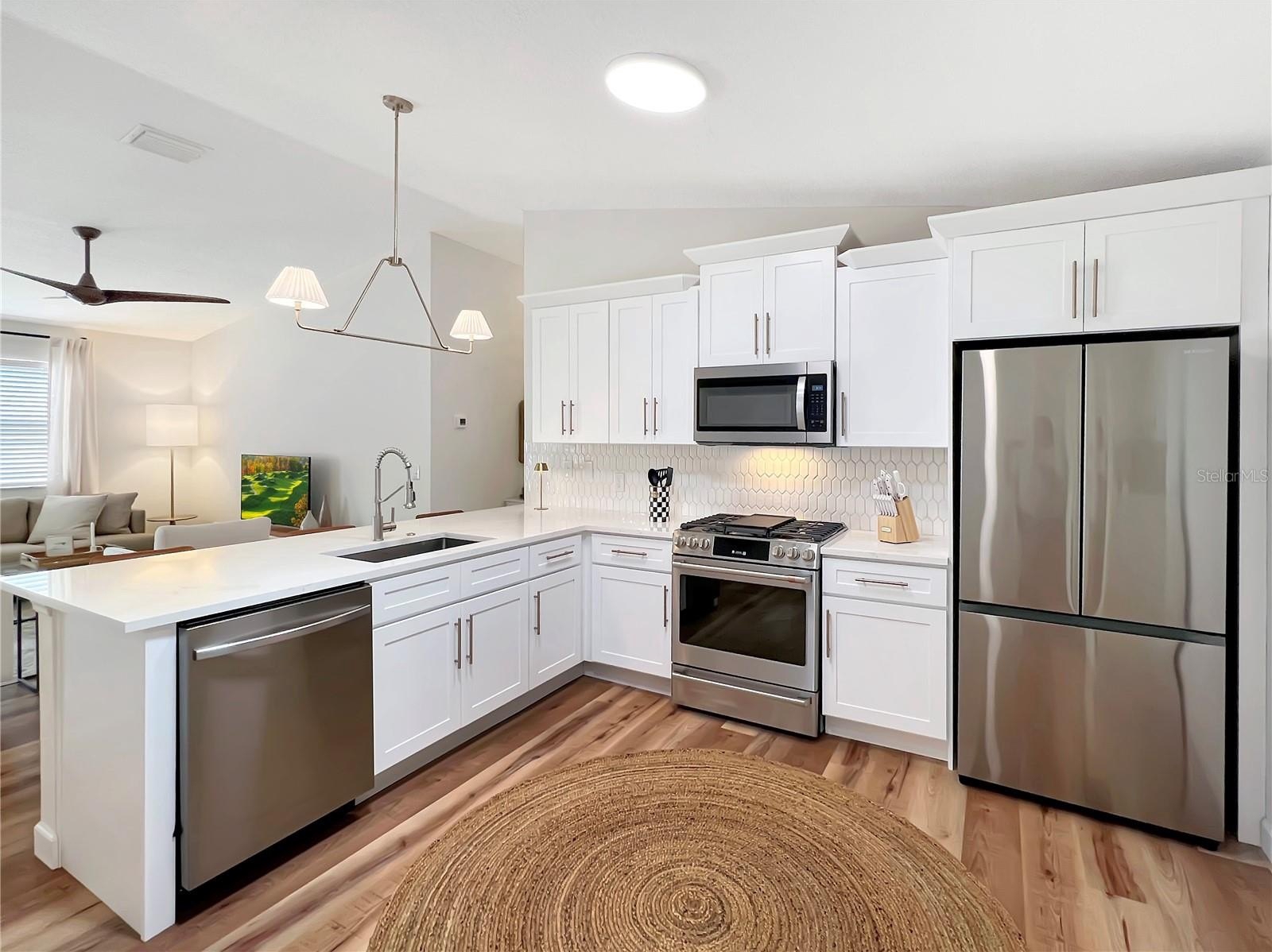 Inside, you’ll love the open feel created by volume ceilings, neutral custom paint, and NO POPCORN ceilings. The home features LUXURY VINYL PLANK flooring throughout—NO carpet, plus all-new designer light fixtures. The dream kitchen showcases 36” Staggered White Cabinetry, QUARTZ Countertops, Stainless Steel Appliances including a GE Café Gas Range and a Custom Tiled Backsplash. The Primary Suite is a retreat of its own, offering a spacious bedroom with a King Sized Upholstered Bed, a Large Walk-in Closet and a Renovated en-suite Bath. Major updates add peace of mind with a new ROOF (2024), HVAC (2025), and WATER HEATER (2025). The Village of Lynnhaven is known for its fantastic recreation with an Adult pool at the neighborhood recreation center and a Family pool at Churchill Downs Recreation Center. Arnold Palmer Legends Country Club with restaurant, pro shop, driving range, and golf academy is just minutes away and for Executive golf there is Pimlico, Churchill Downs, and Belmont Golf Courses. This villa is a rare opportunity—completely updated, fully furnished, and in a prime location!