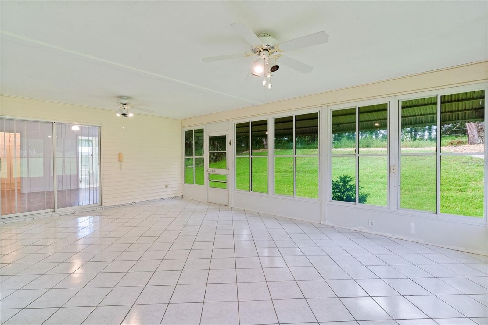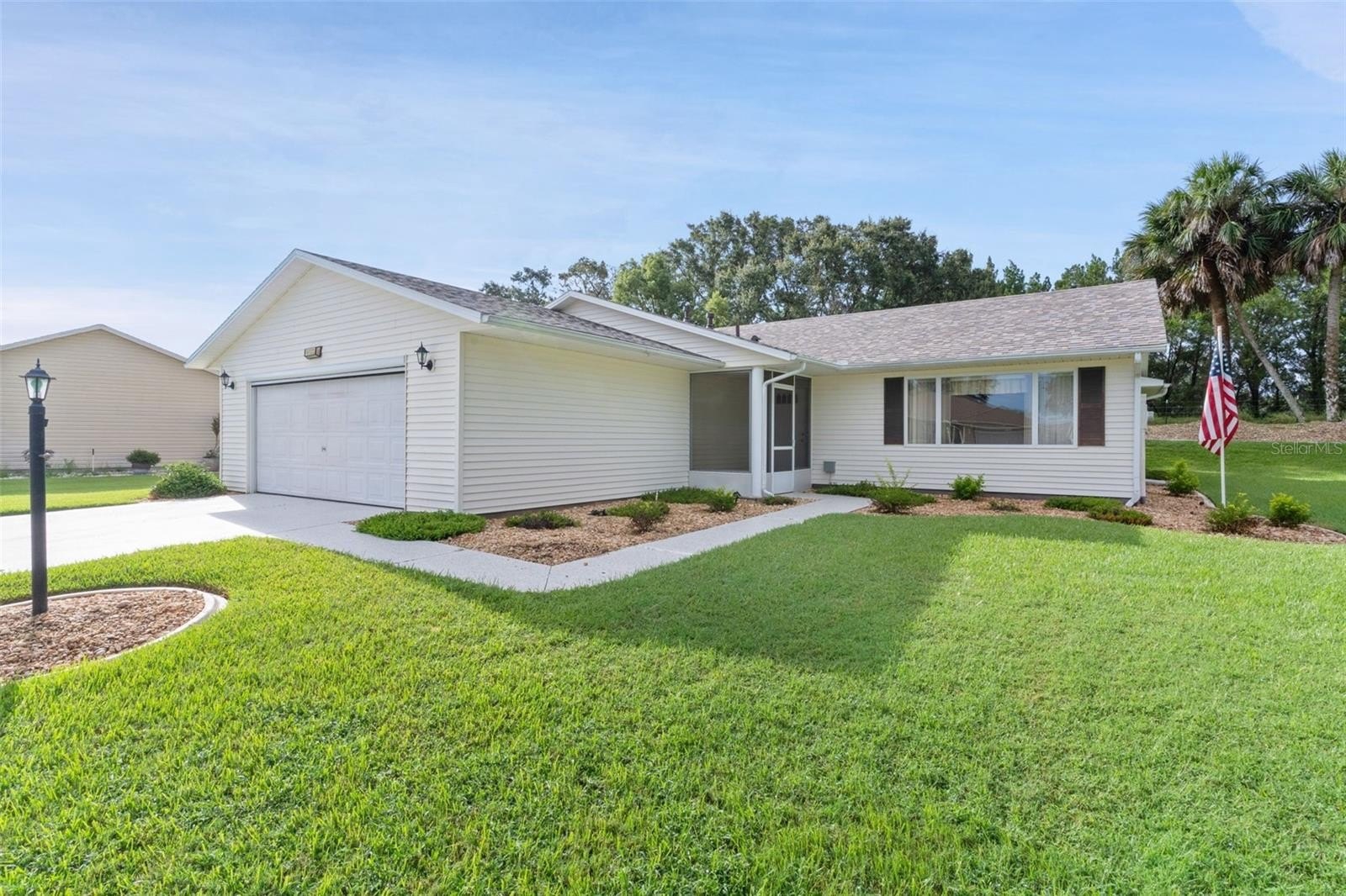 Welcome to HIGHLAND LAKES a Gated 55+ Community! LOCATION!! Don’t miss out this 3 bedroom, 2 bathrooms, 2 car-garage home that is PRIVATE with NO REAR or RIGHT-SIDE NEIGHBORS!! Located on a Cul-de-sac, this is a .33 OVERSIZED LOT with ROOM TO GROW —add a Pool, Birdcage, or create your dream Outdoor Living Space. The Enclosed Lanai is 22x16 with AC with Views of the Backyard and ADDITIONAL 352 sq ft of Living Space. ROOF 2023, HVAC 2024. At the entrance you are greeted with a lovely Screened Porch that can be enclosed with vinyl windows that are in the garage. Stepping inside to a bright Living/Dining combo with Vaulted Ceilings, a large Front Window, and an Octagon Window that fills the home with Natural Light. LAMINATE & TILE FLOORS throughout the home. The Kitchen offers plenty of cabinets, a PANTRY CLOSET, EAT-IN KITCHEN, and room for a coffee bar. The private Primary Suite features an updated EN-SUITE BATHROOM that includes Newer Shower with sleek GLASS SHOWER, Vanity, Medicine Cabinets, and direct access to the Lanai—perfect for relaxing or entertaining. Two guest bedrooms with built-in closets share a full bathroom equipped with Tub/Shower combo and Hand Grips for ease of access and large vanity. The Laundry Room has a Newer Washer and Gas Dryer. The oversized 22x26 garage provides extra STORAGE, a WASH TUB, ATTIC, an additional Refrigerator, and an AUTOMATIC GARAGE SCREEN DOOR. Also, the OVERSIZED DRIVEWAY for room for your guest to park. Highland Lakes is a gated 55+ community situated in Central Florida just south of Leesburg & offers residents the following amenities: Recreational Clubhouse with two swimming pools; indoor (heated) & outdoor, a softball field, an indoor arena with a stage for community events, kitchen, billiard/ping pong rm., 6 tennis courts (2 courts are lighted & 4 courts have a cushion surface), 8 lighted shuffle board courts, bocce ball courts, pickleball, 7 horseshoe pits, covered picnic pavilion with picnic tables & grills to barbeque, library, meeting/card room, exercise room/fitness, craft room, golf driving range, RV/boat storage is also included & has 260 RV spaces on a secured lot (fenced & lockable), a Craftsmen building/woodworking shop (homeowners can join the club for only $12 annually and use any/all tools available), there's also a Nature Trail within the community & seven lakes scattered throughout Highland Lakes; 4 are used by residents for catch & release (fishing)! Don’t wait too long, this home is priced to sell. Home is Ready for you to move in and make it your own!