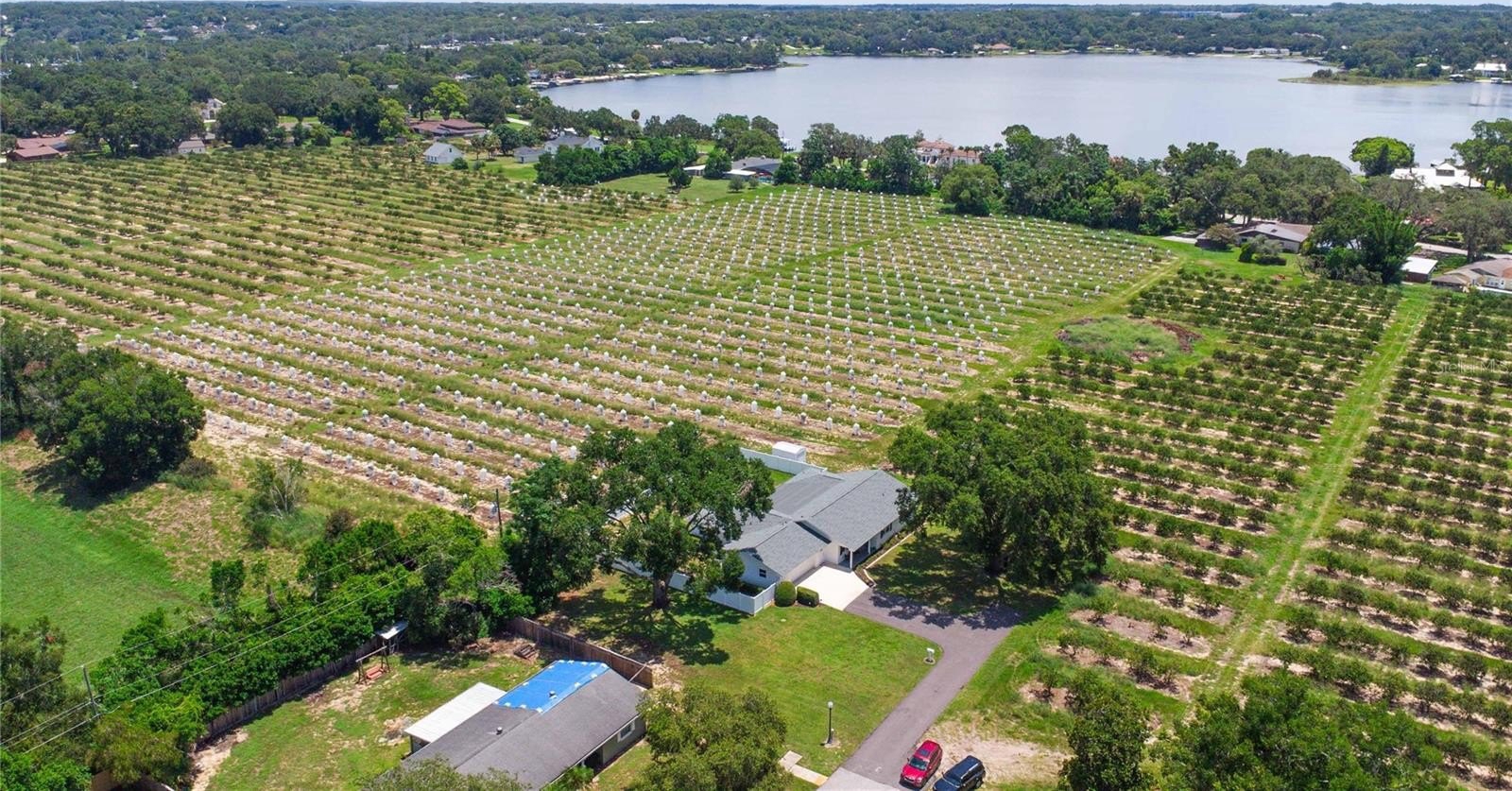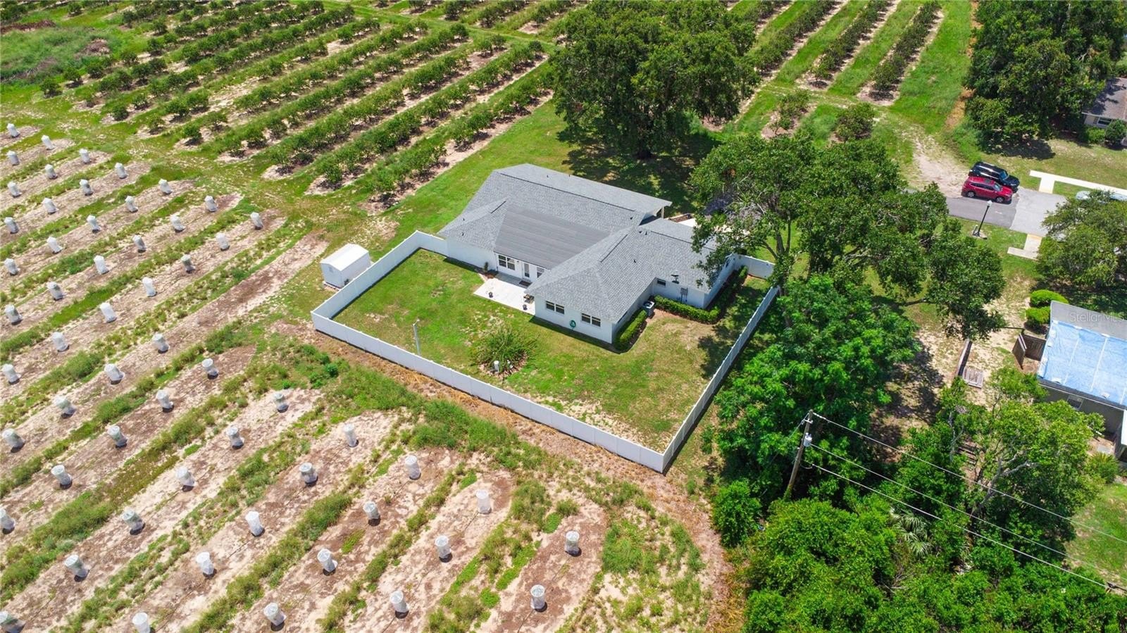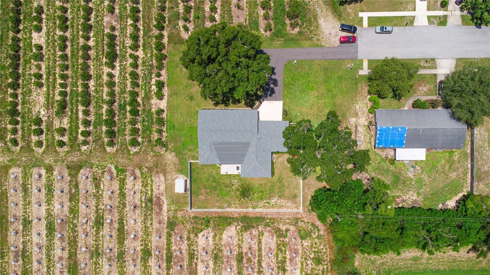 dead end street surrounded by active orange groves, offering an abundance of privacy
