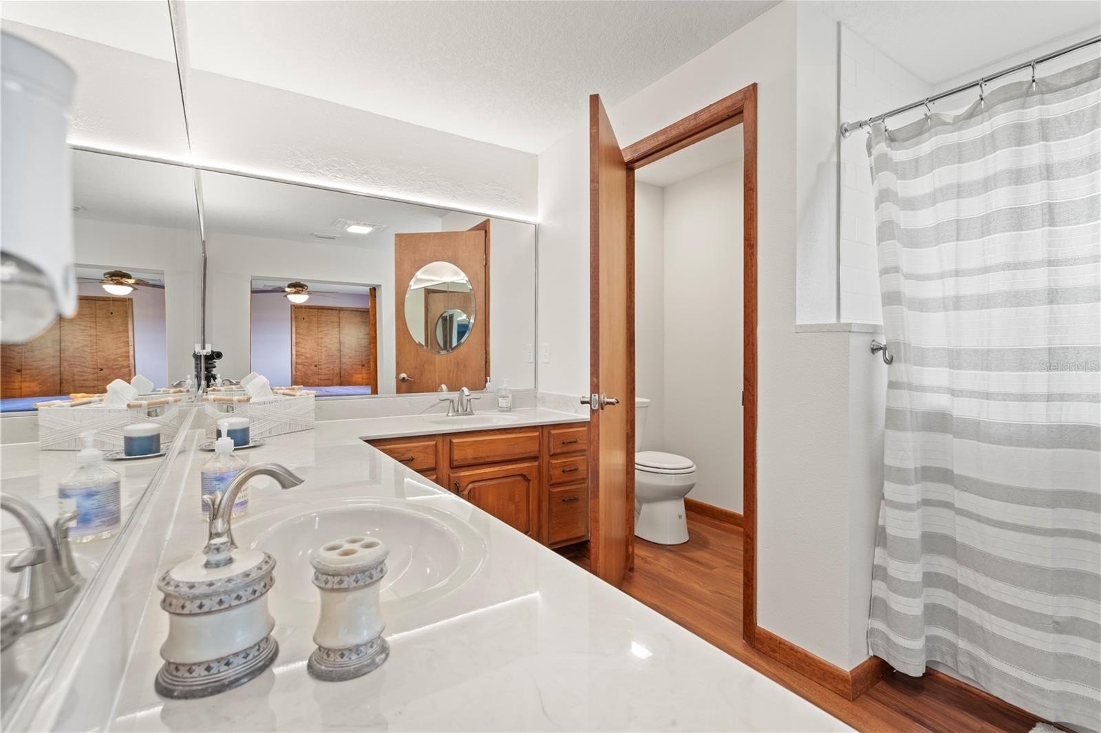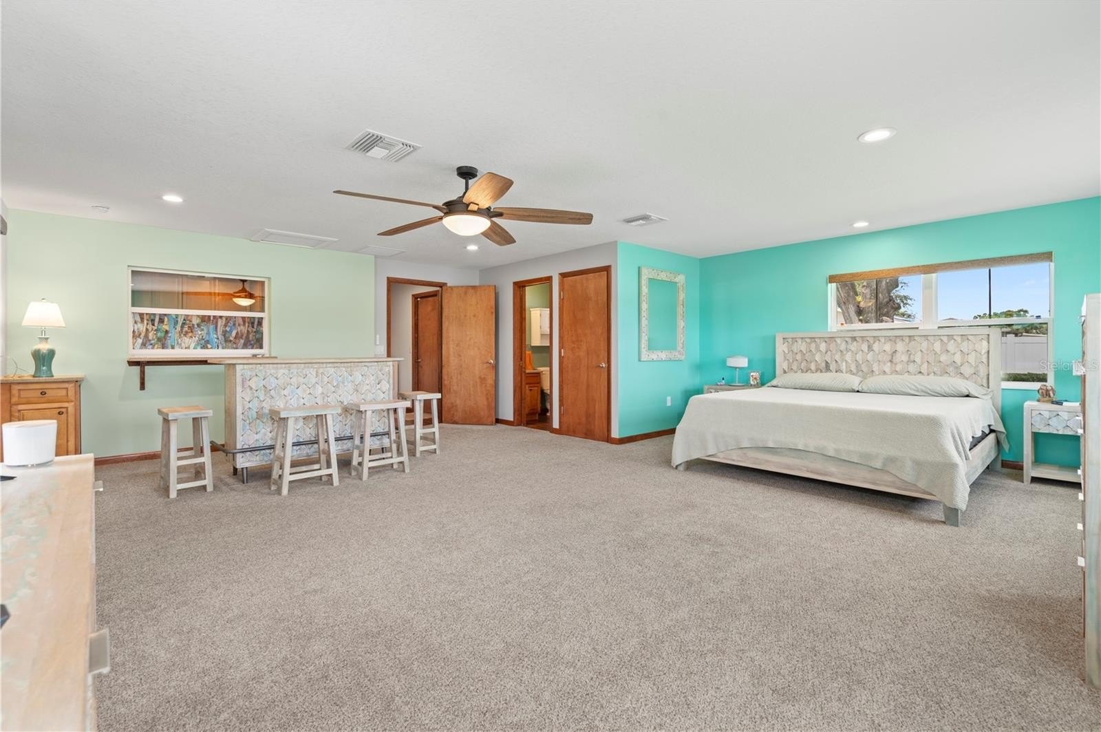 accommodating extended guests; the primary bedrooms are on opposite sides of the