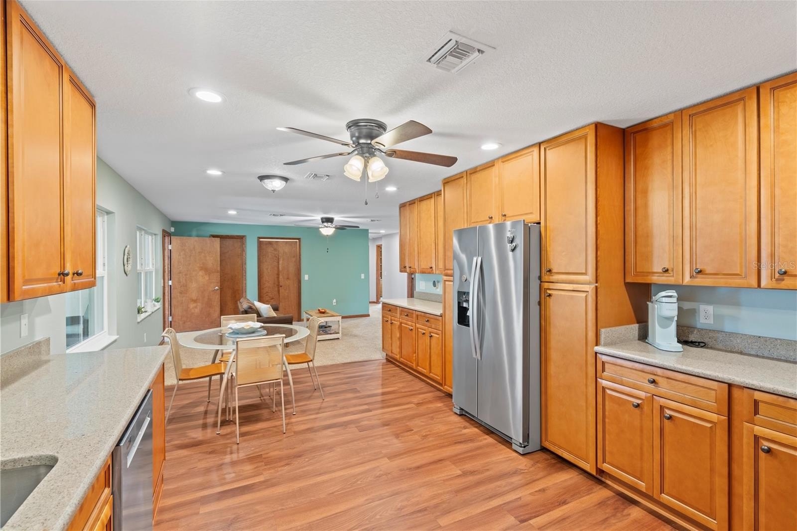 cabinetry, slide out drawers and Quartz countertops. Just off the kitchen is a separate