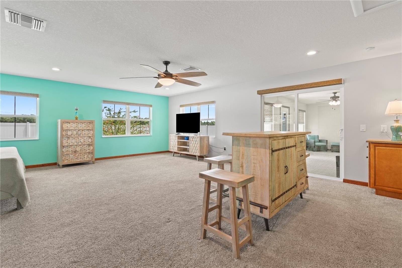 sits adjacent to the in-law suite and connects to the living room also. A large family