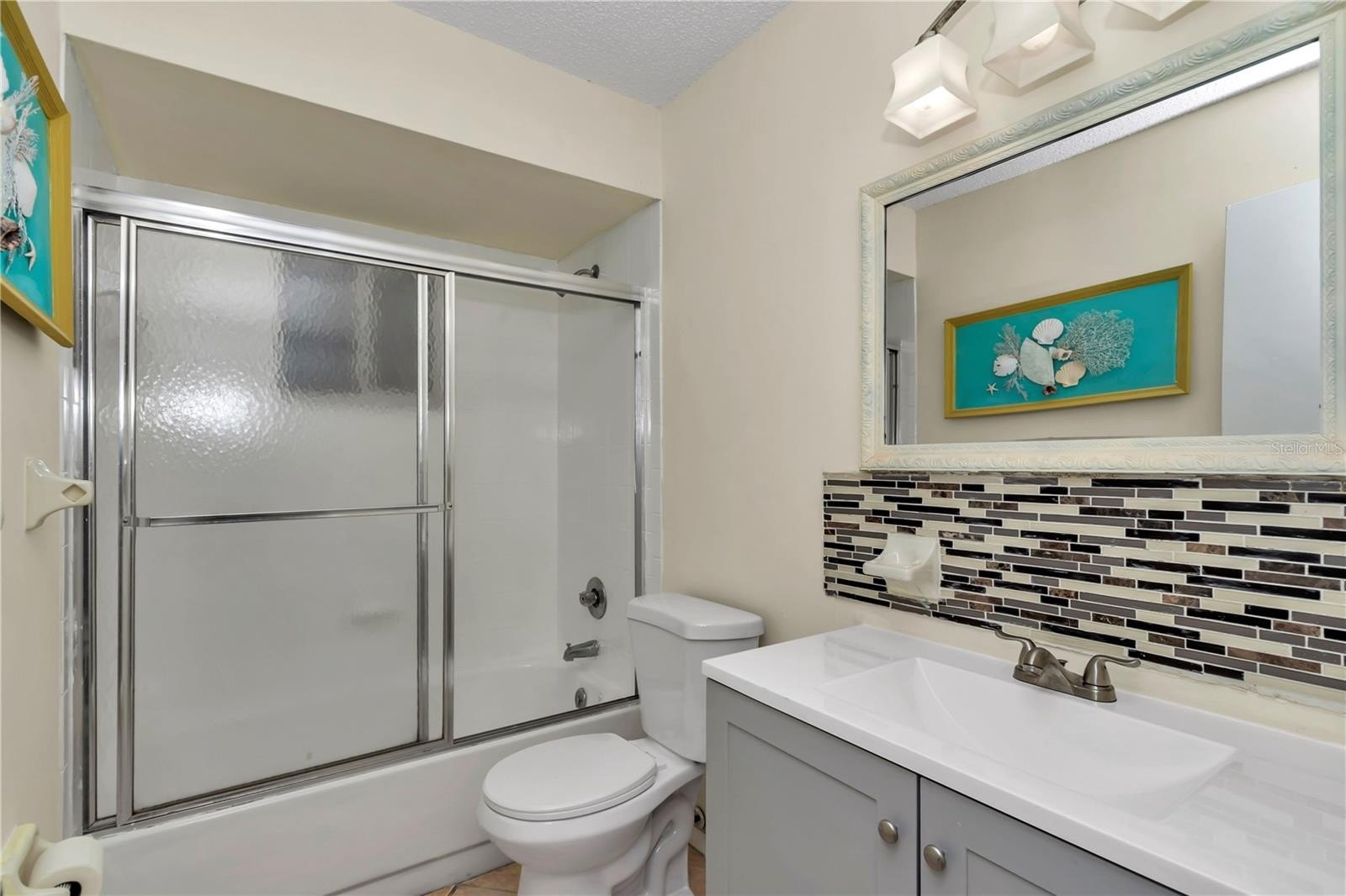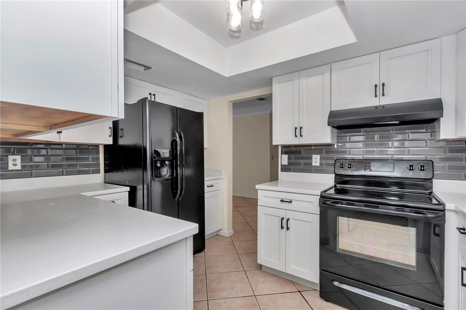 Charming home in gated, 55+ community of Palm Cay with low HOA of 120/ month! Enter into spacious living room, overlooking dining and brand new renovated kitchen with corian countertops, soft close doors and drawers for the cabinets, stainless steel appliances, and custom backsplash. The kitchen leads to oversized laundry room with plenty of room for storage. Back to the kitchen through the kitchen is the dining room leading out to double sliding glass door covered and closed in lanai under air. The 2 bedrooms are to the left of the home both with 2025 bathroom renovations. The guest bathroom features, new vanity, comfort commode, and shower/combo tile surround glass sliding doors. Just passed that is the primary bedroom that has its own bathroom with new vanity, commode, and glass sliding door with new tile flooring in the shower. 2025 30 year architectural shingle roof. Hvac just got a 2025 condenser fan motor on the handler outside. 2010 Hot Water heater. All complete with fenced in backyard with trees for privacy!