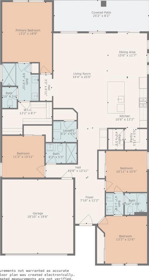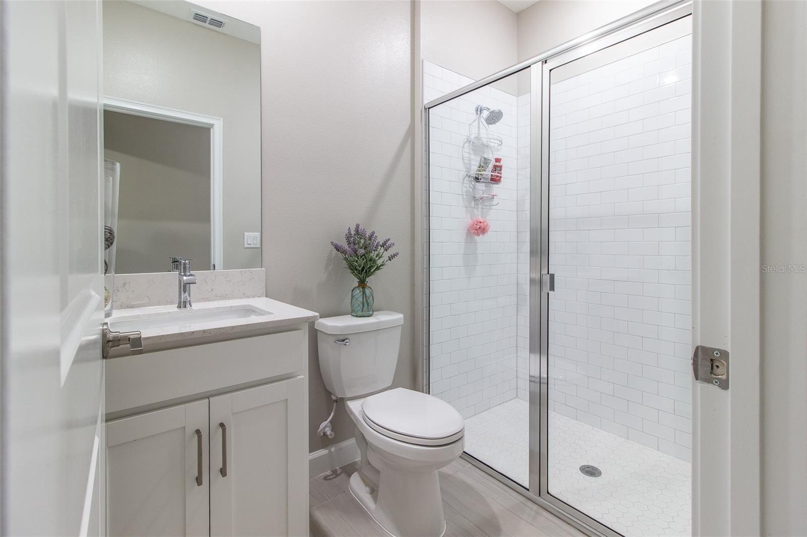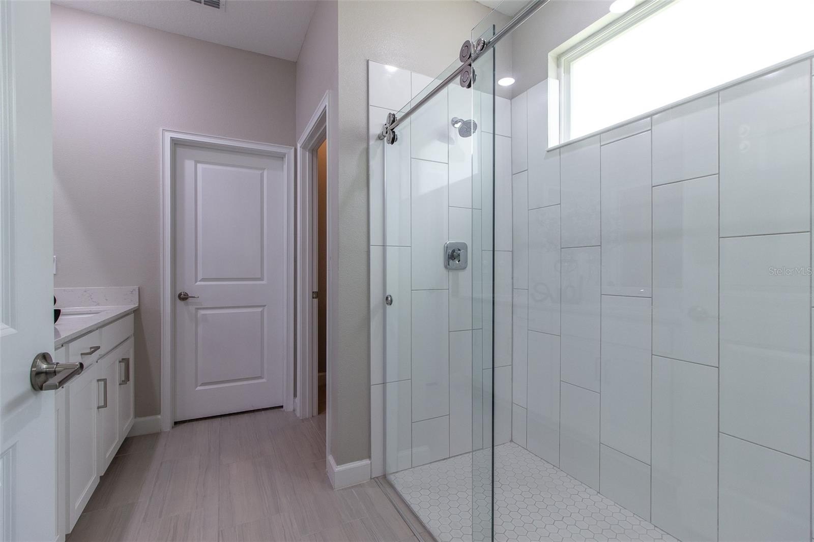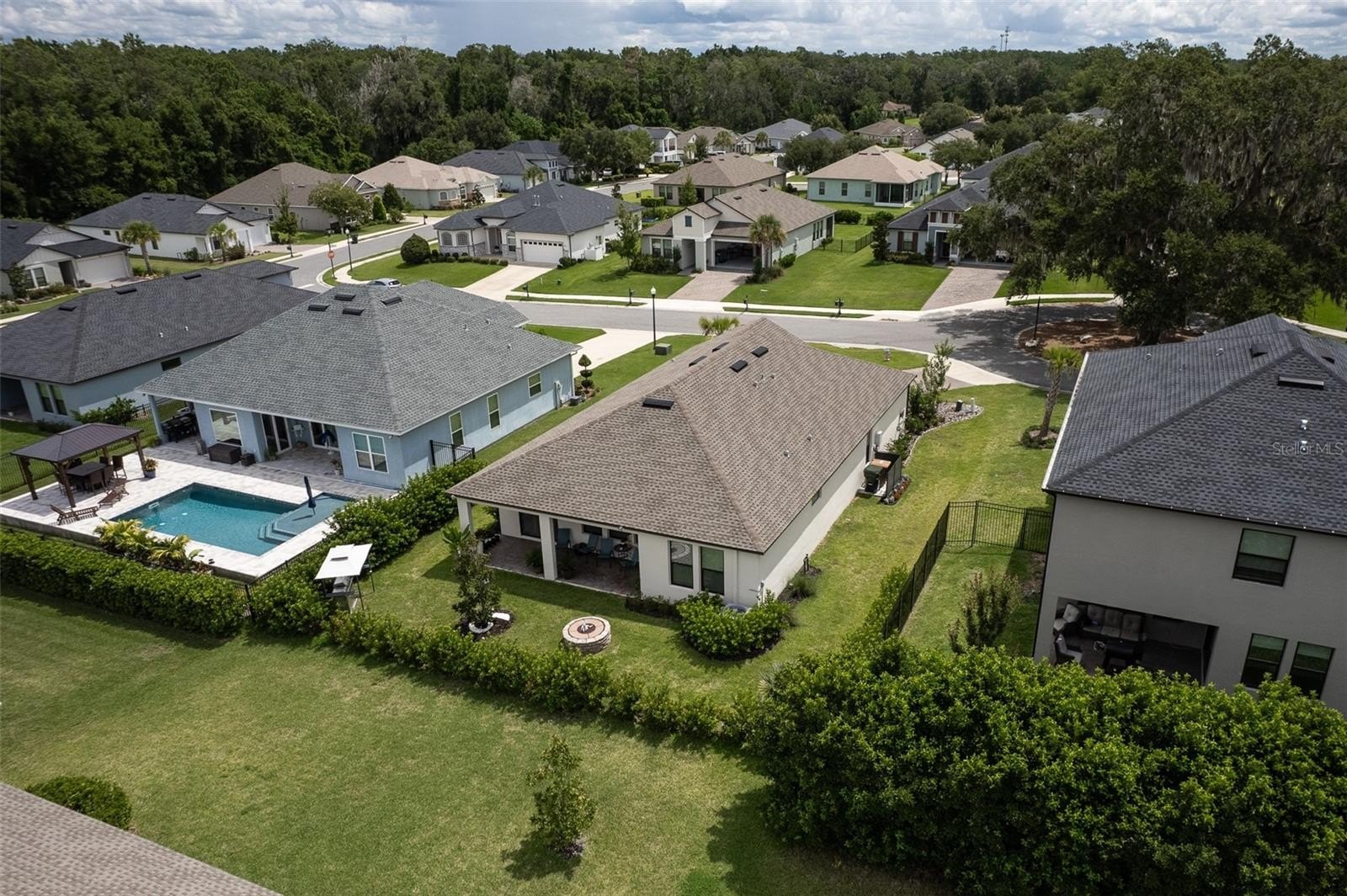 This 4-bedroom, 3-bath home offers a bright and open layout with tall ceilings and a wide foyer with light tile flooring. The private entry features a tall front door that opens to a well-designed floorplan. The living room is open and comfortable with a tray ceiling and upgraded ceiling fans. Outside, a covered paved patio looks out over a beautifully maintained yard with mature trees and landscaping. A fire pit creates a great space for relaxing or entertaining, and a Dyna-Glo stainless gas grill with side griddle and canopy is included. Two bedrooms share a full bath with a double-sink vanity and a separate room for the tub, shower, and toilet. The third bedroom has its own bathroom with a large walk-in shower featuring classic subway tile and a glass door. The primary suite easily fits a king-size bed and additional furniture, and includes a walk-in closet and a private bath with double sinks, a wide walk-in shower with a frosted window, and a private water closet. The kitchen is the centerpiece of the home, with quartz countertops, a large island that seats four, and GE appliances including a 5-burner gas range with stainless hood, wall oven, built-in microwave, and large refrigerator with ice and water dispensers. A deep farmers sink, beverage counter with wine cooler, and hexagon tile backsplash add style and function. The butler’s pantry offers generous cabinetry and counter space, and there’s an enclosed pantry for extra storage.